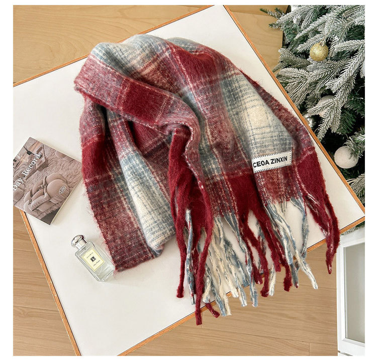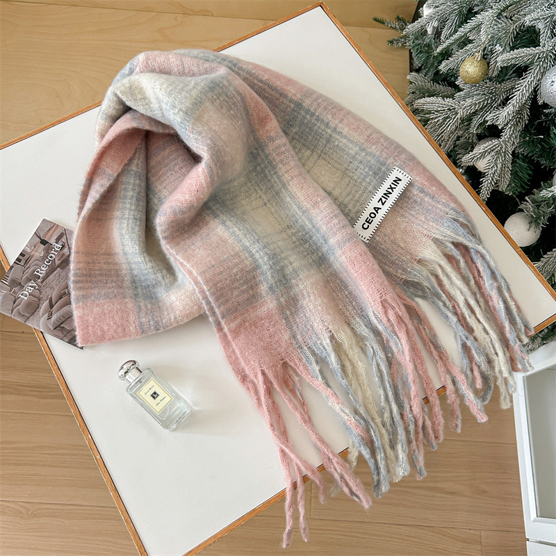 한국식 아카데미 스타일 겨울 분위기 마머리 격자 무늬 스카프 여자 겨울 하이 엔드 소프트 왁스 두꺼운 따뜻한 목