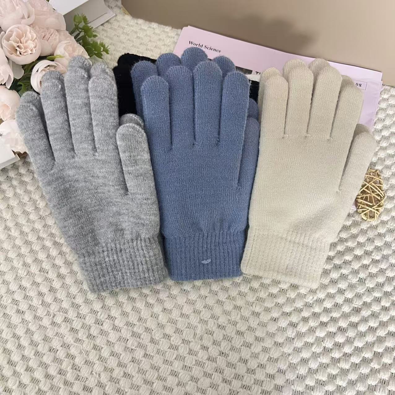 국경 겨울 따뜻한 아크릴 다섯 손가락 장갑 더블 레이어 두꺼운 따뜻한 캐시미어 니트 탄성 야외 사이클링 장갑