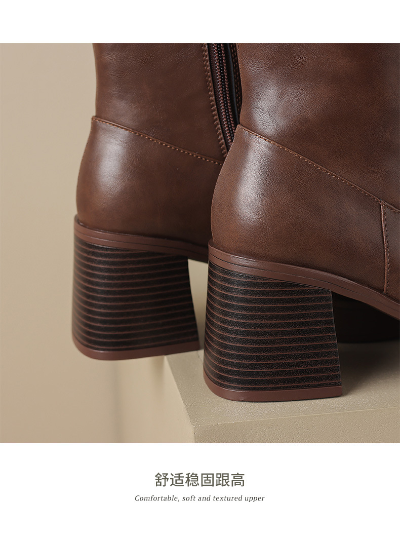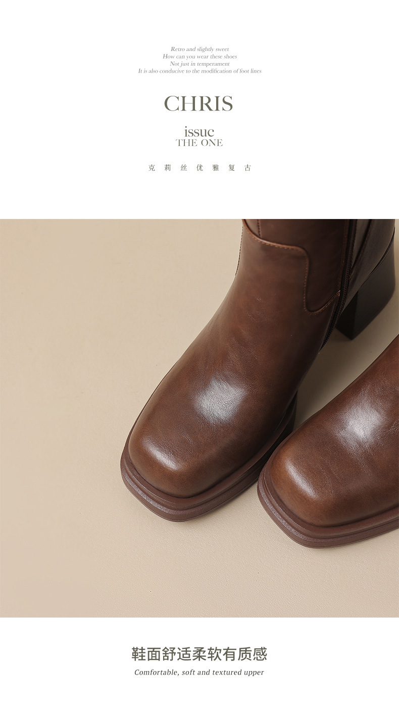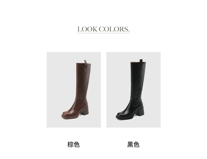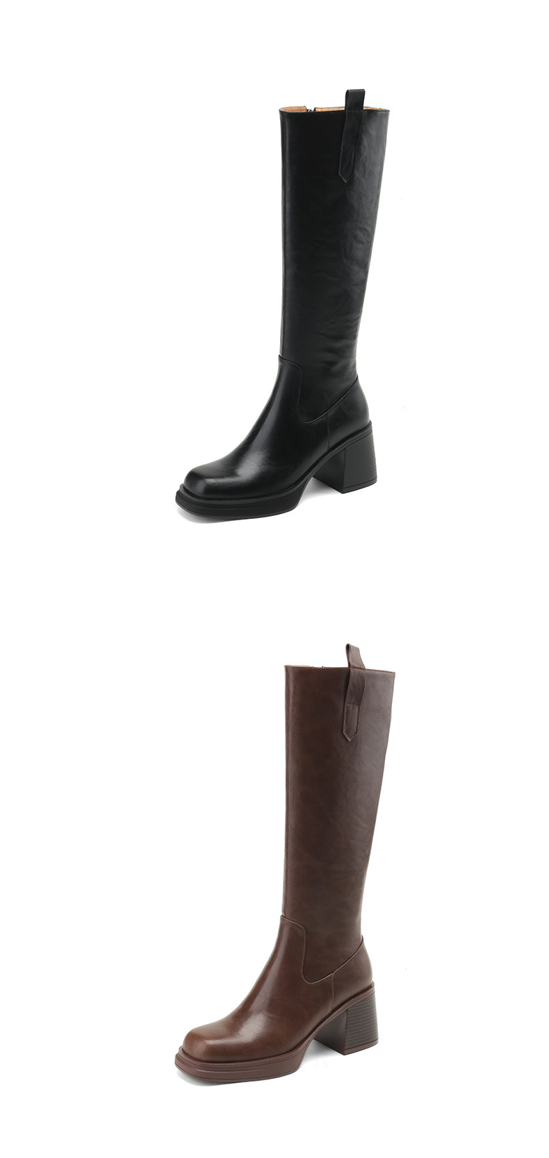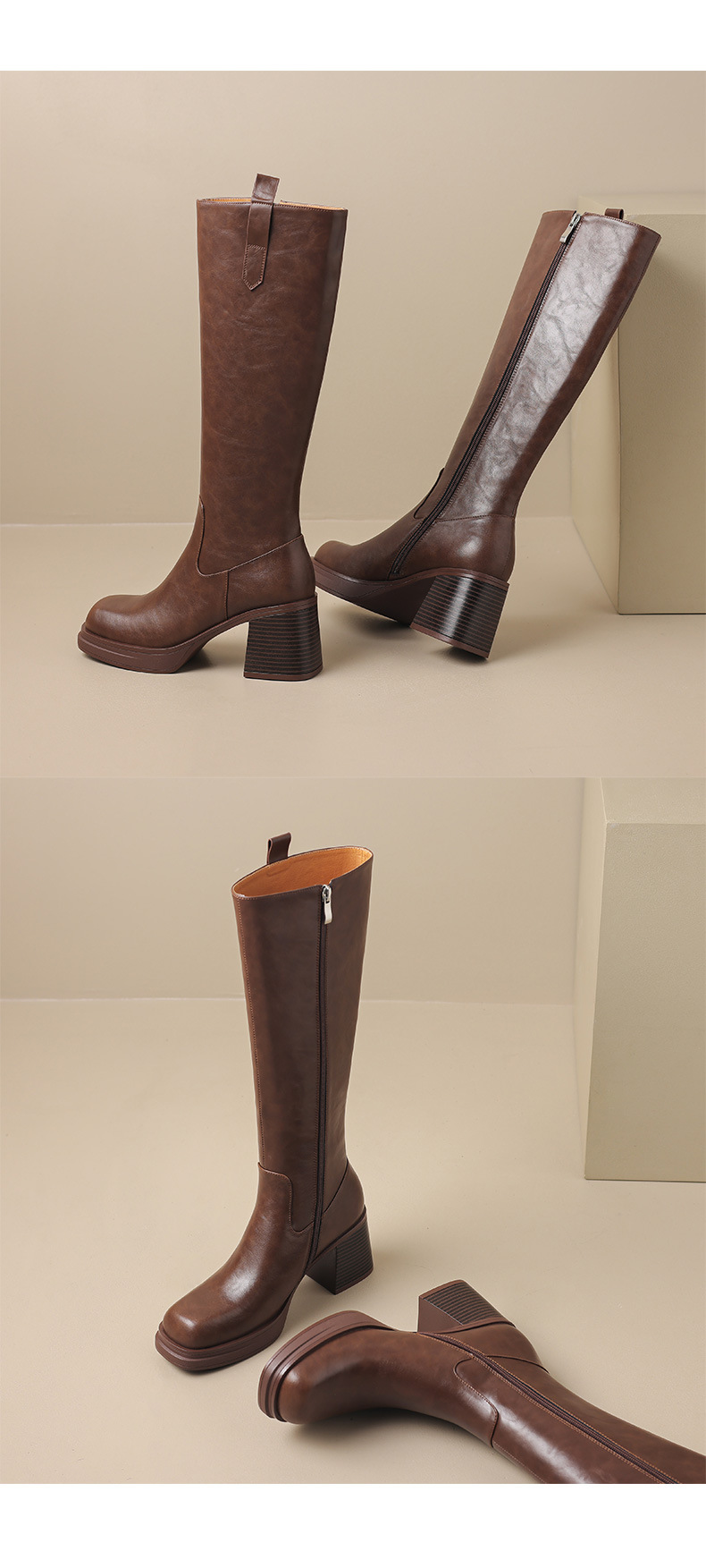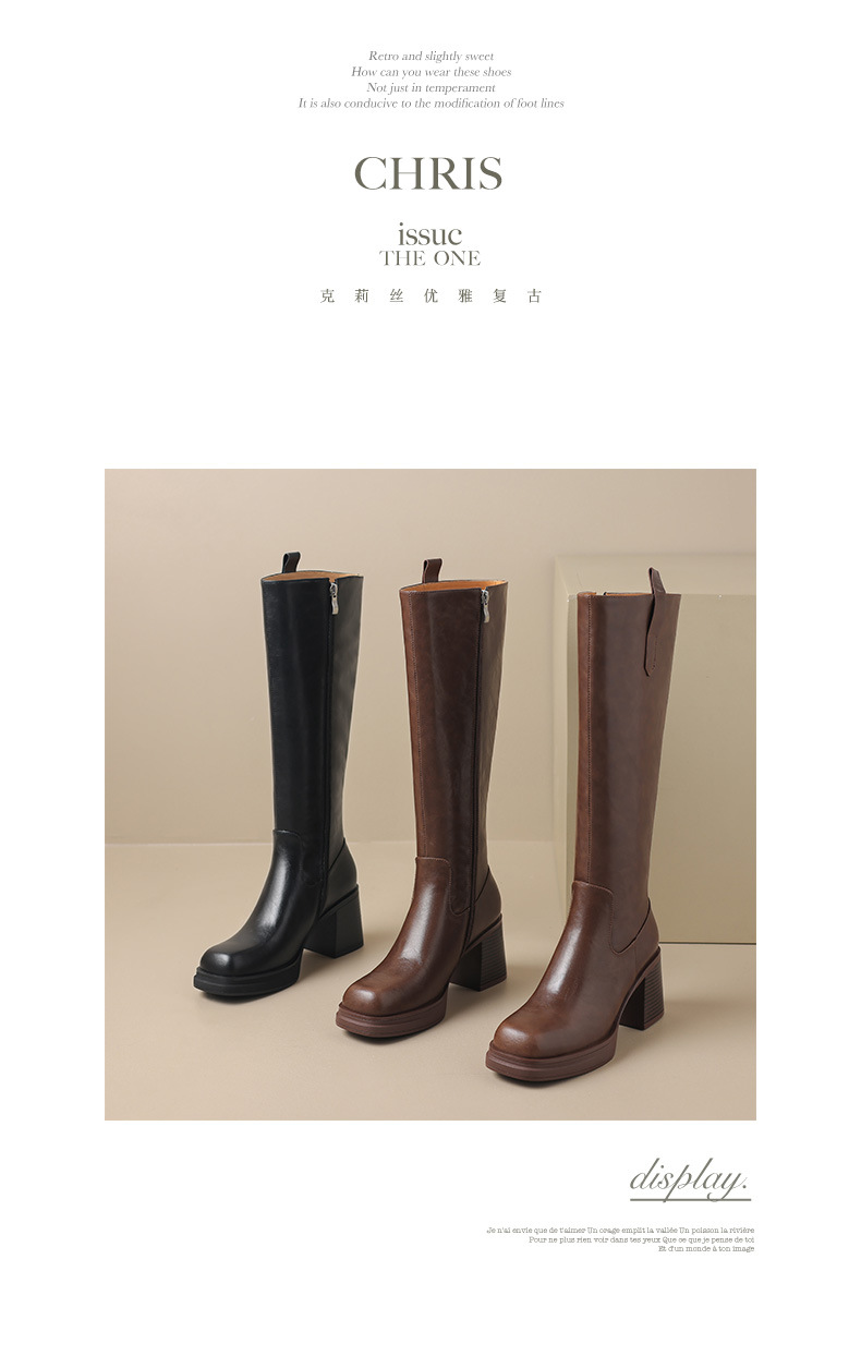 두꺼운 밑창 높은 부츠 여성 가죽 방수 플랫폼 청키 힐 무릎 길이 부츠 2024 새로운 겨울 작은 하이힐 나이트 부츠스토어 가기