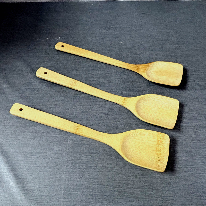 采用高山老竹,利用先进设备加工制作,并经高温蒸汽灭菌、防蛀、紫外线烘烤等工艺流程制做而成,因为经过炭化,所以成色好看,古香古色、朴实耐用,更是时尚厨房实用之选! 富有自然色彩,是绿色环保产品,是宾馆、酒店、家庭,馈赠亲朋好友的首选绿色产品,纯天然、无污染,边缘不尖锐,是无烟锅,不粘锅,煎锅的首选锅铲。
