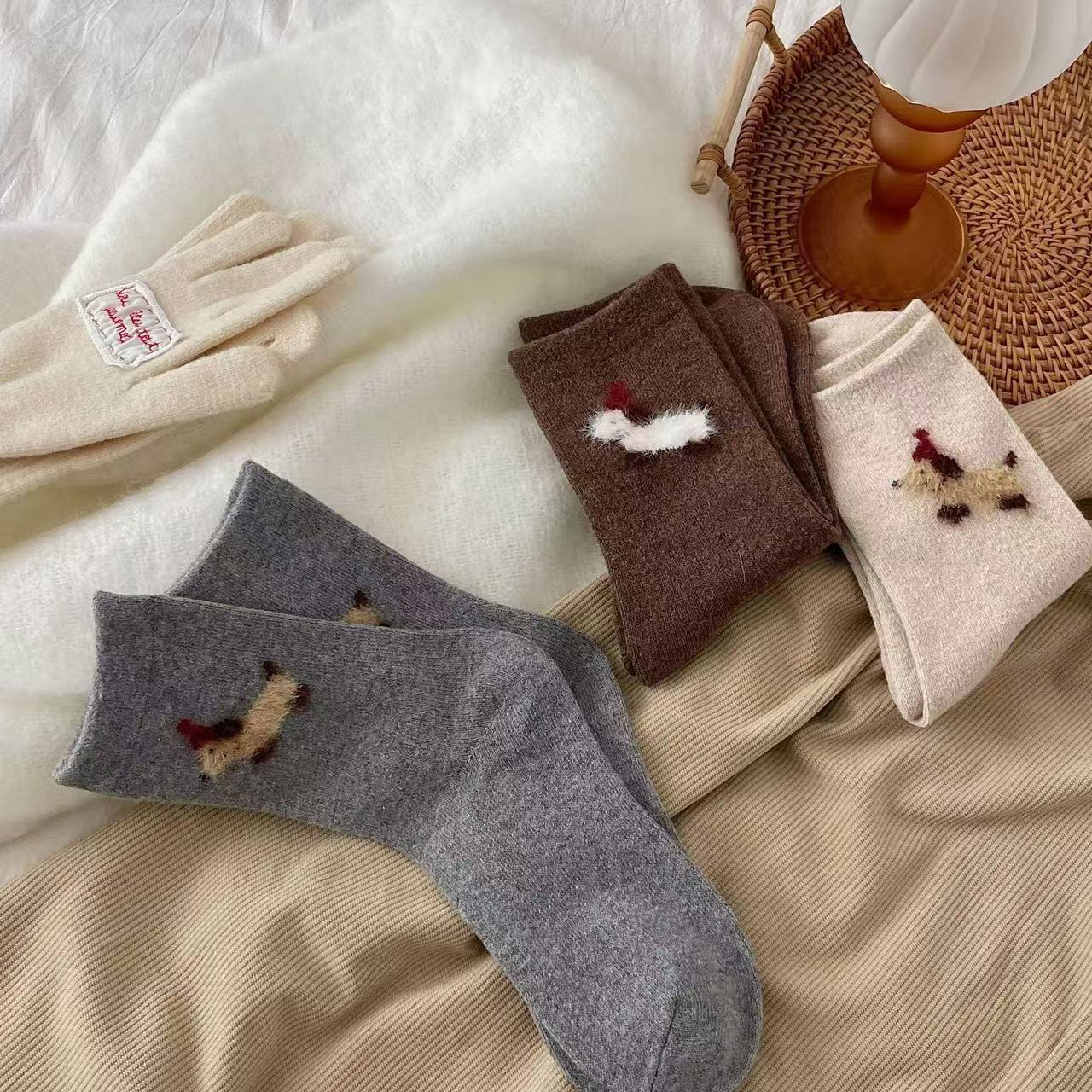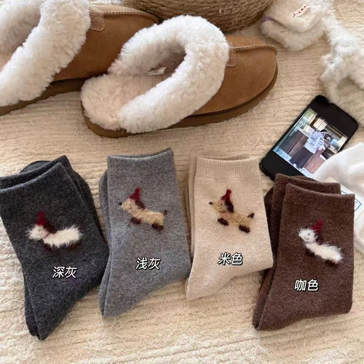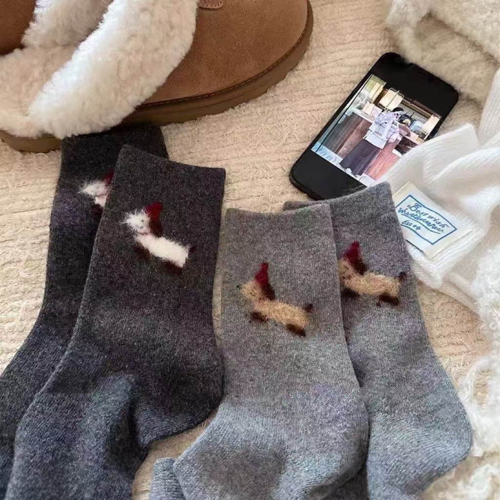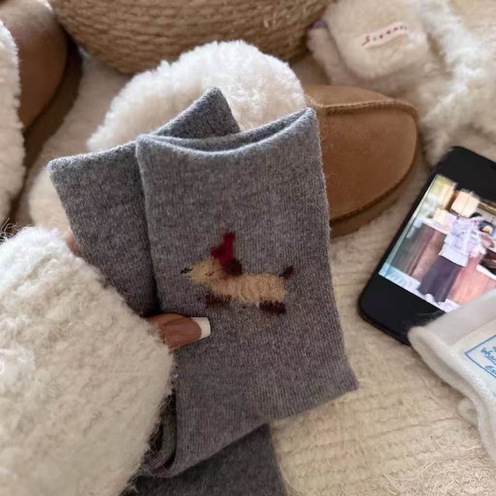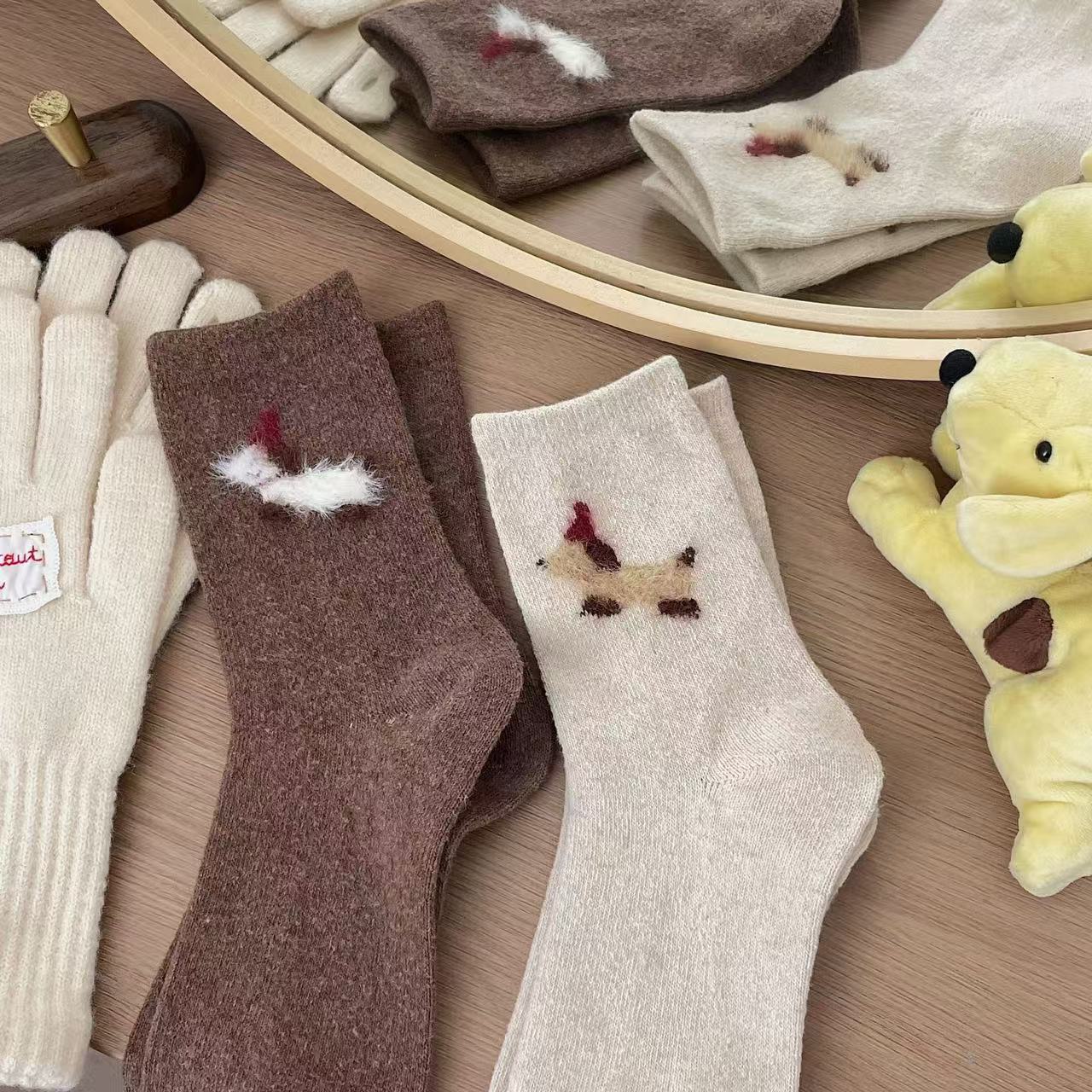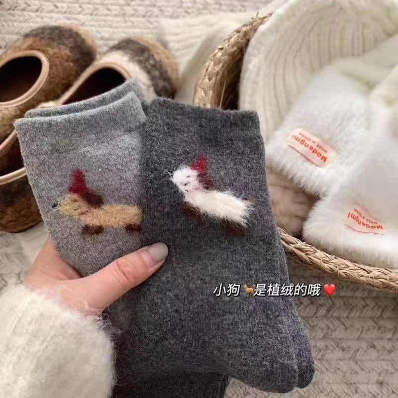 작은 빨간 책 추천 조합! 겨울 양모 양말 한국 가을과 겨울 귀여운 만화 강아지 양말 따뜻한 두껍게스토어 가기