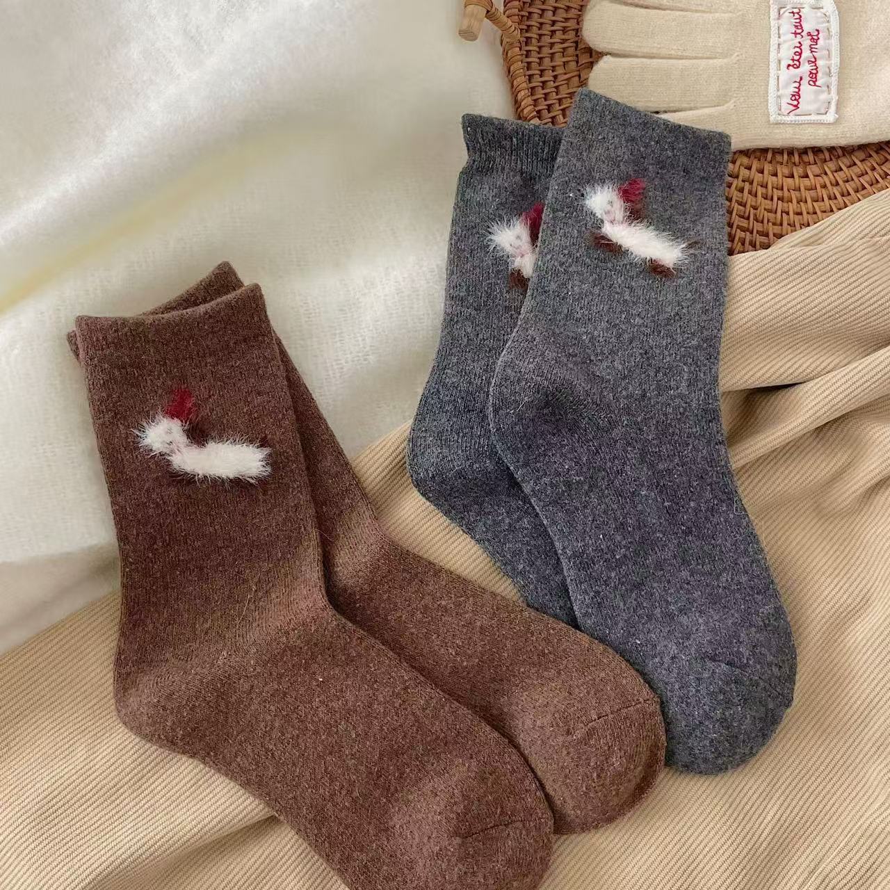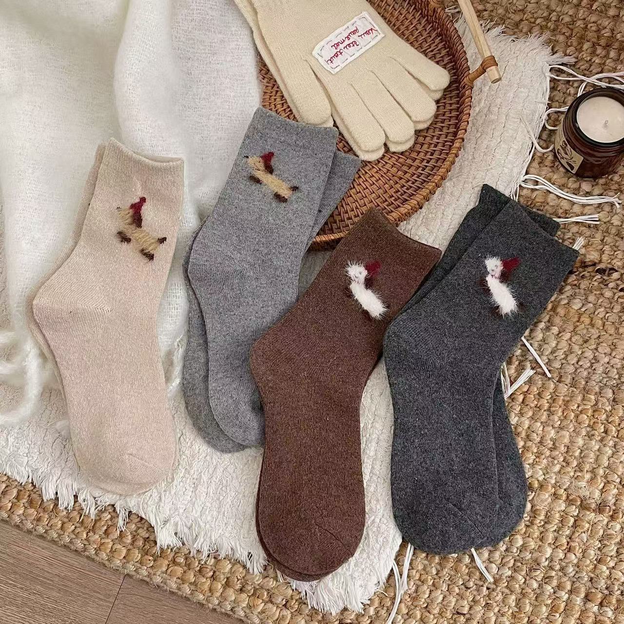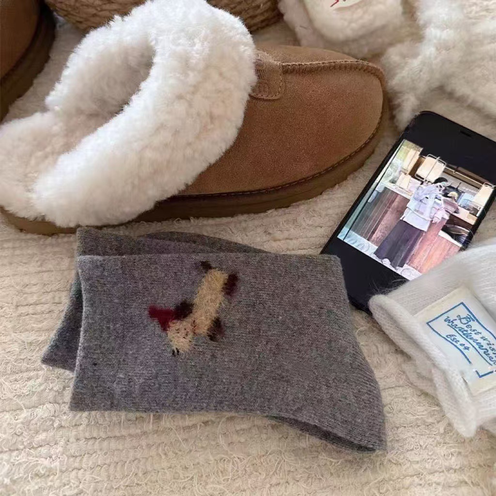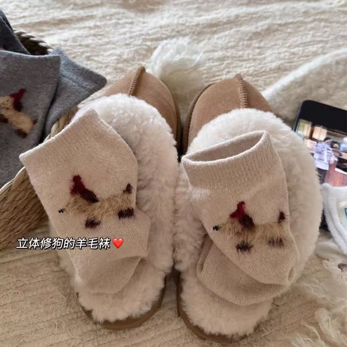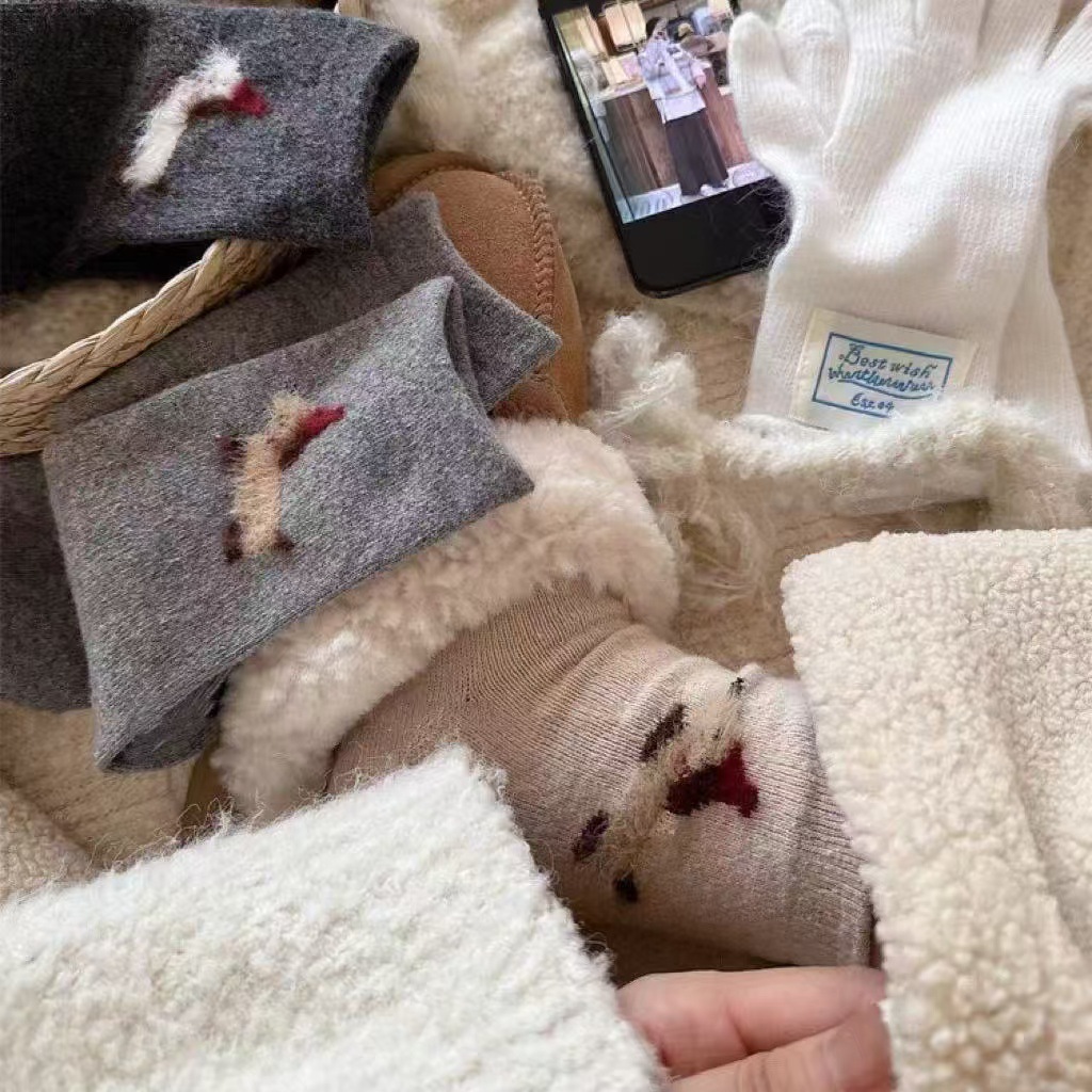 작은 빨간 책 추천 조합! 겨울 양모 양말 한국 가을과 겨울 귀여운 만화 강아지 양말 따뜻한 두껍게스토어 가기