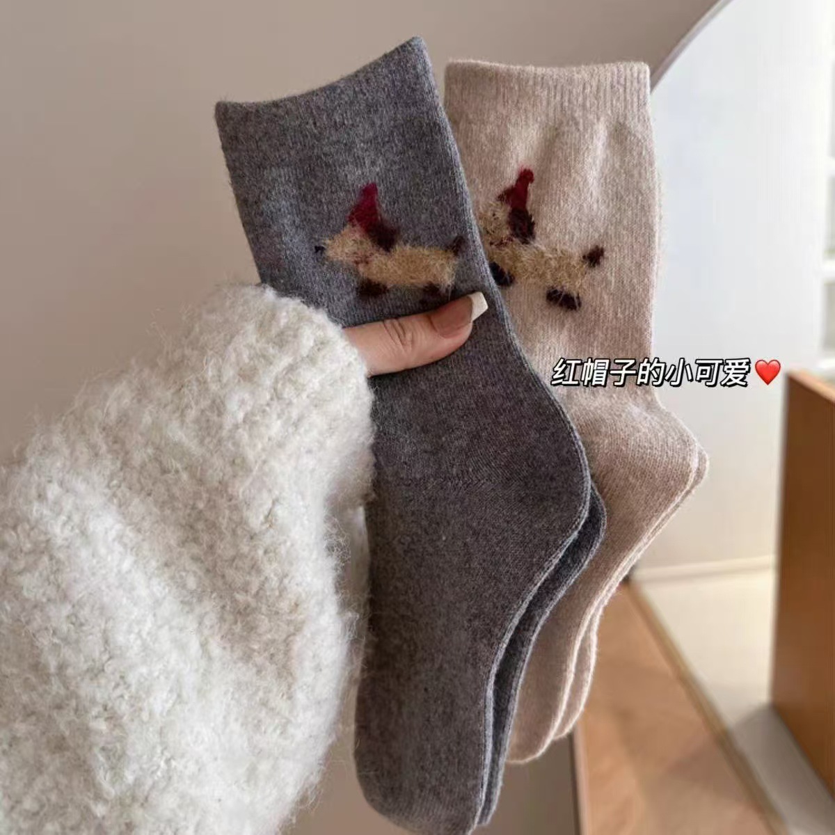 작은 빨간 책 추천 조합! 겨울 양모 양말 한국 가을과 겨울 귀여운 만화 강아지 양말 따뜻한 두껍게