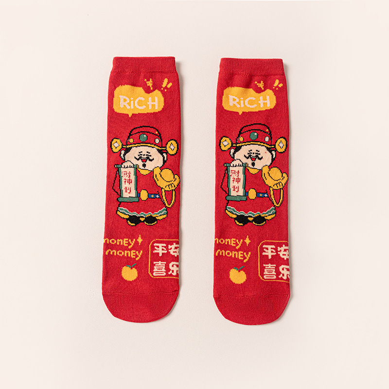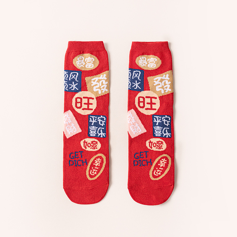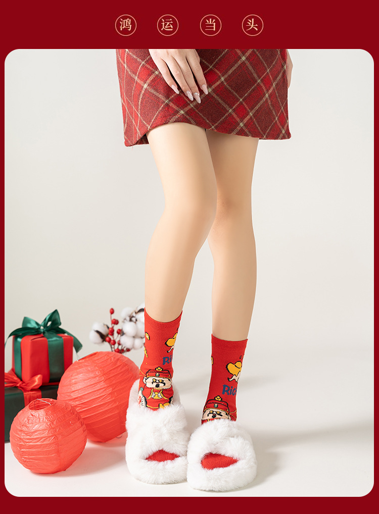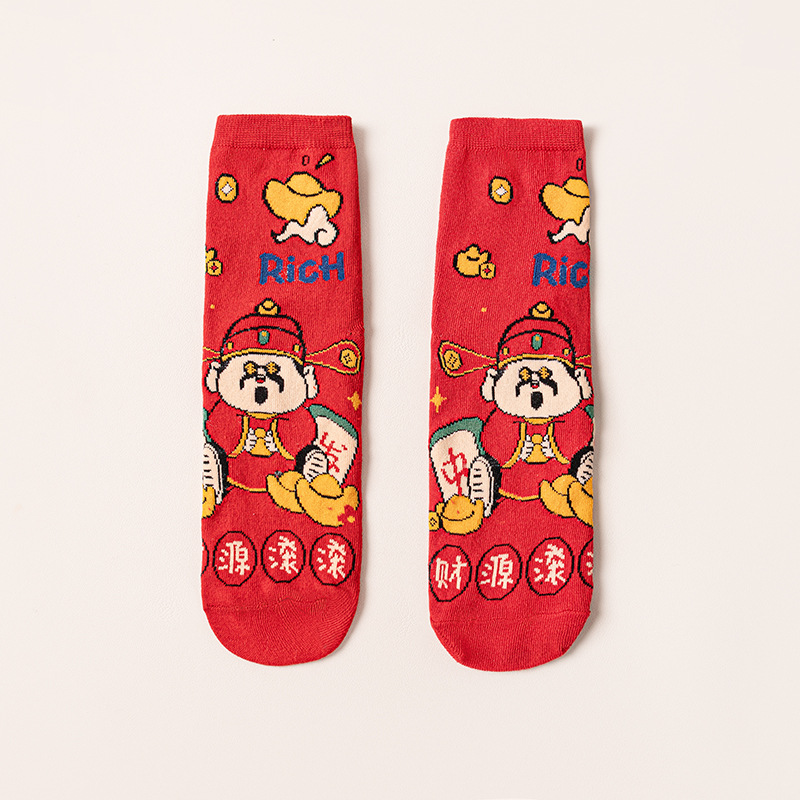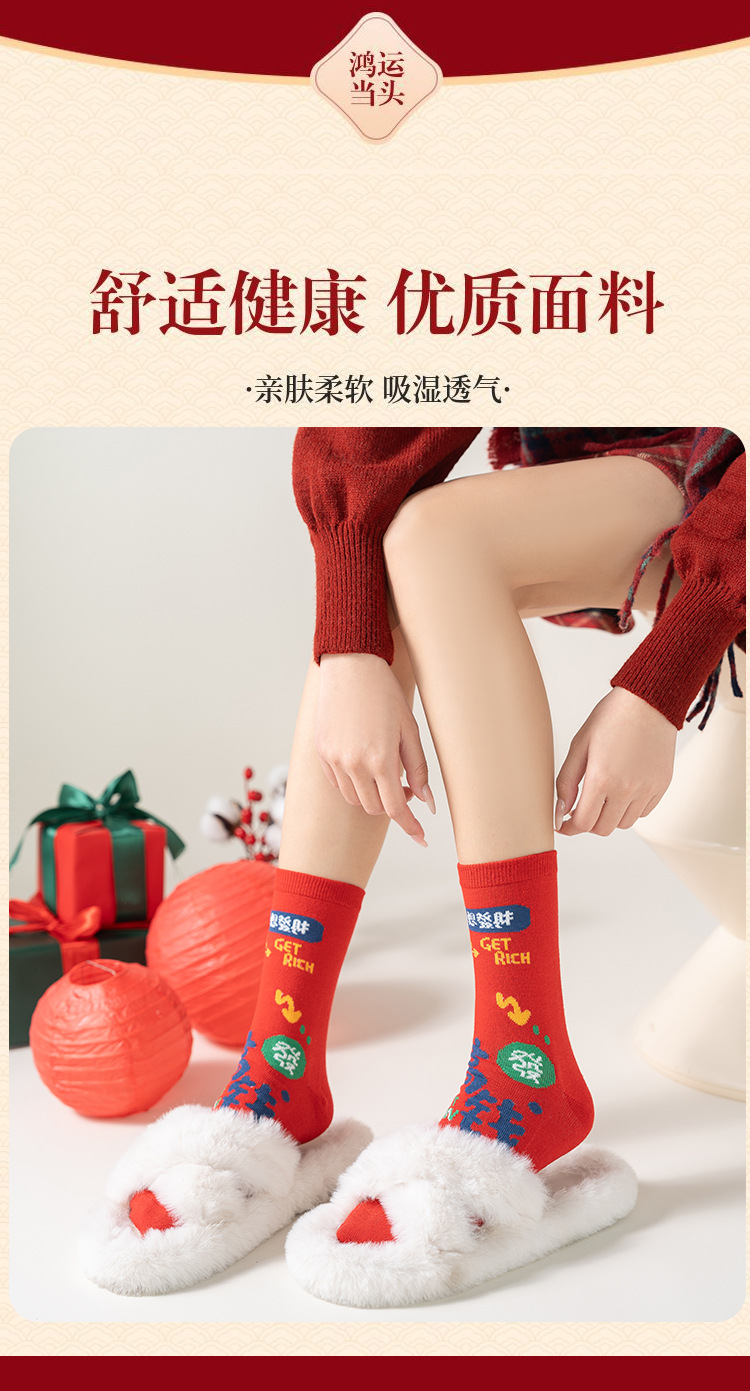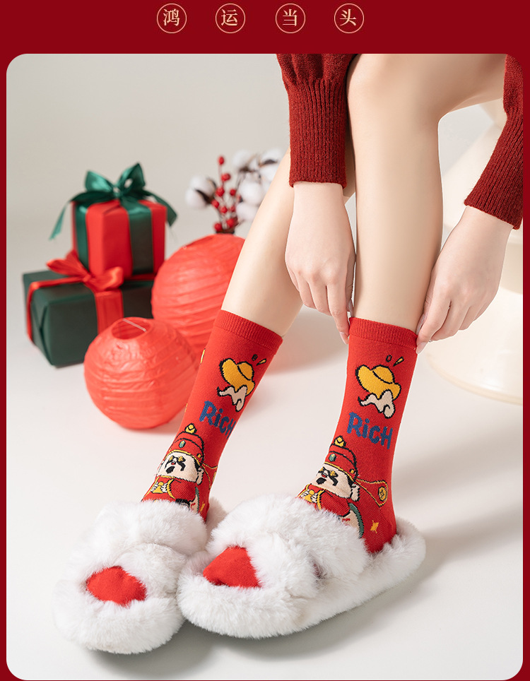 원래 디자인 새해 양말 올해의 뱀 년 새해 빨간 양말 남성과 여성을위한 높은 색상 가치 만화 부 양말