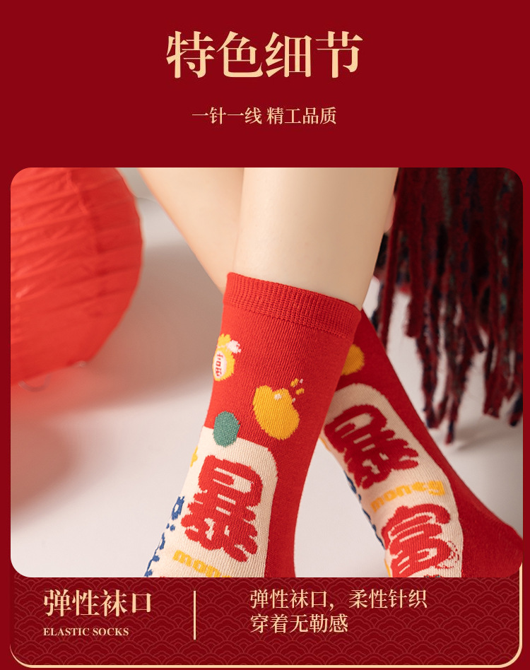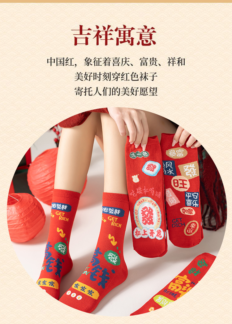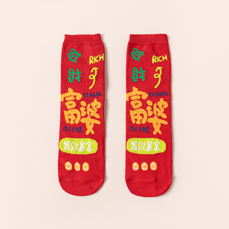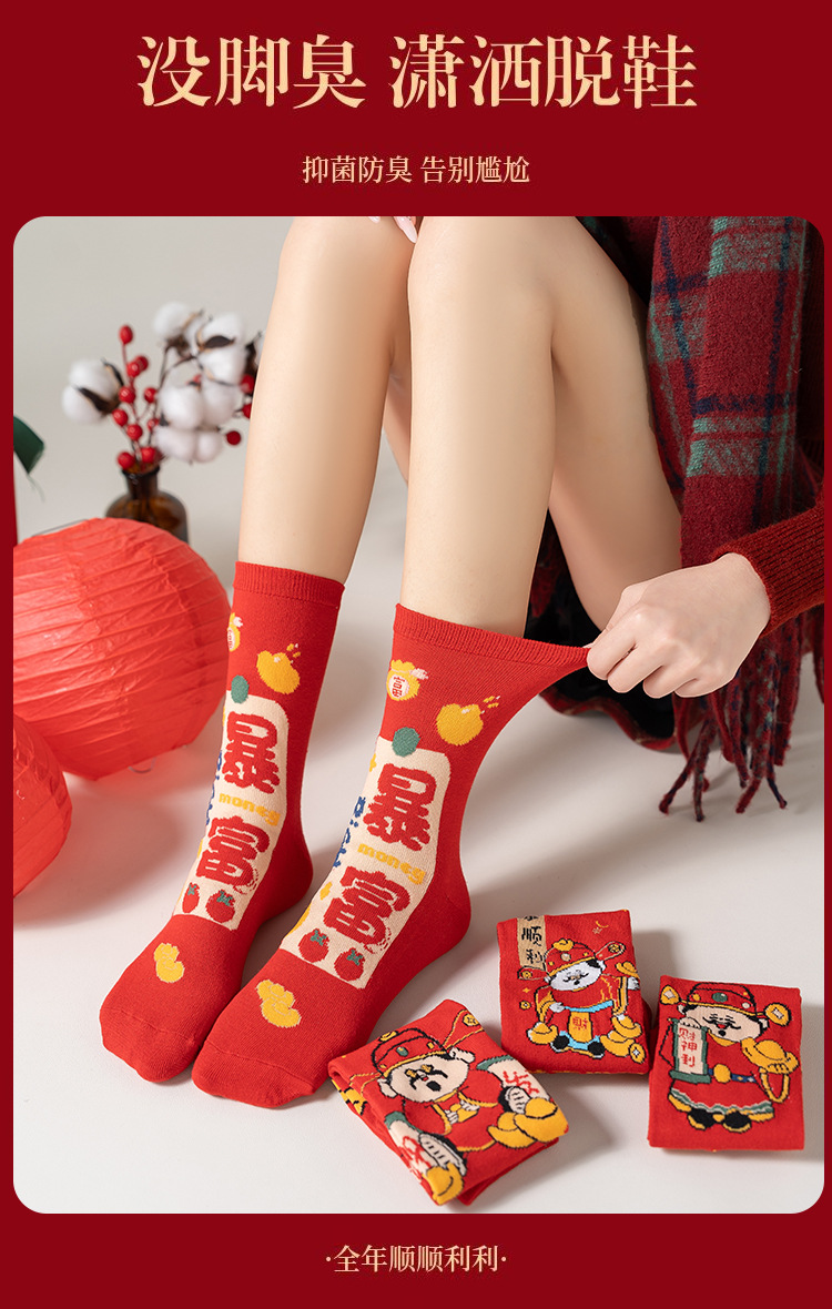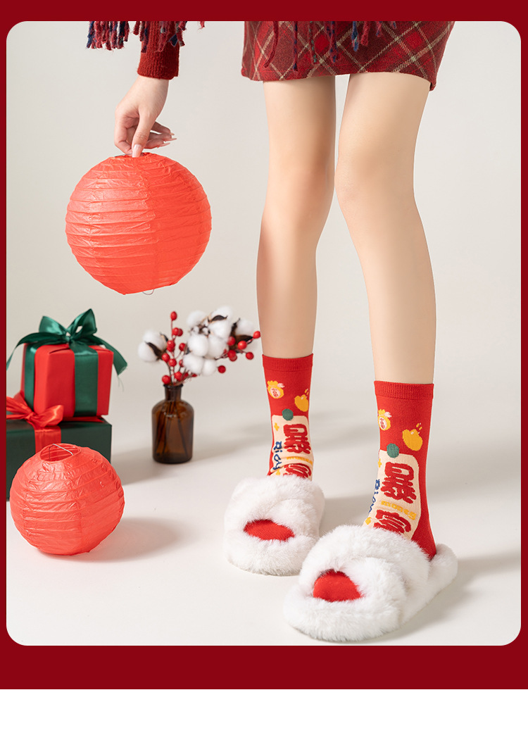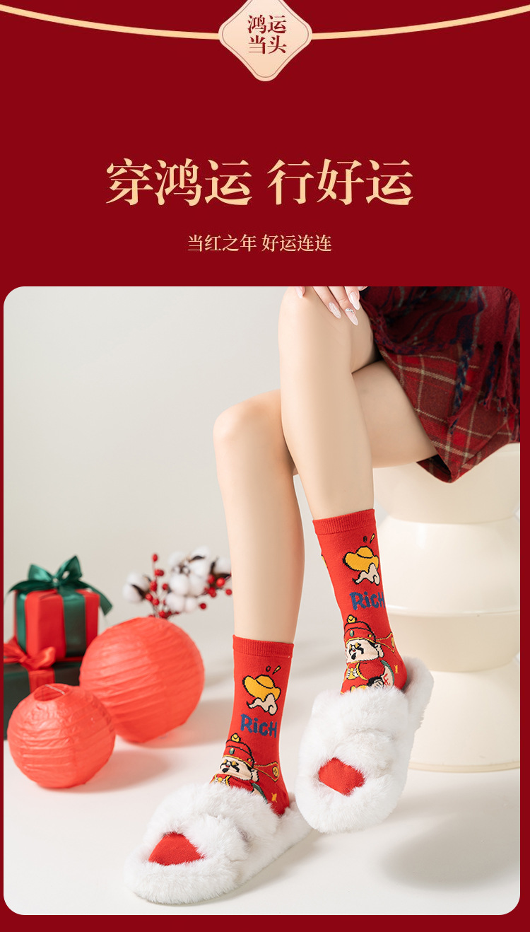 원래 디자인 새해 양말 올해의 뱀 년 새해 빨간 양말 남성과 여성을위한 높은 색상 가치 만화 부 양말