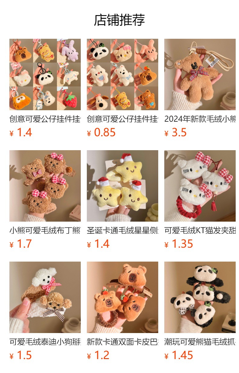 귀여운 만화 곰 봉제 인형 클립 여자의 머리 머리 머리 클립 머리 머리 장식 부티크 도매스토어 가기