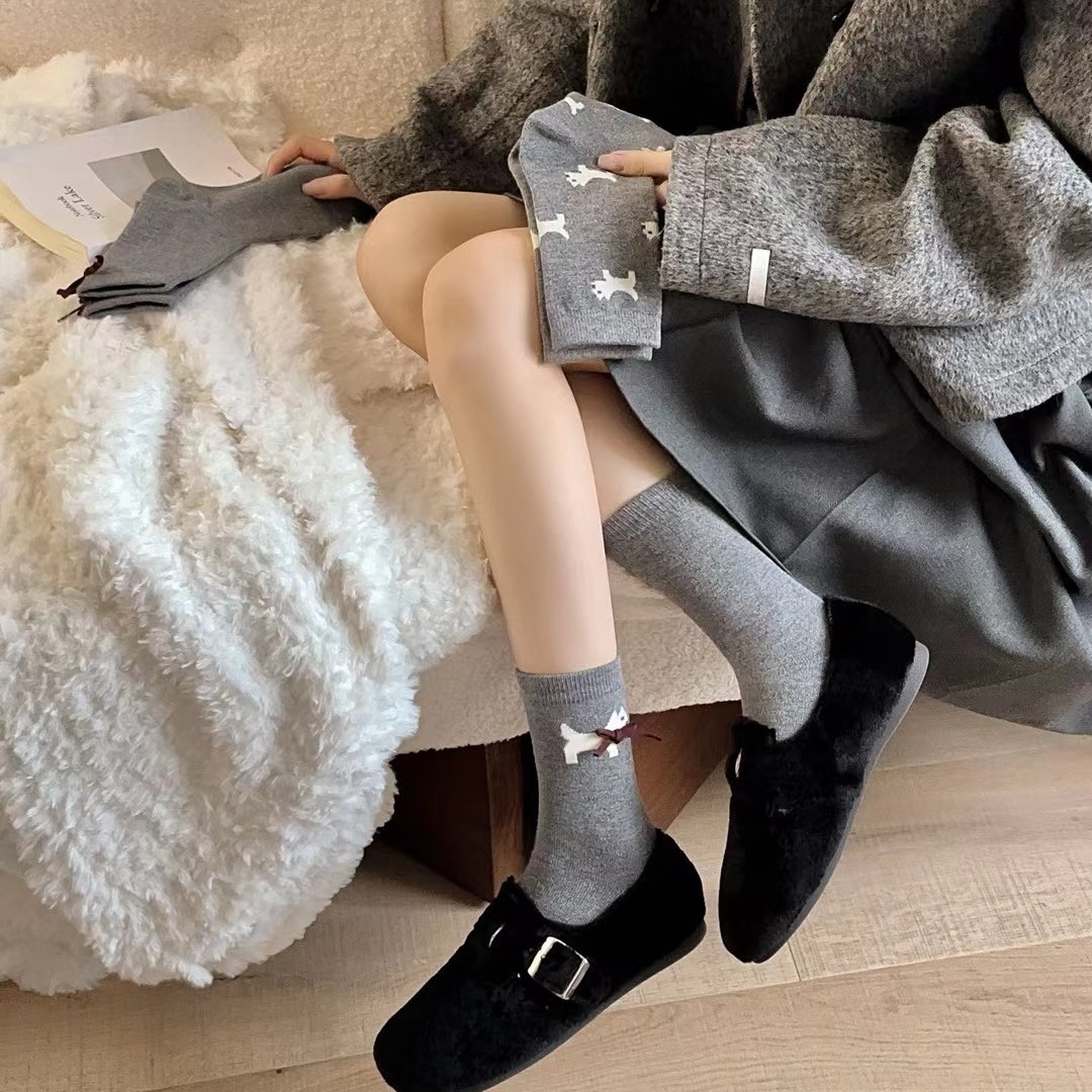 유럽 상품 보석 회색 가을과 겨울 두껍게 작은 활 튜브 양말 강아지 양말 열 저장 따뜻한 양모 양말스토어 가기