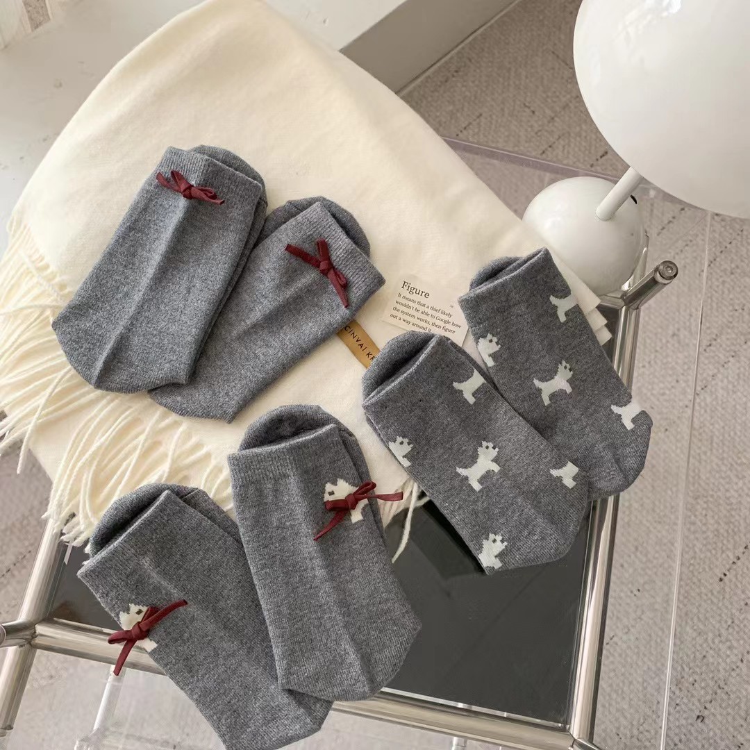 유럽 상품 보석 회색 가을과 겨울 두껍게 작은 활 튜브 양말 강아지 양말 열 저장 따뜻한 양모 양말