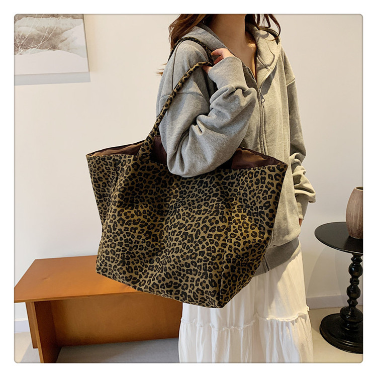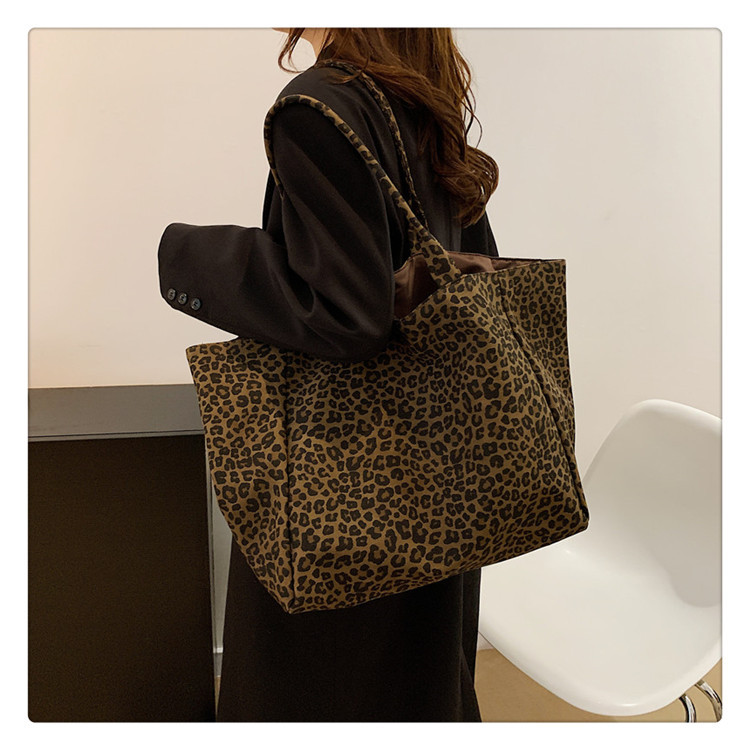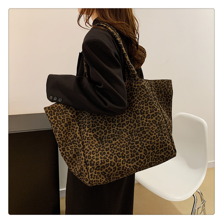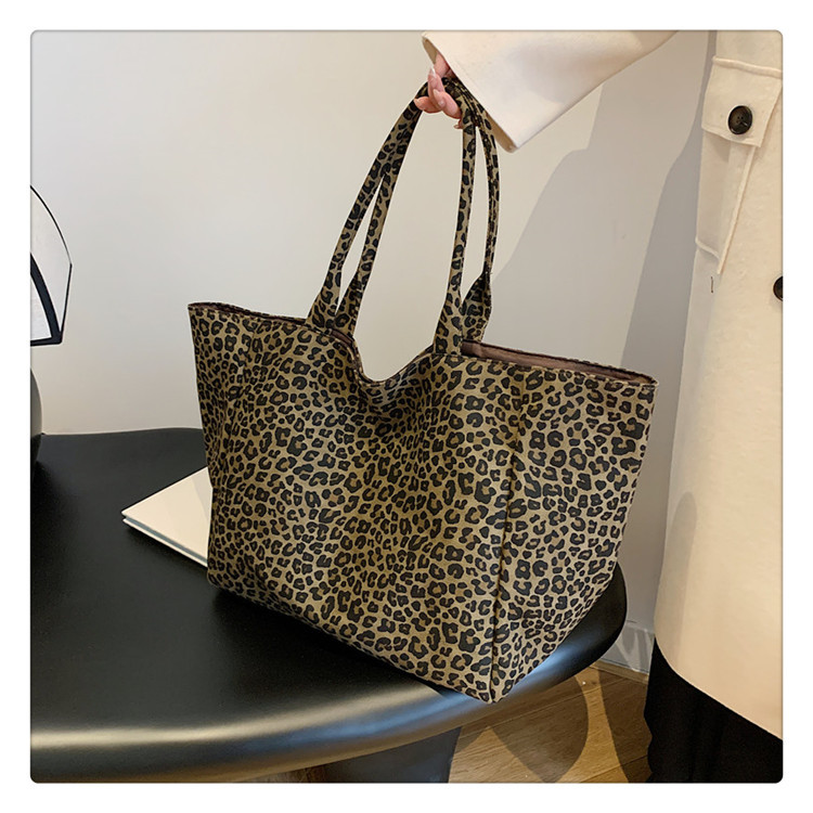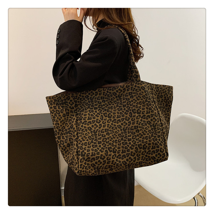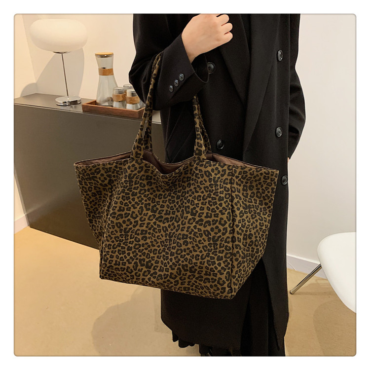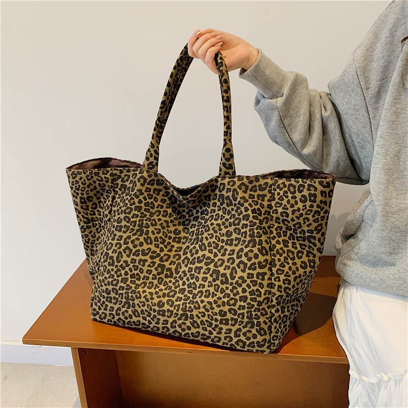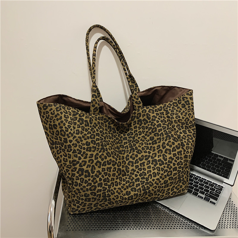 국경 간 신형 레트로 웨스턴 레오파드 토트 백 여성 일본과 한국 핸드 헬드 캔버스 빅 백 우아한 통근 어깨 가방