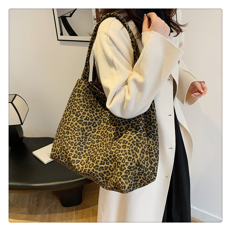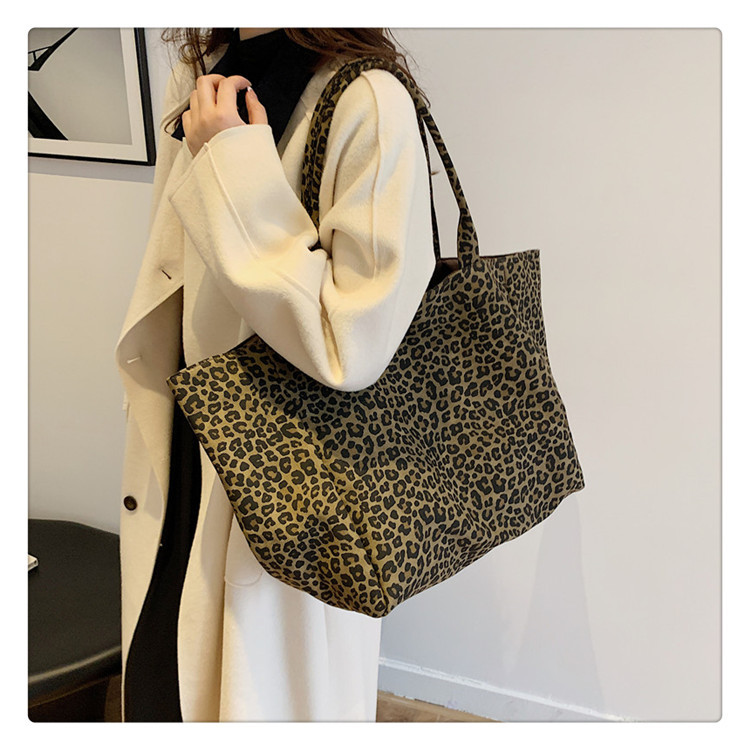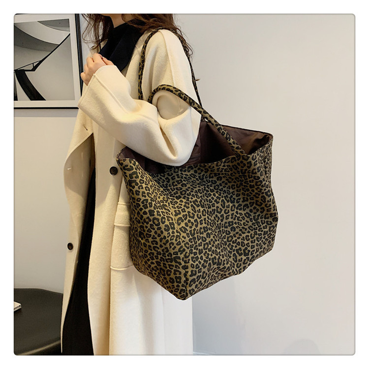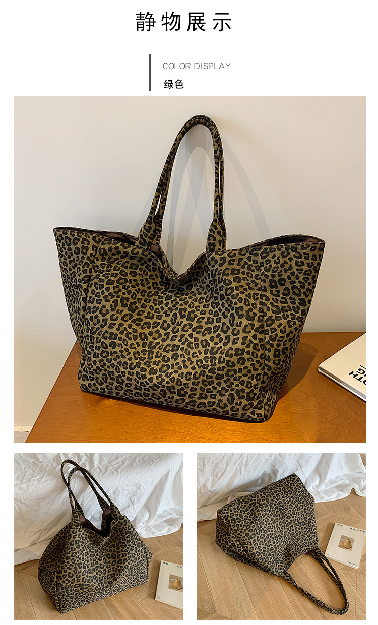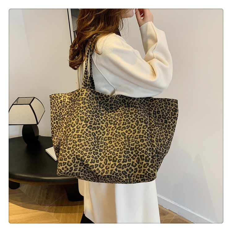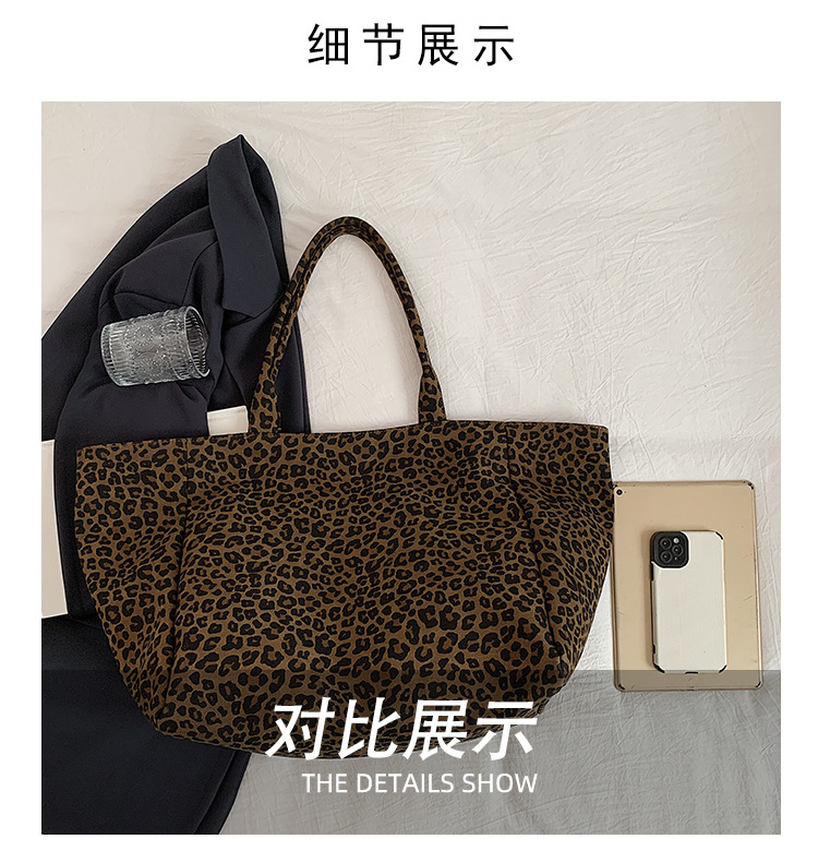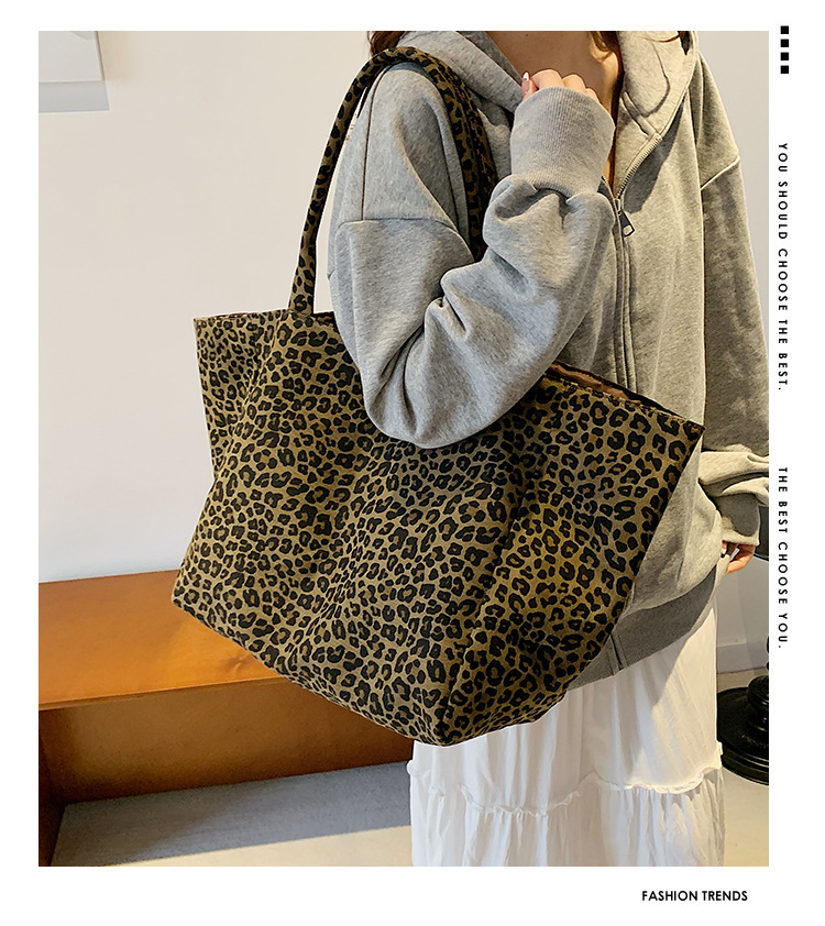 국경 간 신형 레트로 웨스턴 레오파드 토트 백 여성 일본과 한국 핸드 헬드 캔버스 빅 백 우아한 통근 어깨 가방