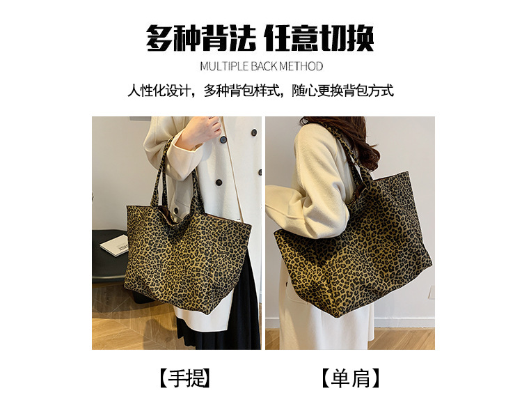 국경 간 신형 레트로 웨스턴 레오파드 토트 백 여성 일본과 한국 핸드 헬드 캔버스 빅 백 우아한 통근 어깨 가방스토어 가기