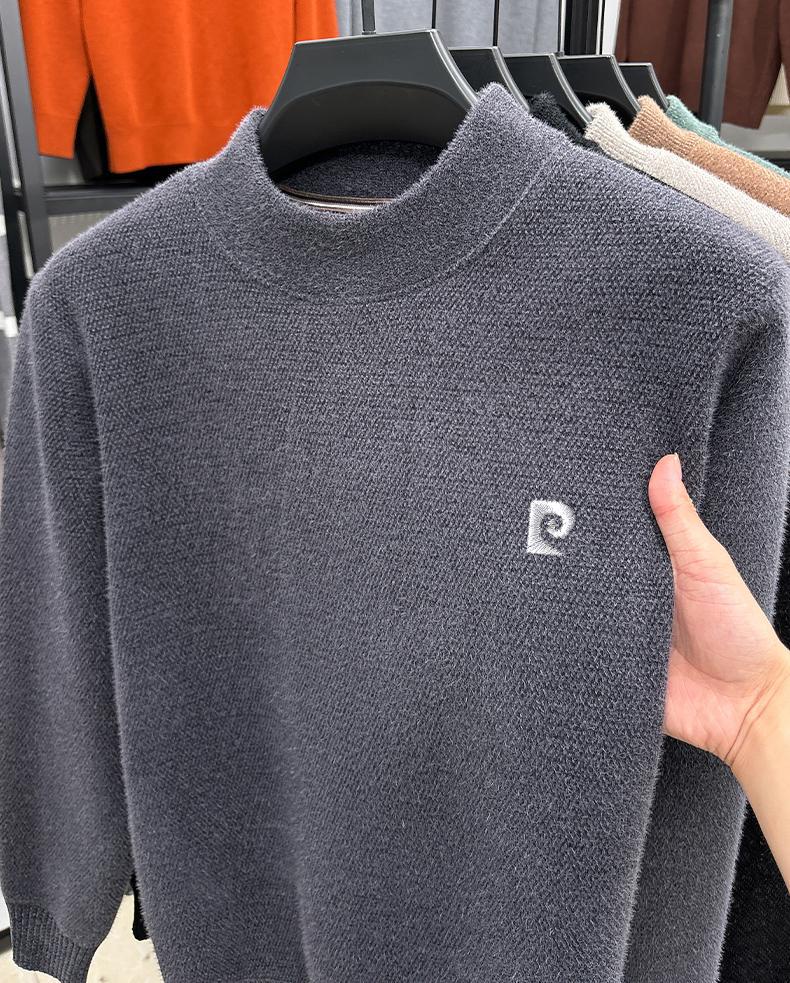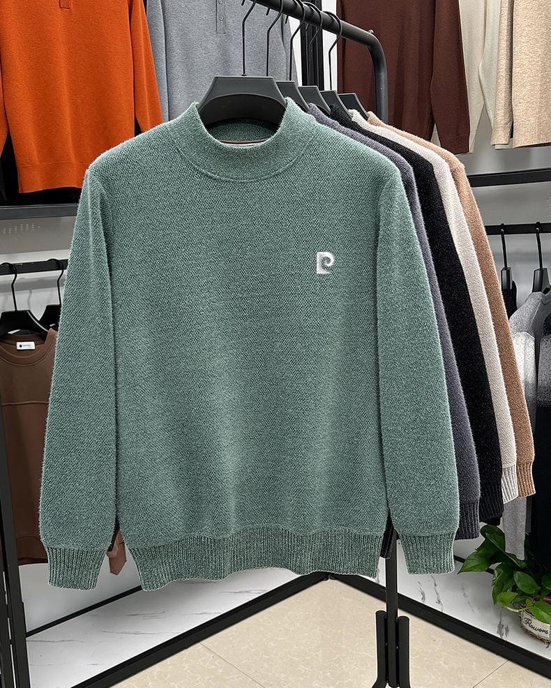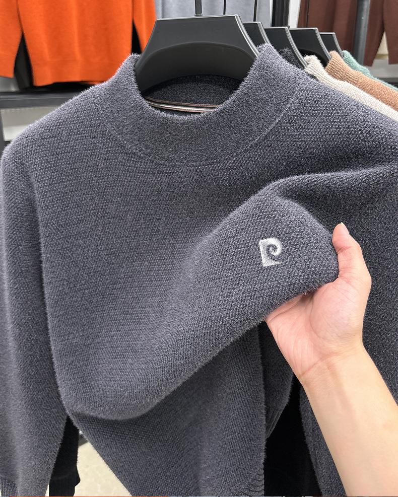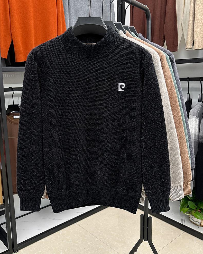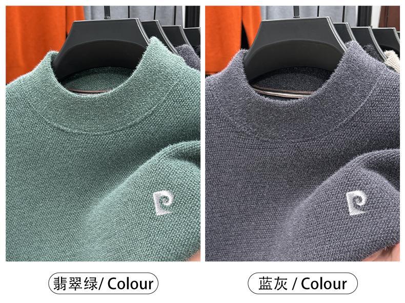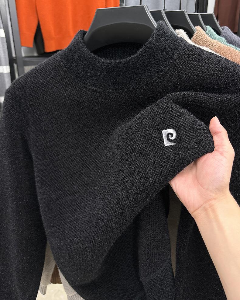 피에르 카딘 스노우 밍크 양털 스웨터 남자 기모 남성용 두꺼운 긴팔 반 높은 목 따뜻한 겨울 스웨터 스웨터 스웨터스토어 가기