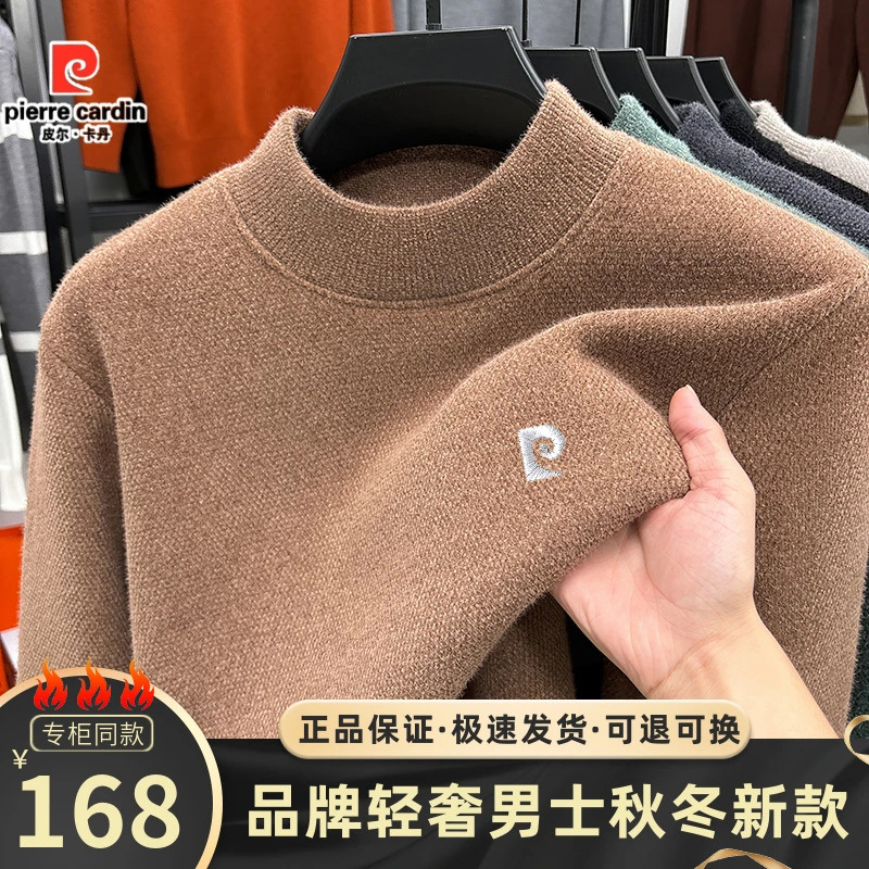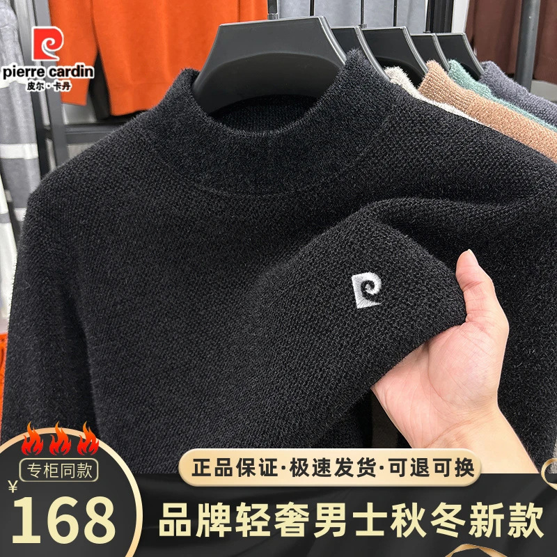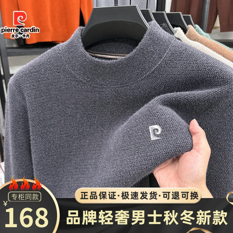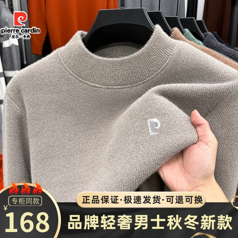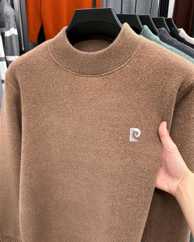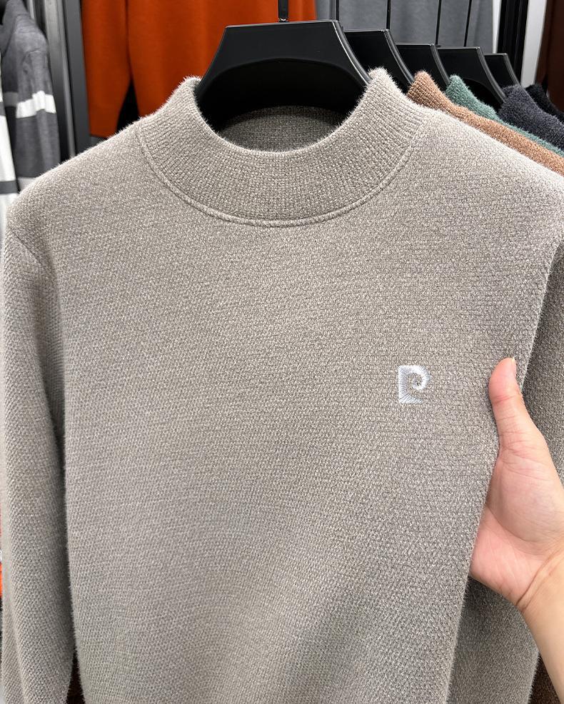 피에르 카딘 스노우 밍크 양털 스웨터 남자 기모 남성용 두꺼운 긴팔 반 높은 목 따뜻한 겨울 스웨터 스웨터 스웨터스토어 가기