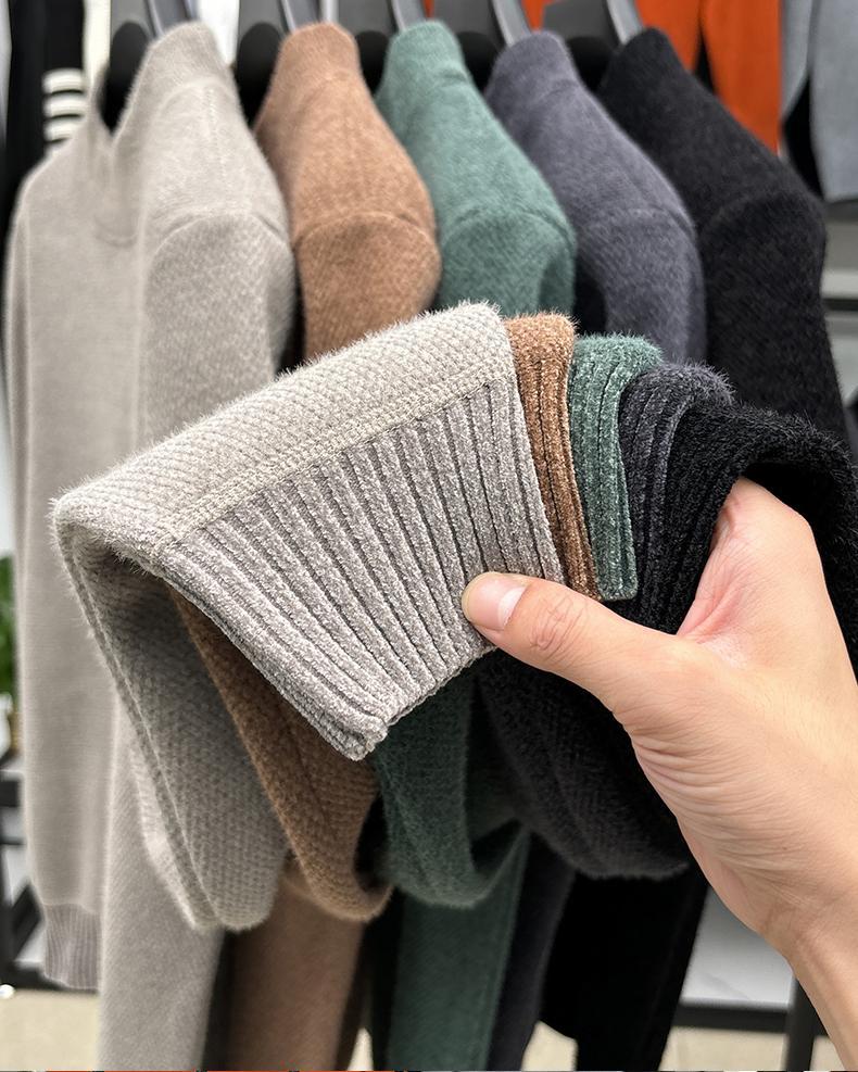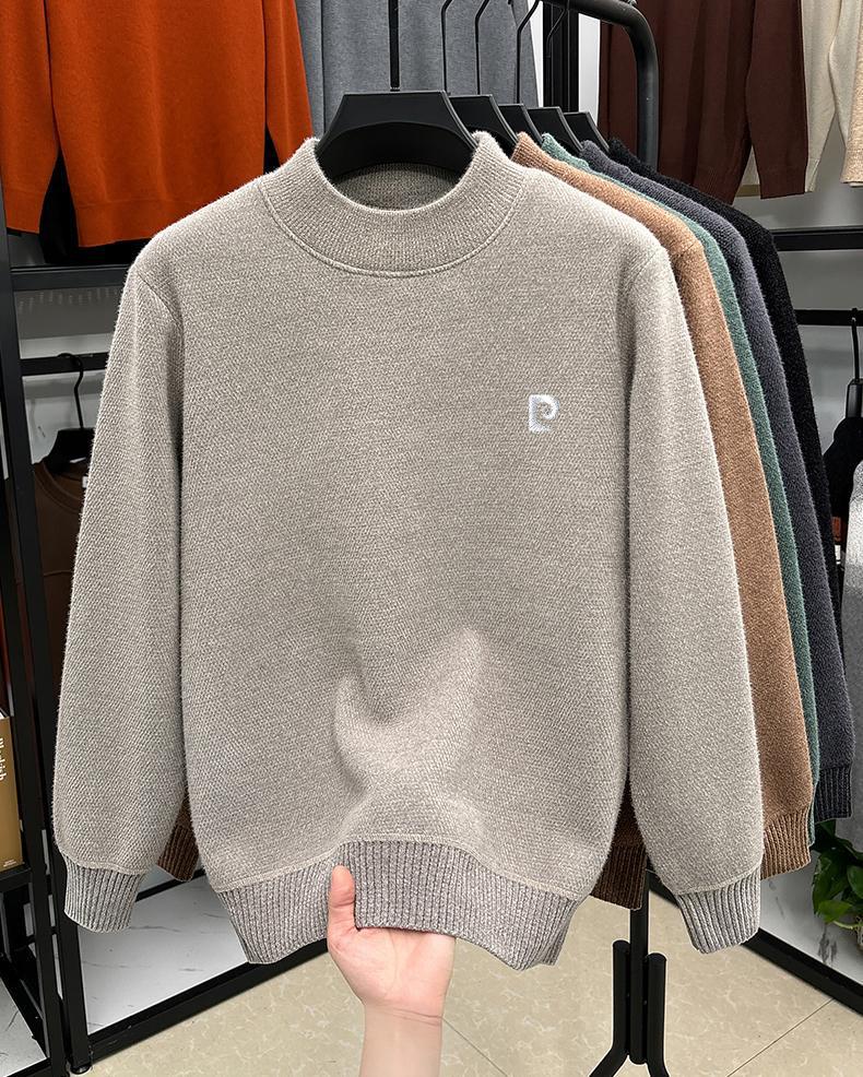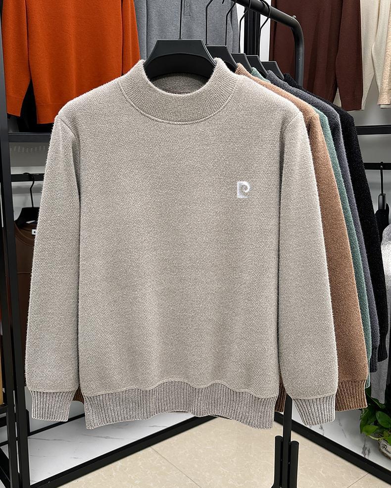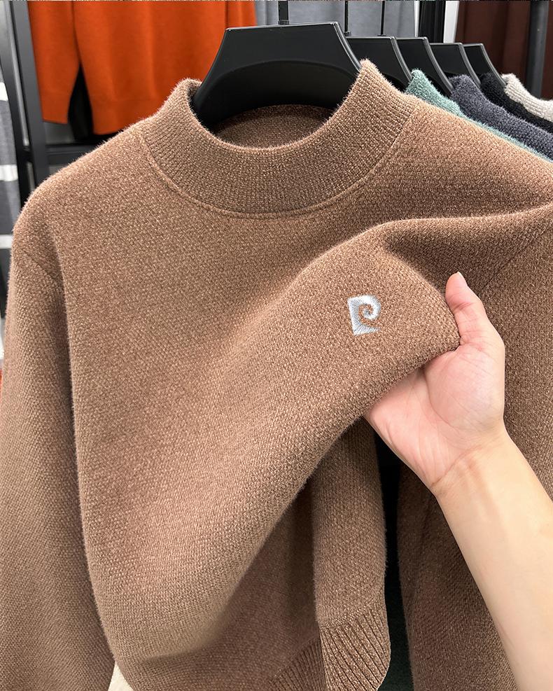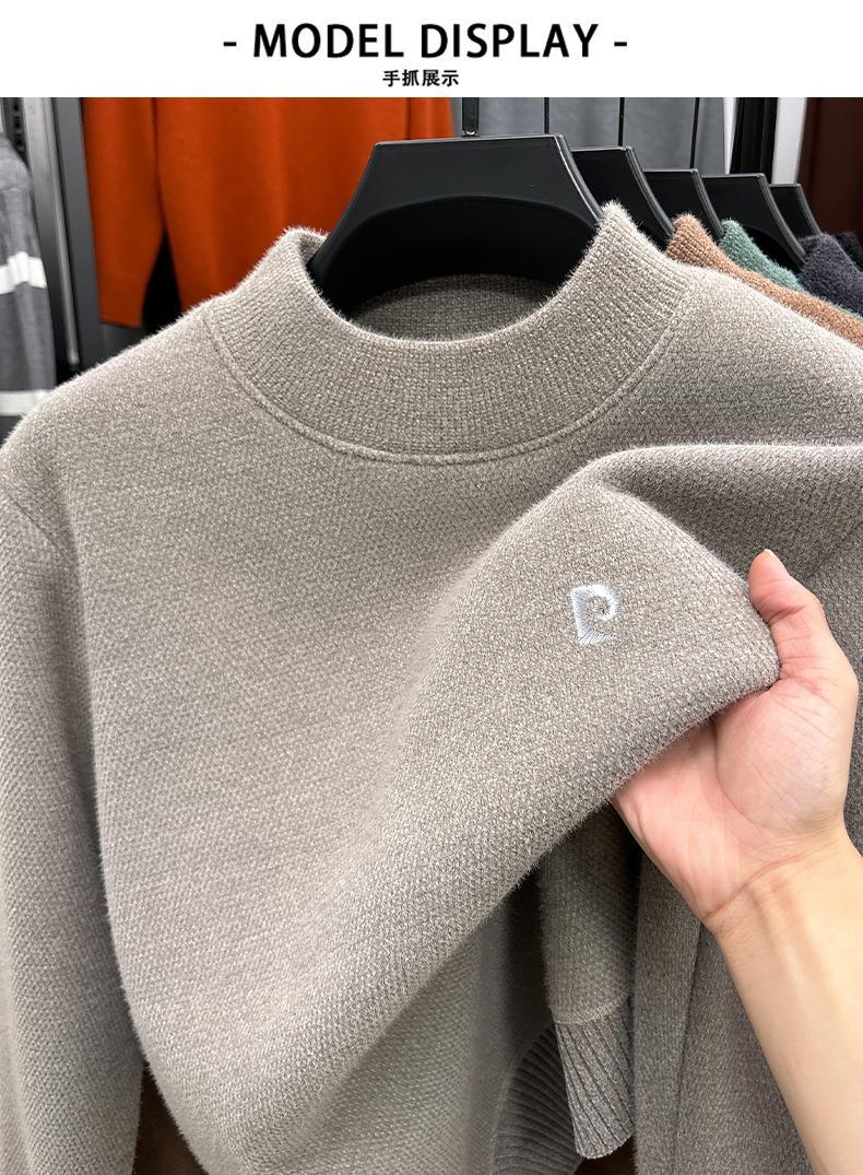 피에르 카딘 스노우 밍크 양털 스웨터 남자 기모 남성용 두꺼운 긴팔 반 높은 목 따뜻한 겨울 스웨터 스웨터 스웨터스토어 가기