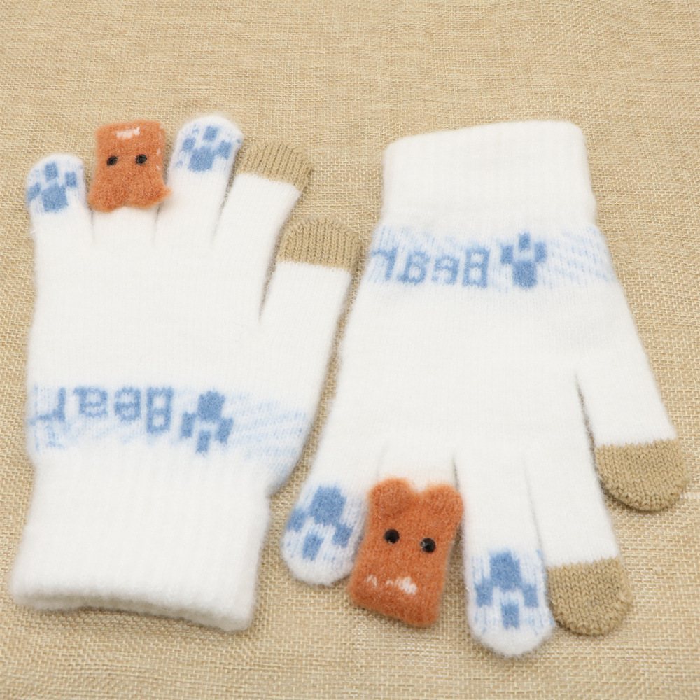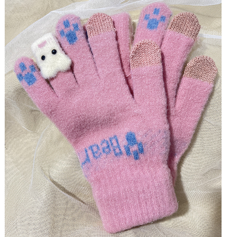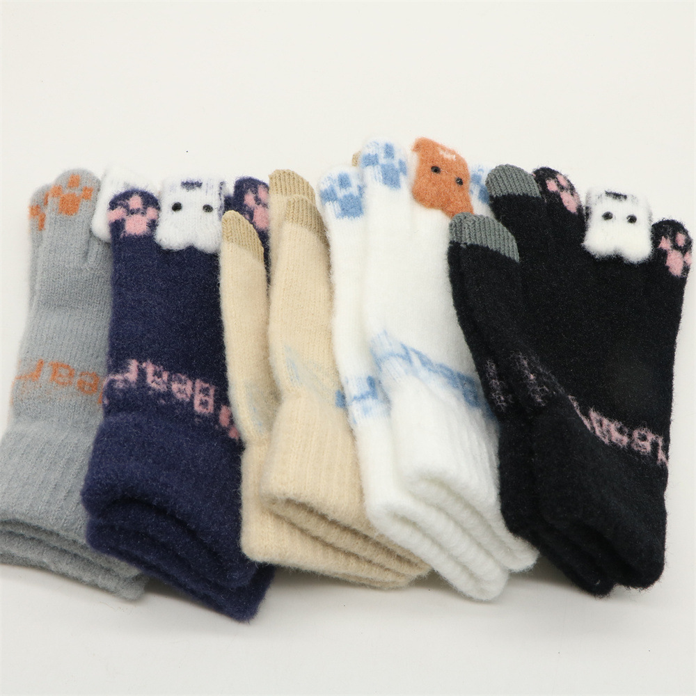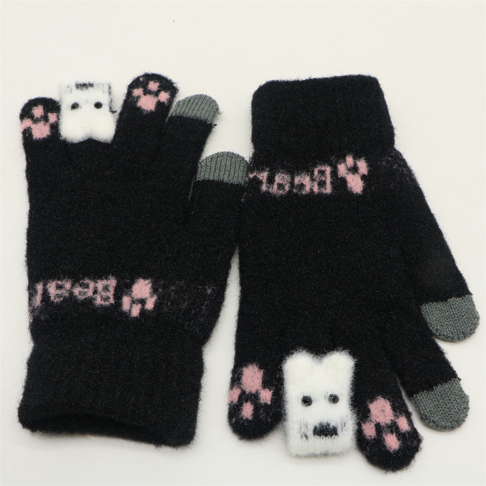 겨울 한국 스타일 학생 귀여운 터치 스크린 장갑 다섯 손가락 니트 기모 두꺼운 따뜻한 사이클링 방한 장갑