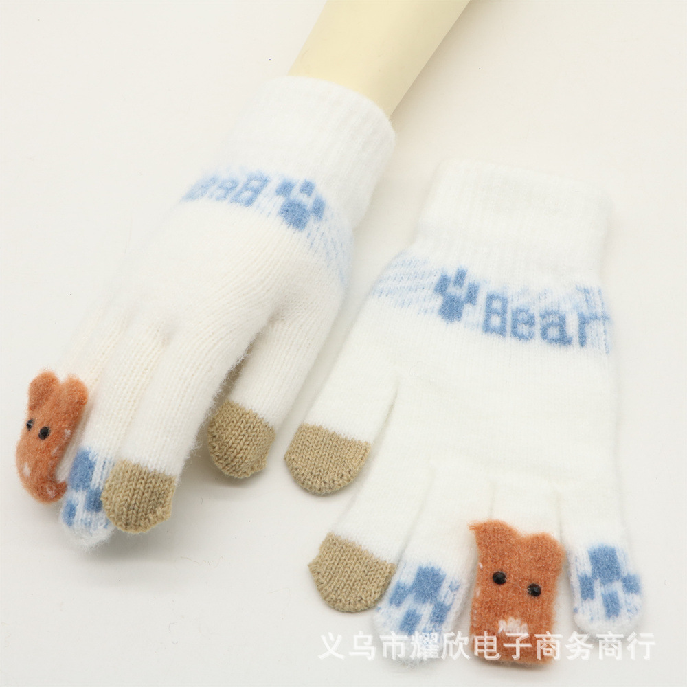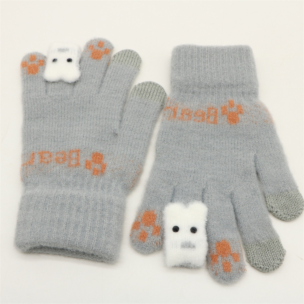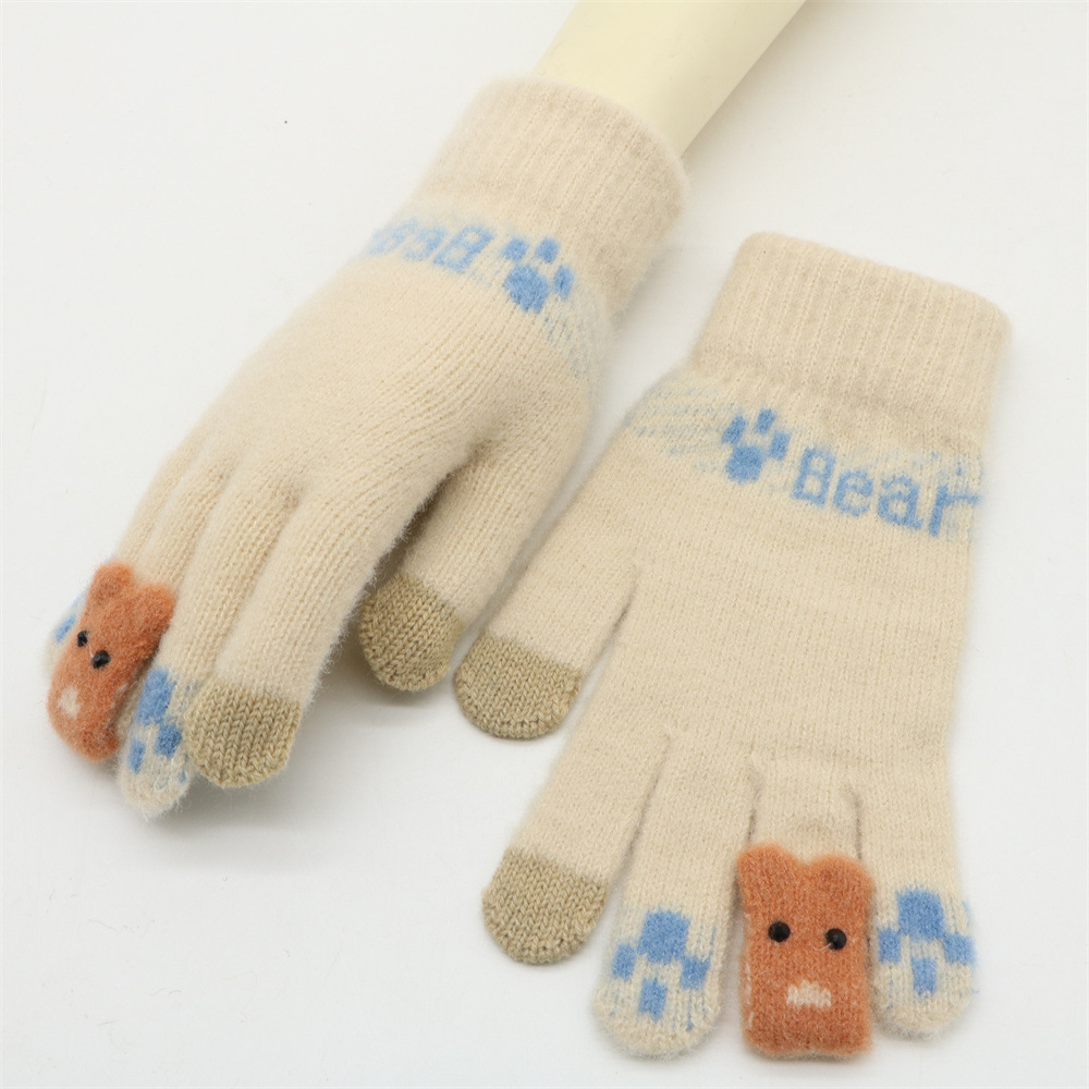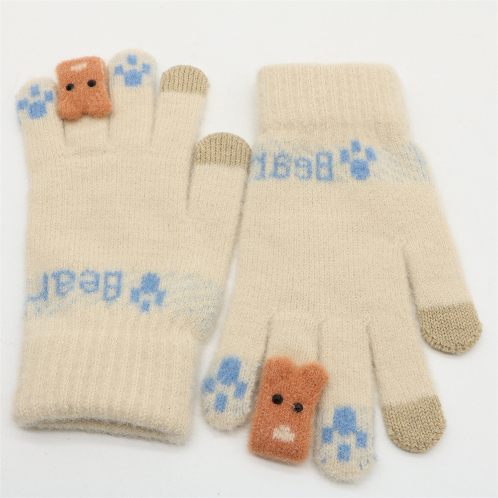 겨울 한국 스타일 학생 귀여운 터치 스크린 장갑 다섯 손가락 니트 기모 두꺼운 따뜻한 사이클링 방한 장갑