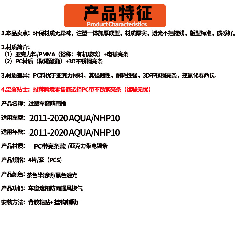 도요타 아쿠아 자동차 창 비 방패 도요타 아쿠아 2011-2019윈도우 바이저에 적합