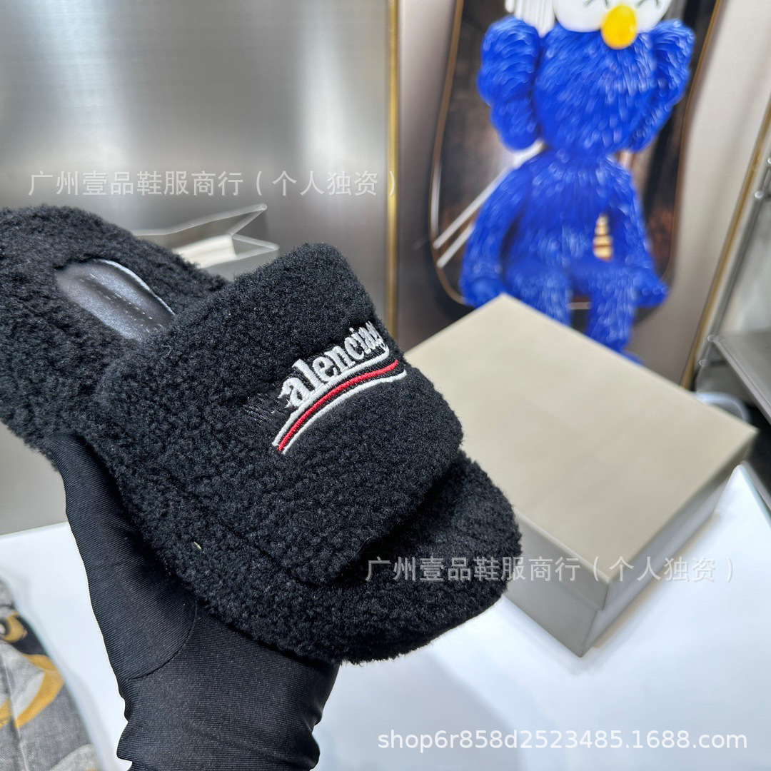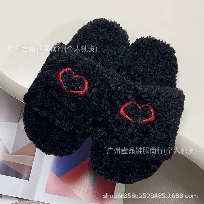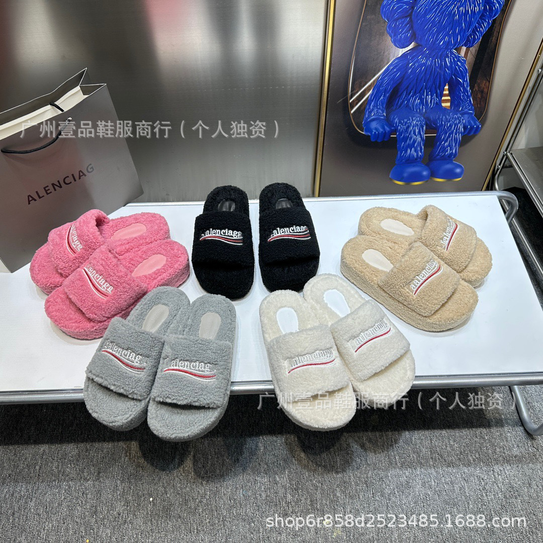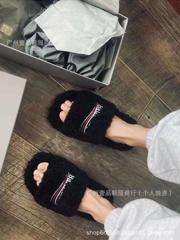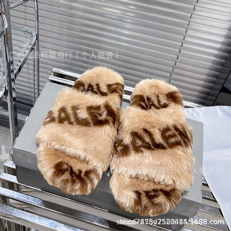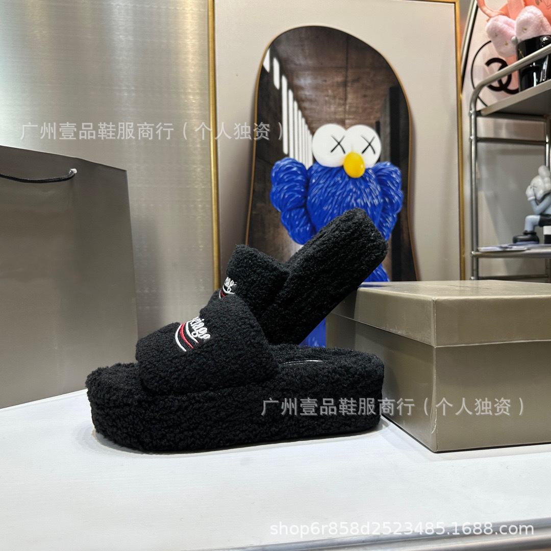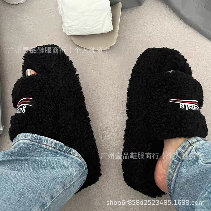 하이 버전 B 자수 편지 마오 마오 슬리퍼 두꺼운 바닥 6cm 방수 플랫폼 양고기 양모 슬리퍼 외부 플랫 울 슬리퍼스토어 가기
