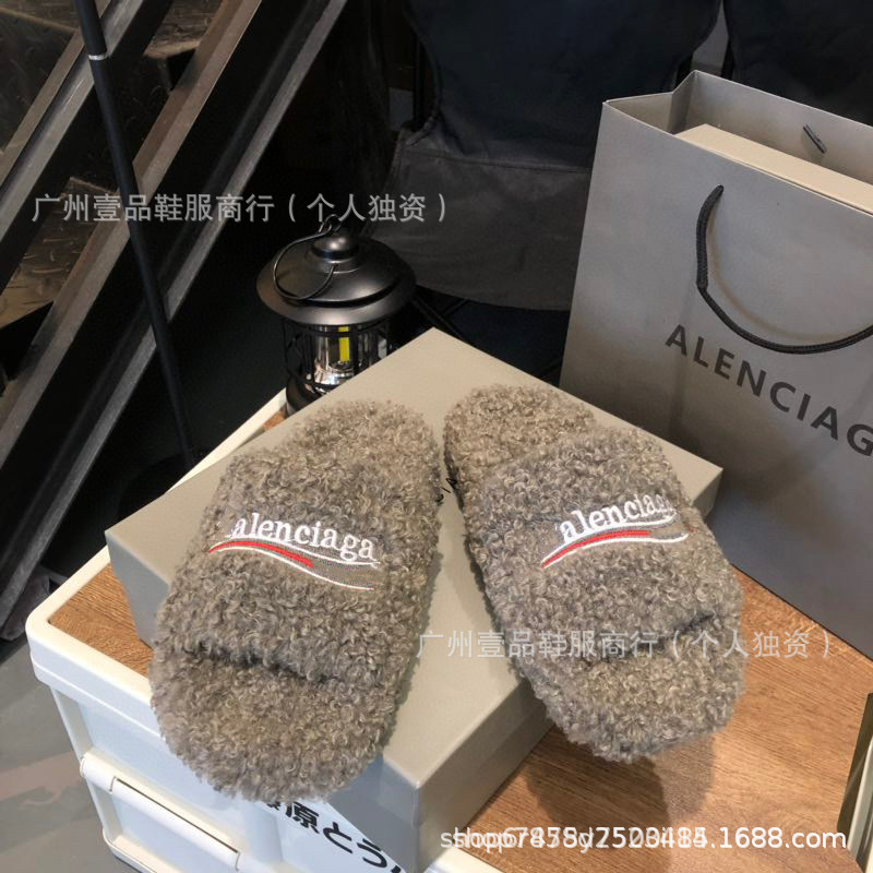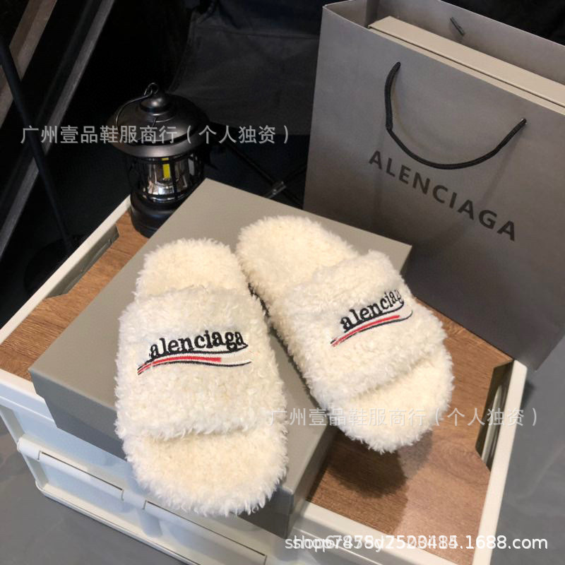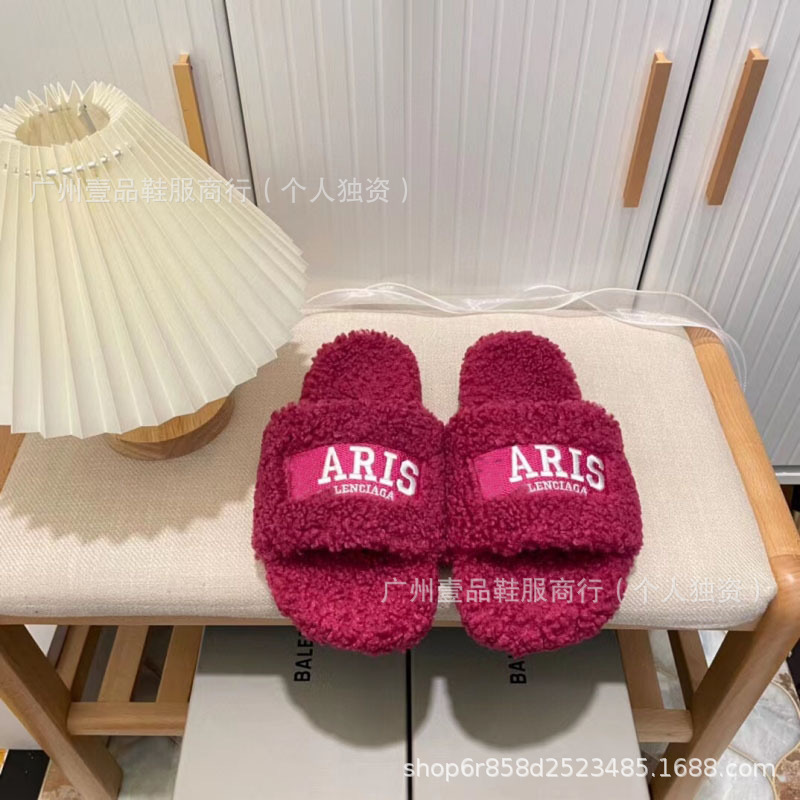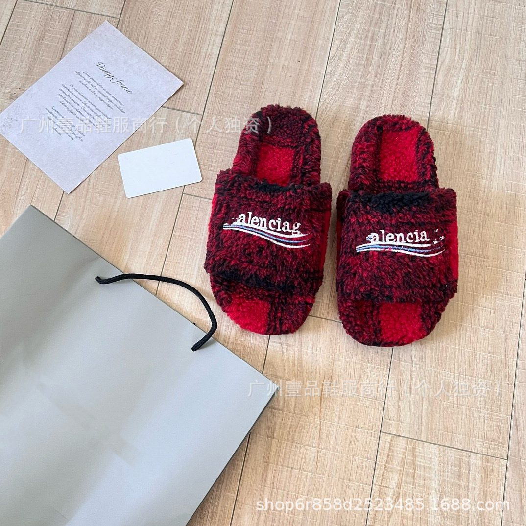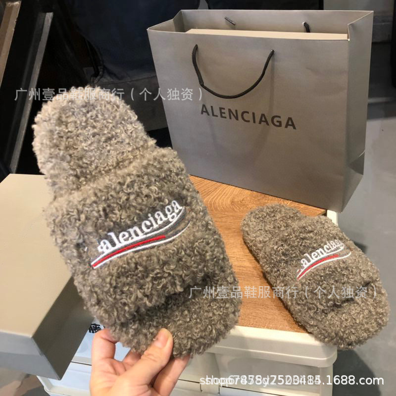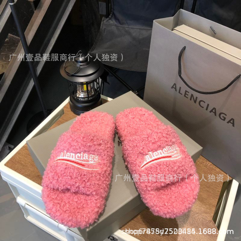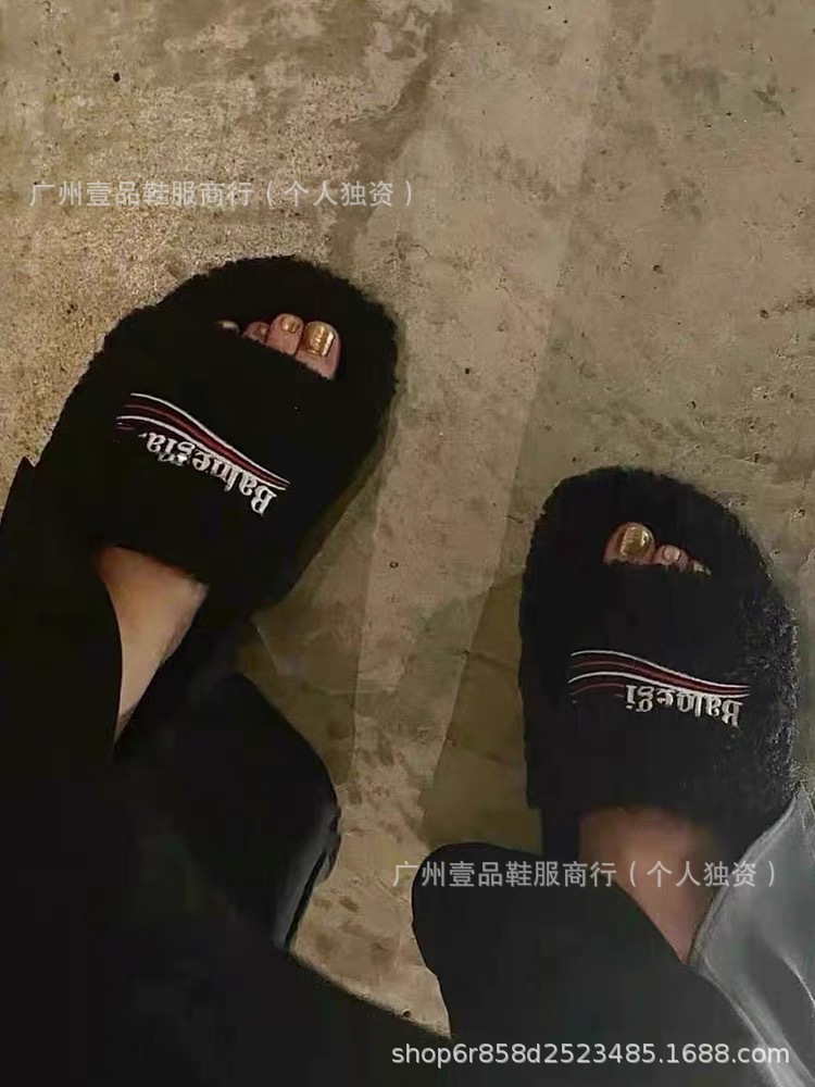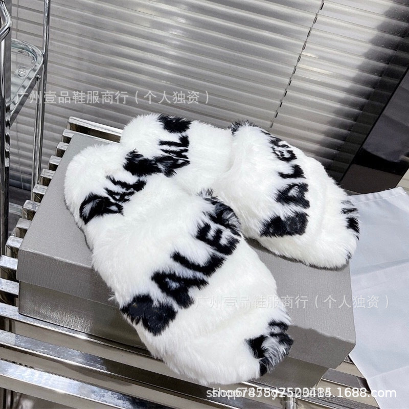 하이 버전 B 자수 편지 마오 마오 슬리퍼 두꺼운 바닥 6cm 방수 플랫폼 양고기 양모 슬리퍼 외부 플랫 울 슬리퍼스토어 가기