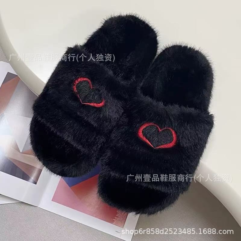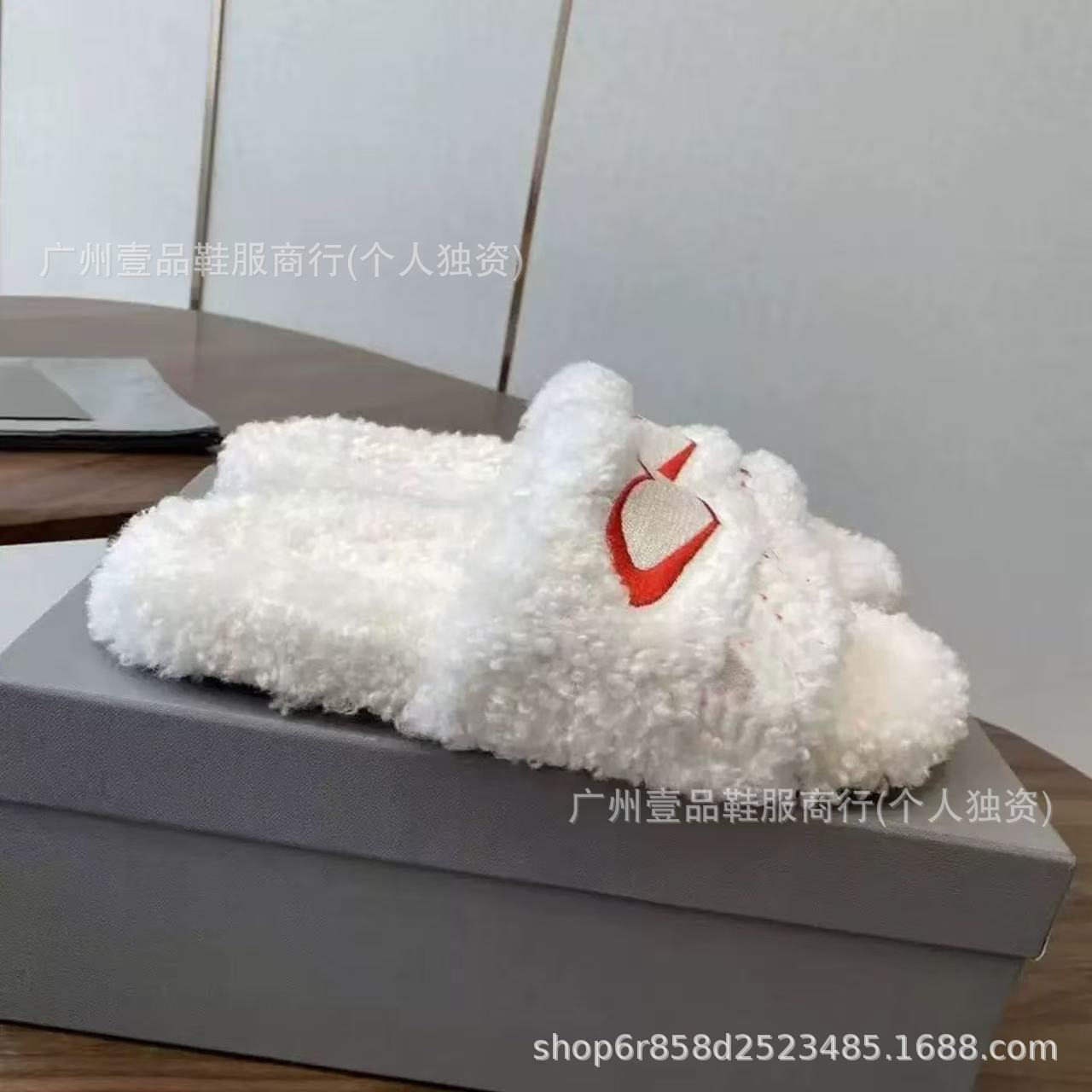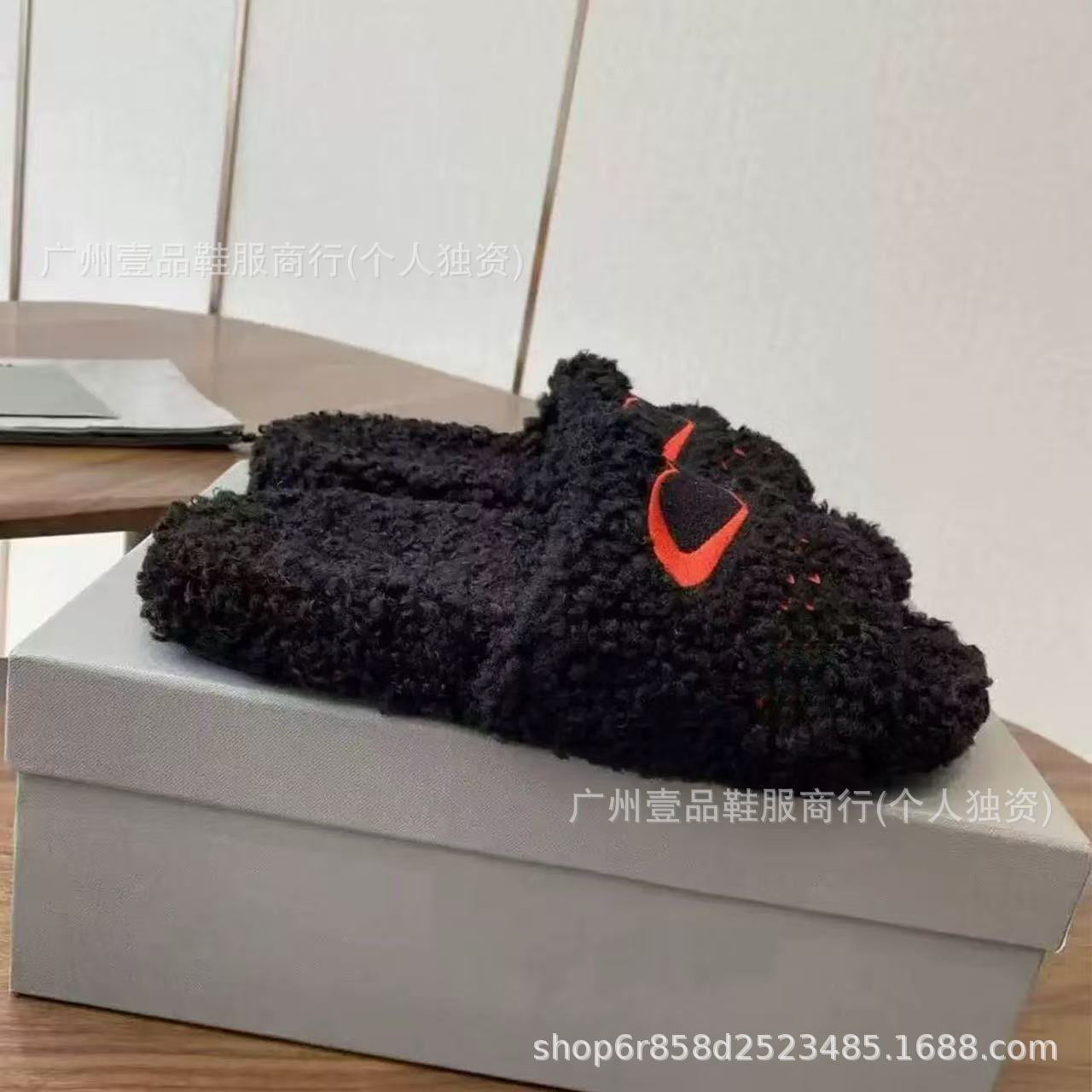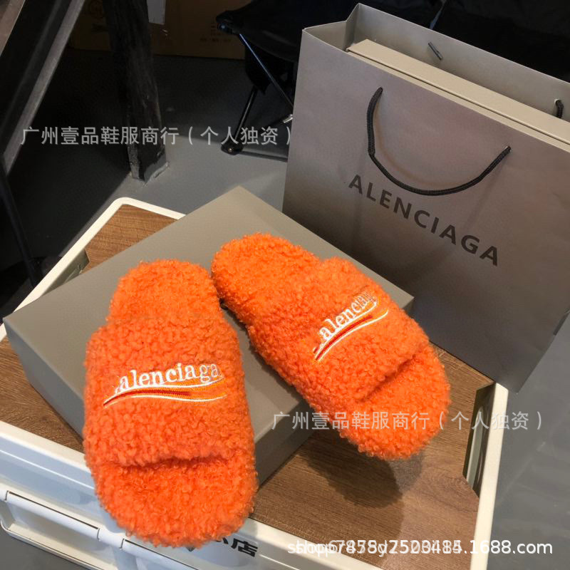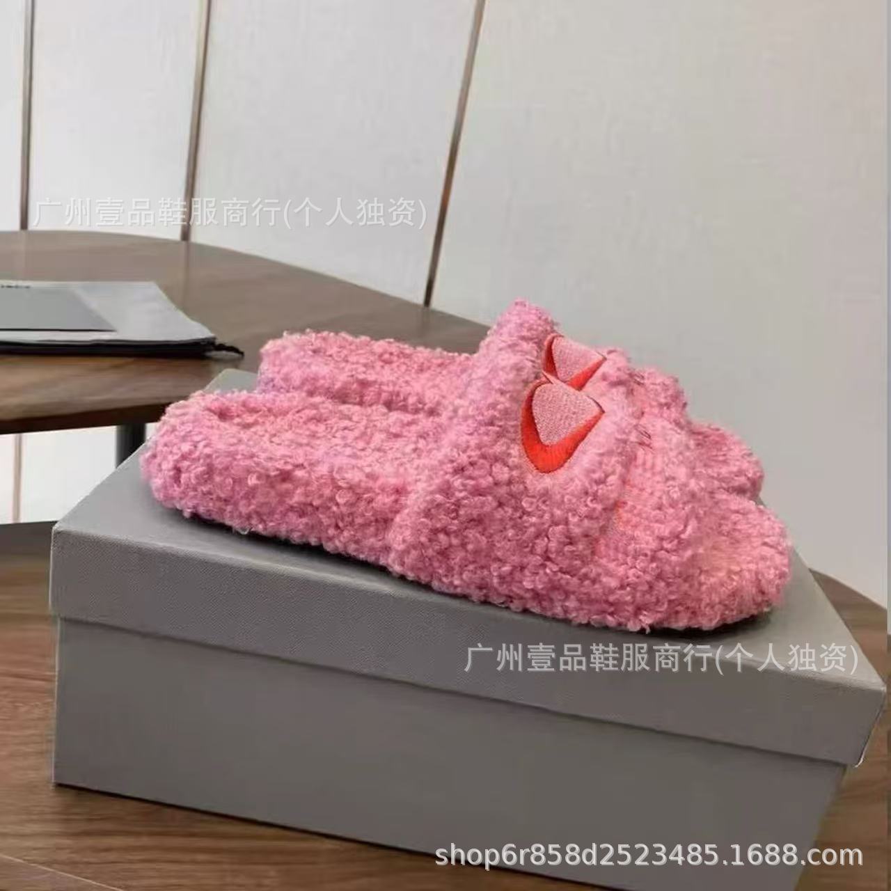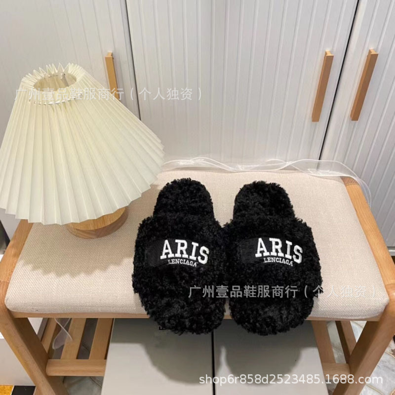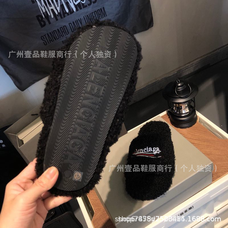 하이 버전 B 자수 편지 마오 마오 슬리퍼 두꺼운 바닥 6cm 방수 플랫폼 양고기 양모 슬리퍼 외부 플랫 울 슬리퍼스토어 가기