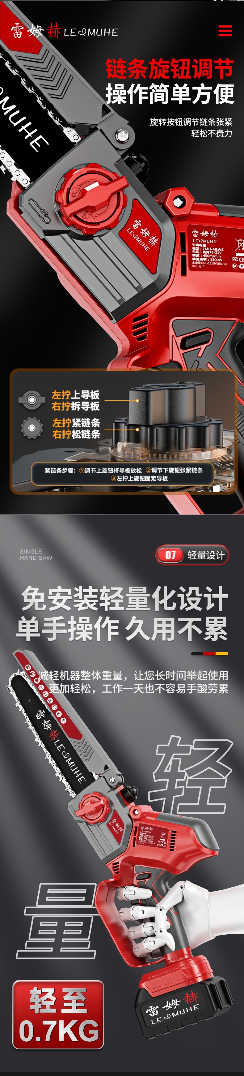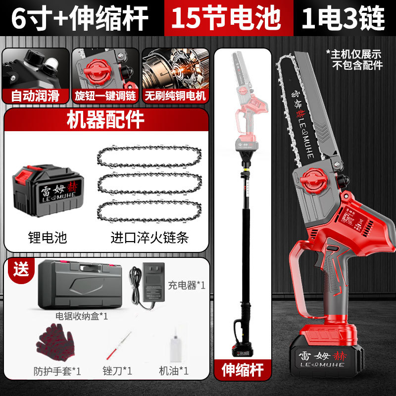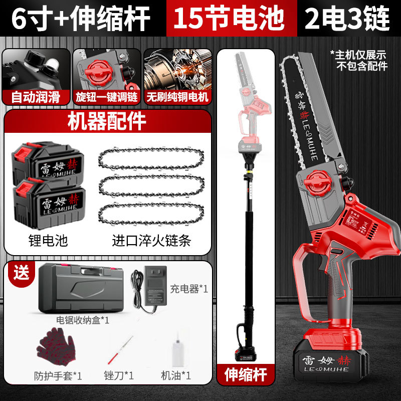 • [ 6inch 고출력 고속 톱 + 텔레스코픽 폴] 배터리 15개 [배터리 1개, 체인 3개]