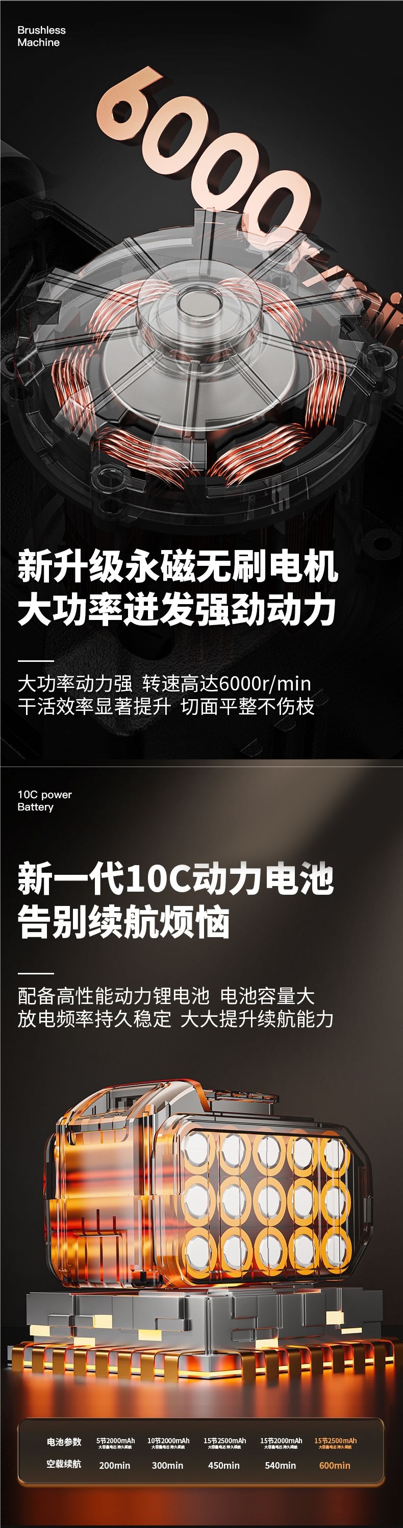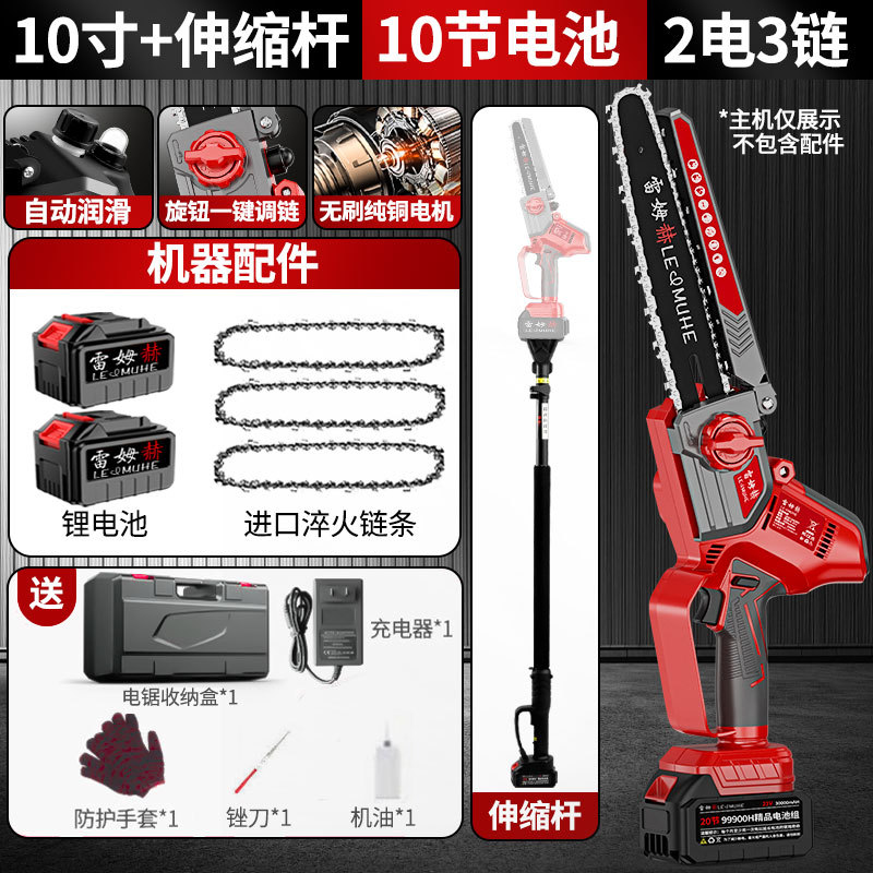 • [ 10inch 고출력 고속 톱 + 텔레스코픽 폴] 배터리 10개 [배터리 2개, 체인 3개]