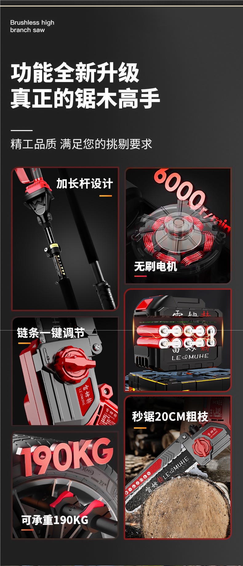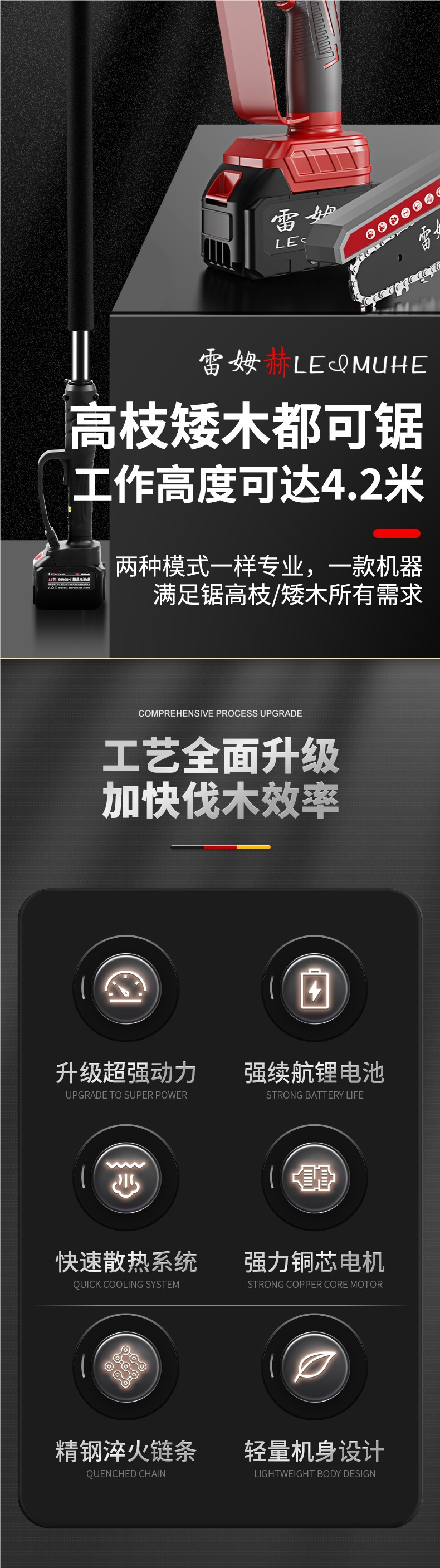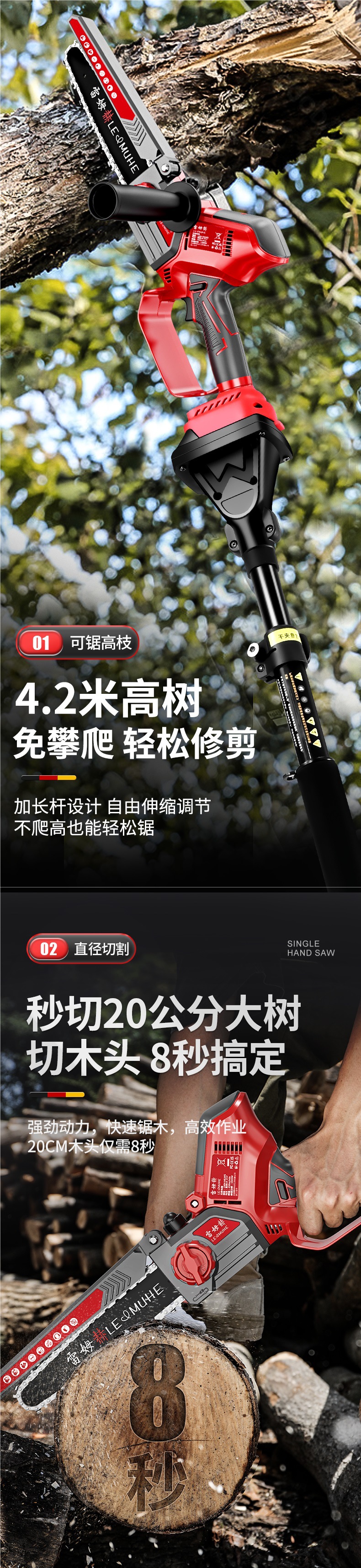 • [ 8inch 고출력 고속 톱 + 텔레스코픽 폴] 배터리 15개 [배터리 2개, 체인 3개]