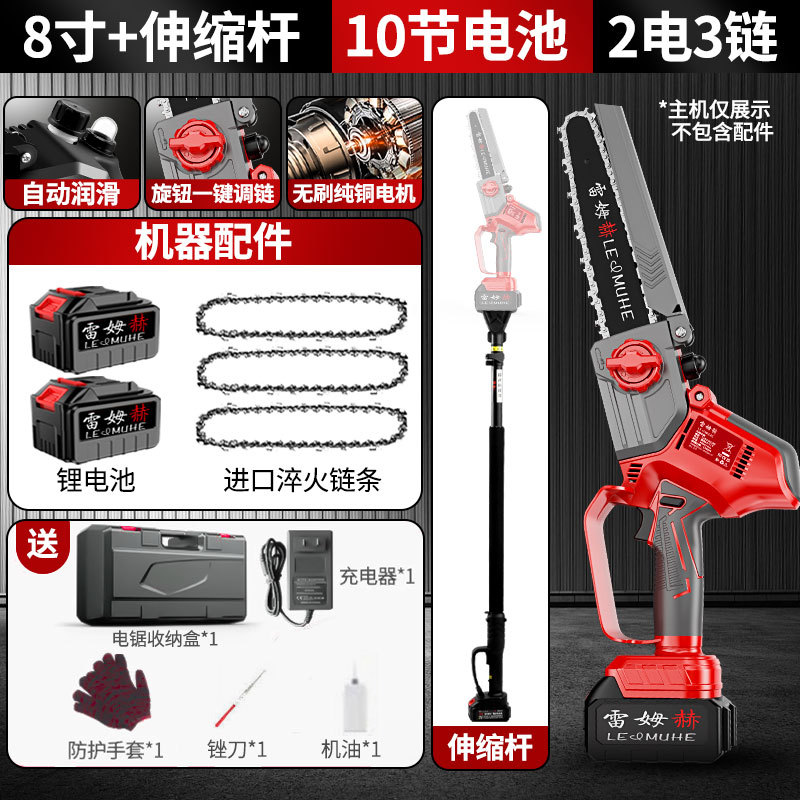 • [ 8inch 고출력 고속 톱 + 텔레스코픽 폴] 배터리 10개 [배터리 1개, 체인 3개]