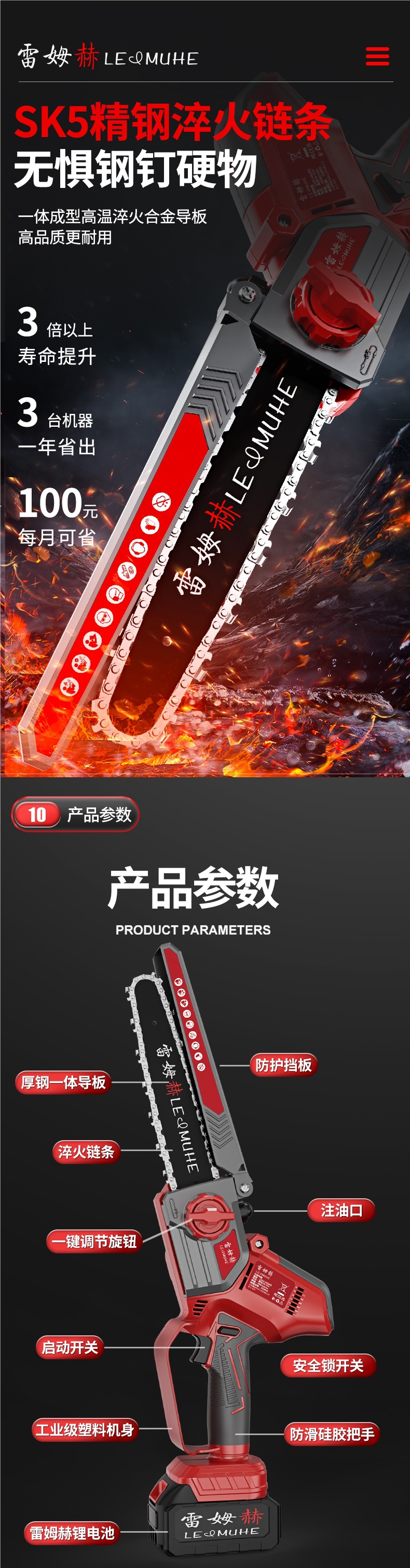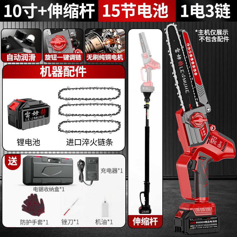 • [ 10inch 고출력 고속 톱 + 텔레스코픽 폴] 배터리 15개 [배터리 1개, 체인 3개]