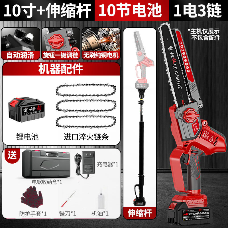 • [ 10inch 고출력 고속 톱 + 텔레스코픽 폴] 배터리 10개 [배터리 1개, 체인 3개]