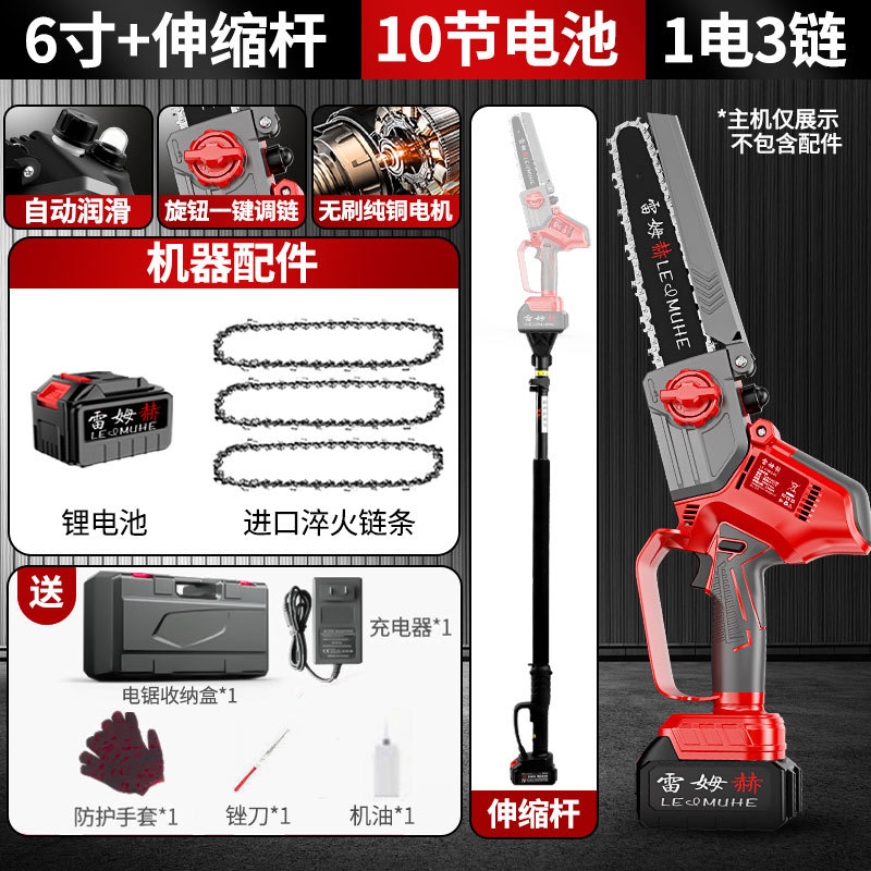 • [ 6inch 고출력 고속 톱 + 텔레스코픽 폴] 배터리 10개 [배터리 1개, 체인 3개]
