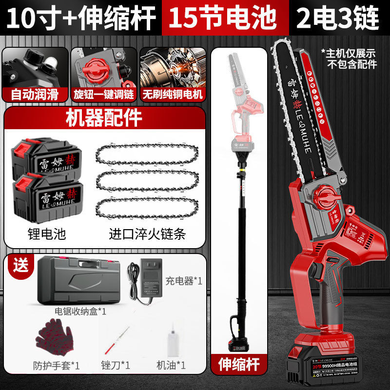• [ 10inch 고출력 고속 톱 + 텔레스코픽 폴] 배터리 15개 [배터리 2개, 체인 3개]