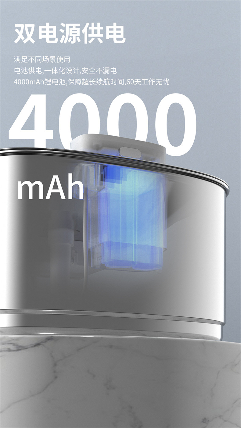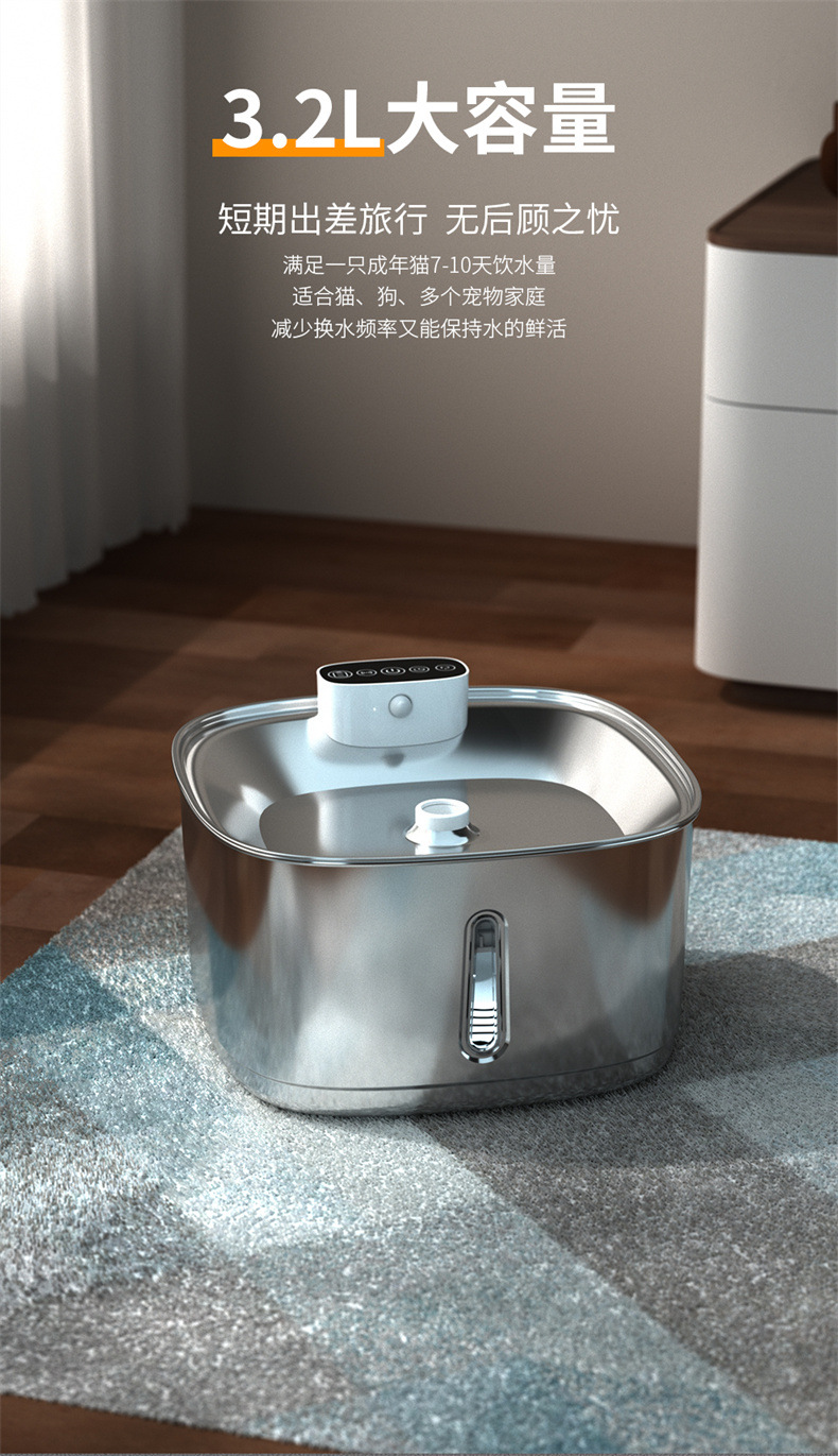 스테인레스 스틸 고양이 워터 디스펜서 무선 지능형 자동 순환 워터 디스펜서 플러그를 뽑은 중형 및 대형 애완 동물 워터 디스펜서