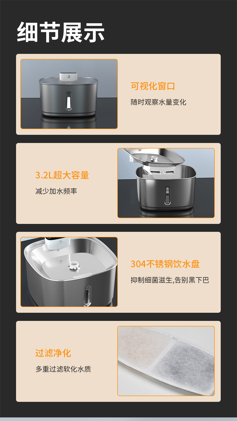 스테인레스 스틸 고양이 워터 디스펜서 무선 지능형 자동 순환 워터 디스펜서 플러그를 뽑은 중형 및 대형 애완 동물 워터 디스펜서스토어 가기