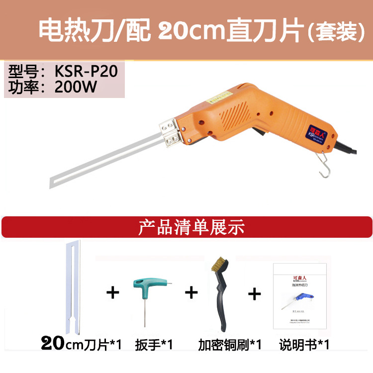 • 25cm 직선 칼날 + 조각 세트 + 와이어가 포함된 250W 공냉식 전기 가열 칼