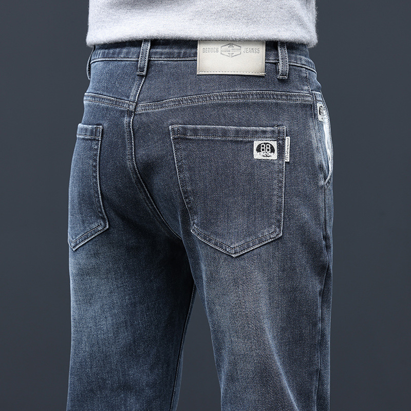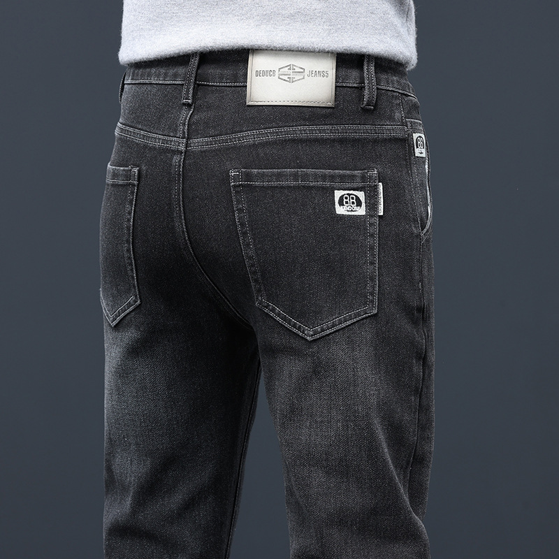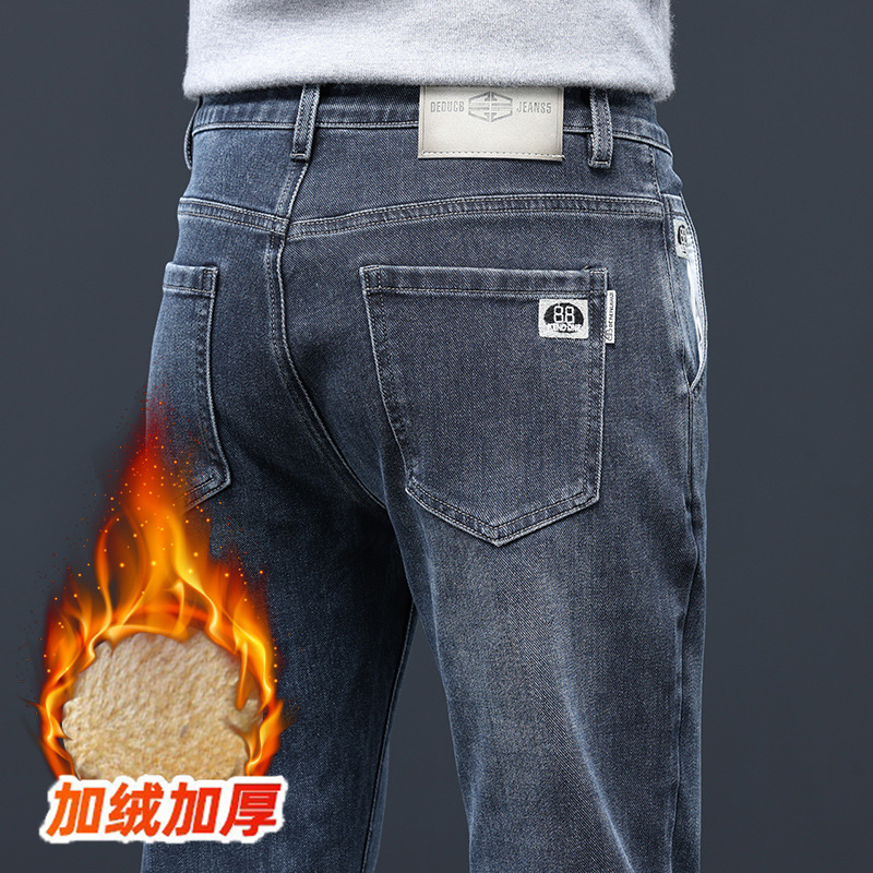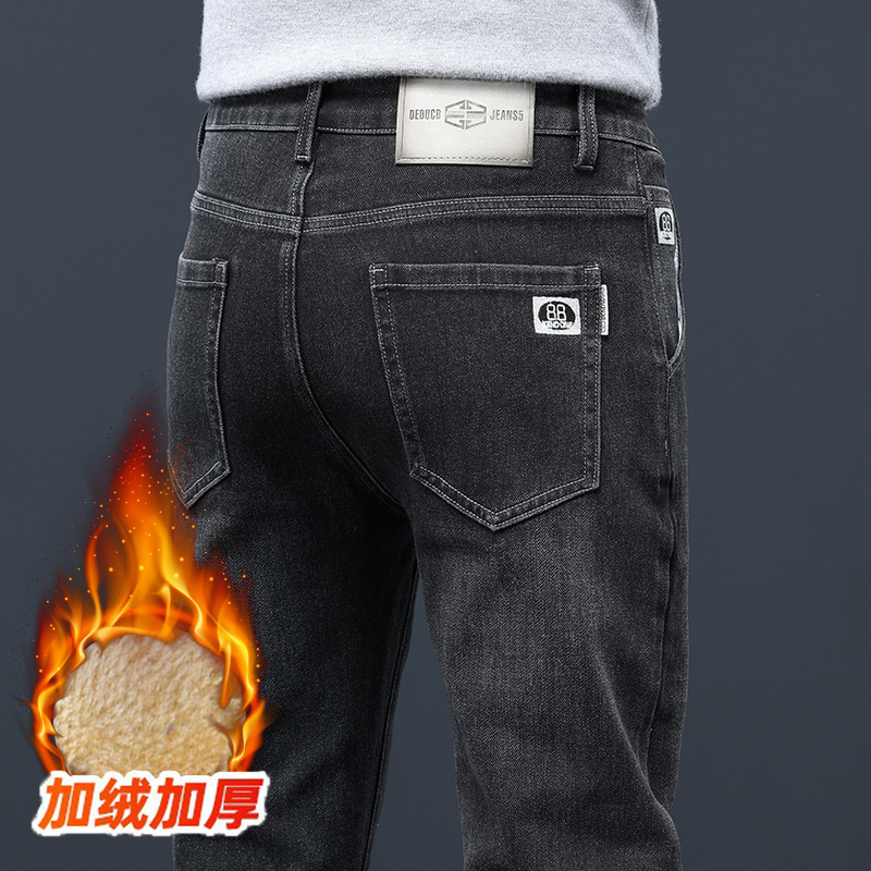 하이 엔드 블랙 그레이 청바지 남성용 2024 가을과 겨울 기모 두꺼운 바지 남성용 스트레치 슬림 스트레이트 바지스토어 가기