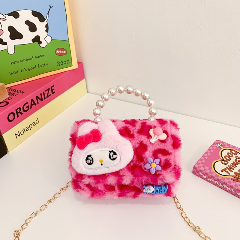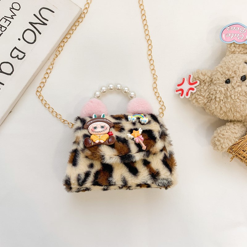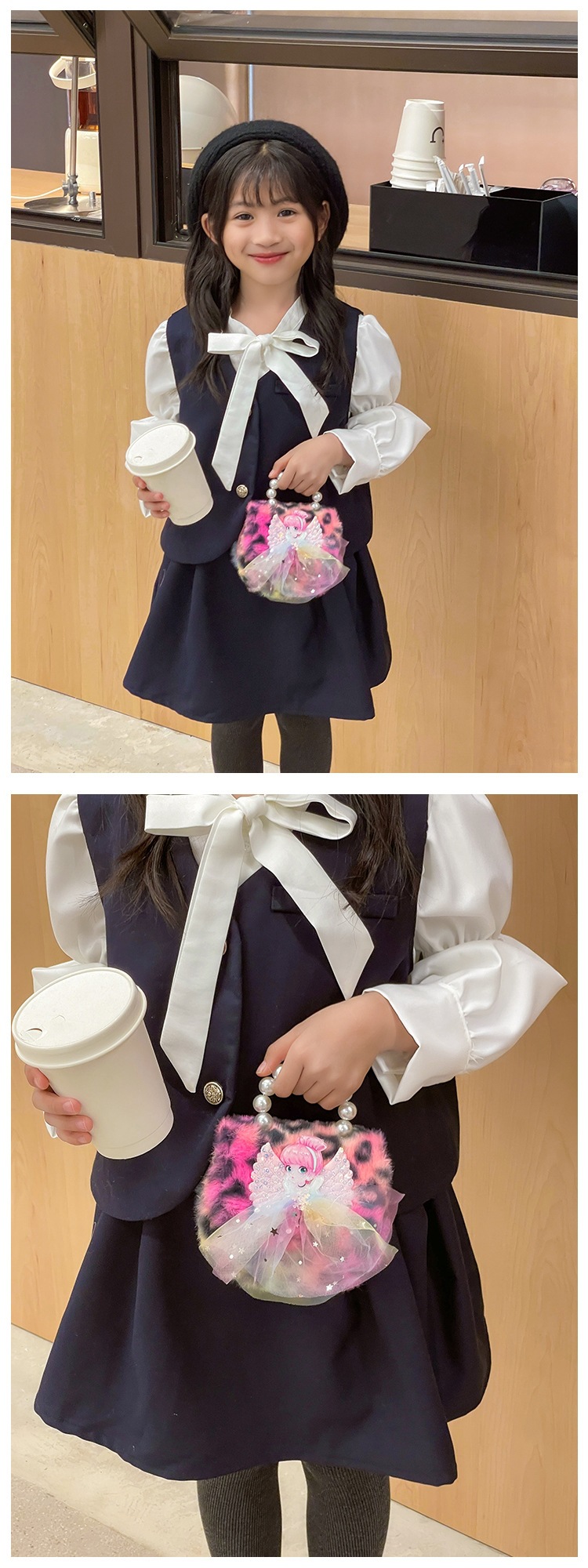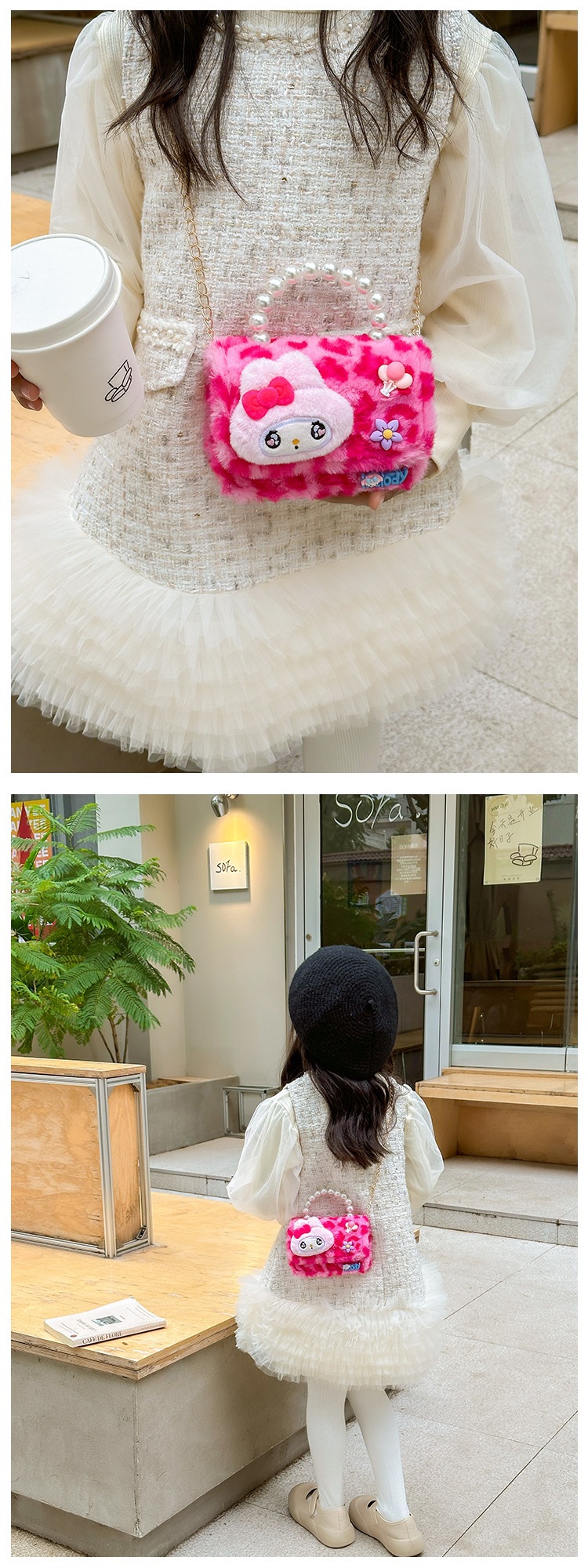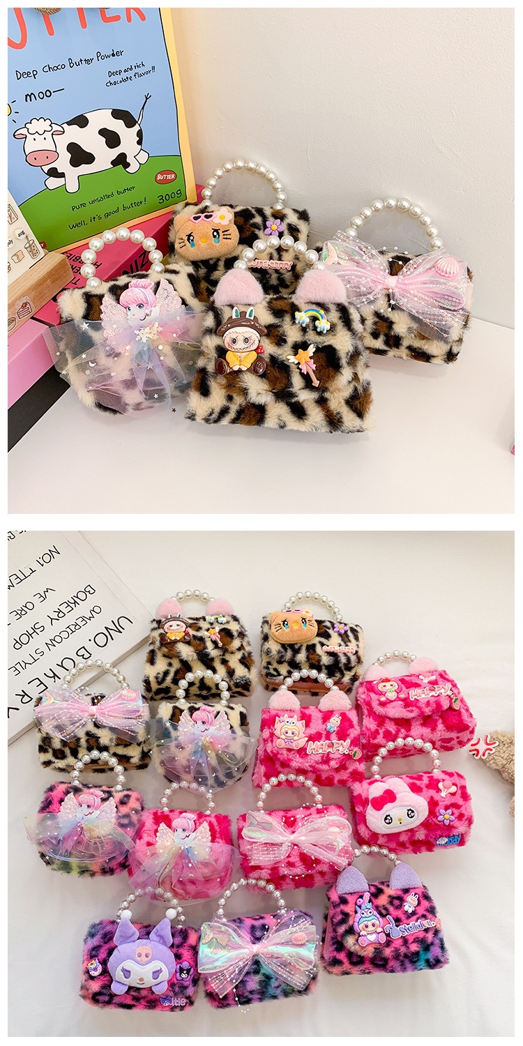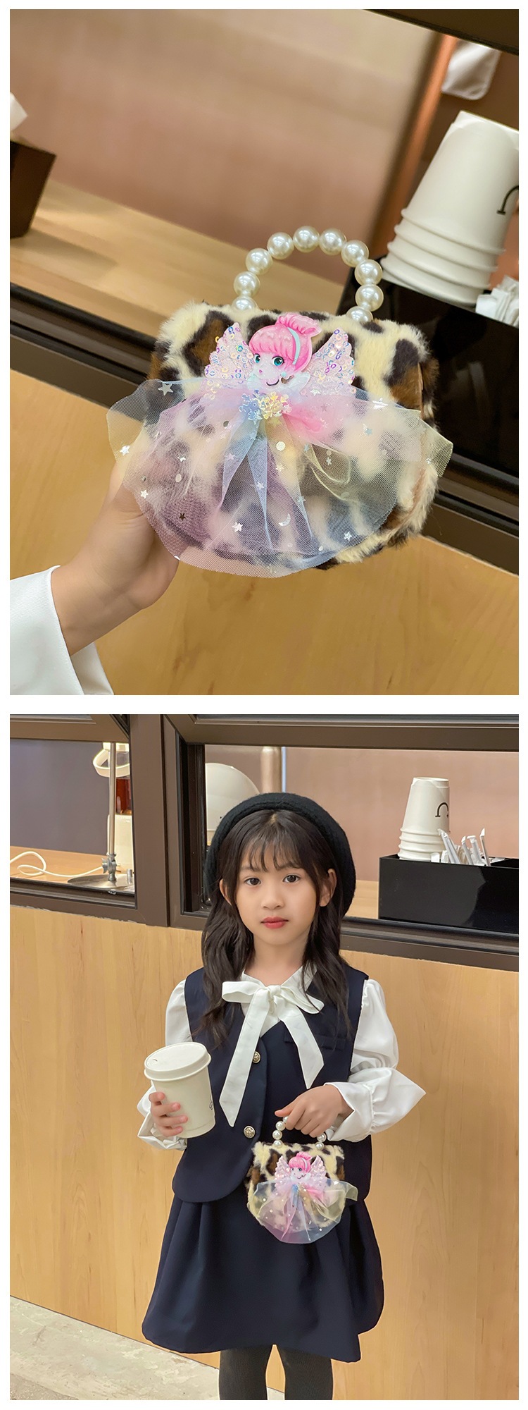 새로운 스타일의 플러시 어린이 크로스백 공주풍 귀여운 가방 진주 핸드백 아기 소녀 비즈 핸드백스토어 가기