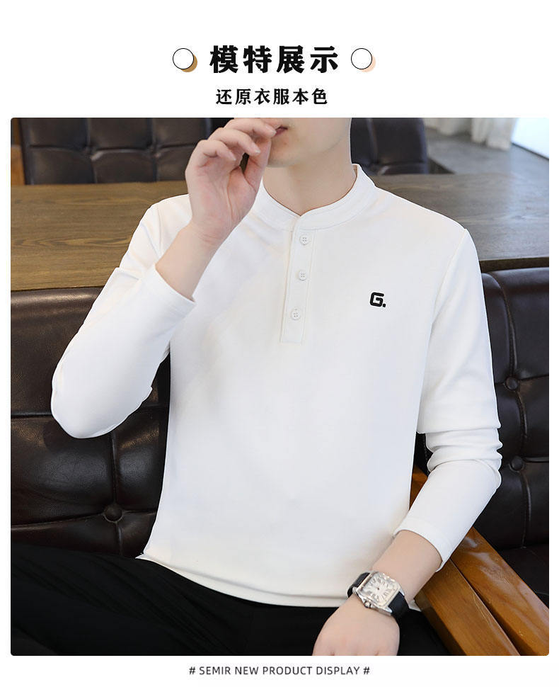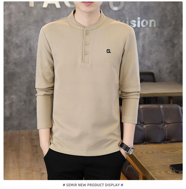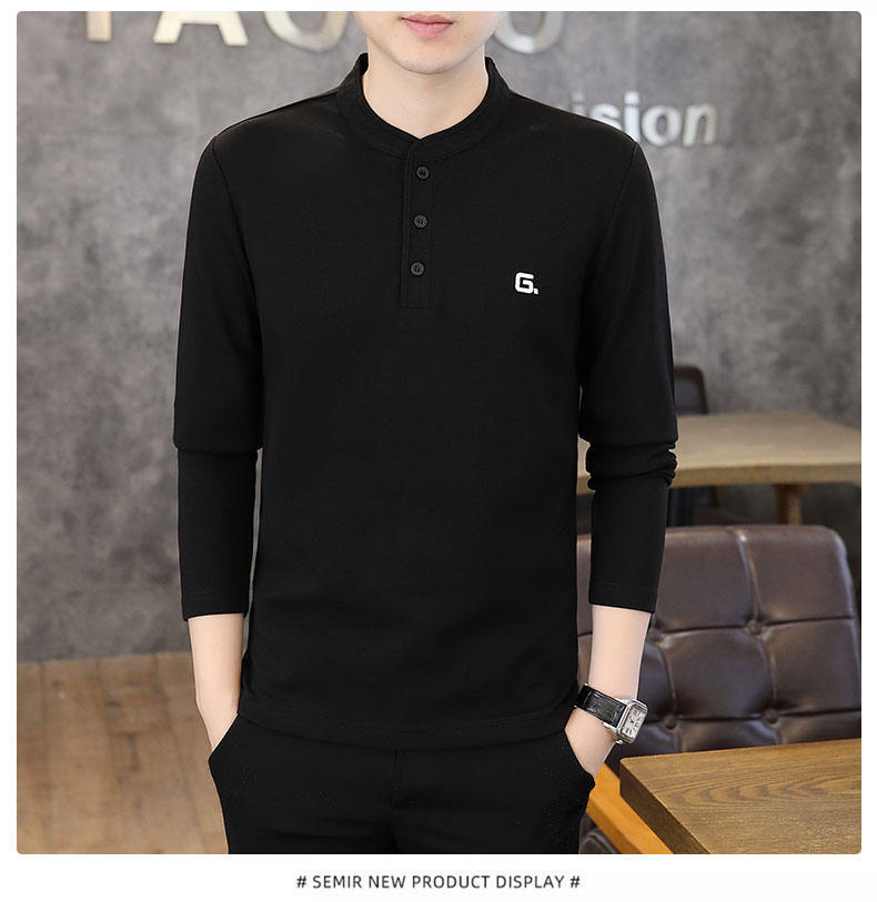 남자 쿠바 칼라 3 버튼 구슬 긴팔 티셔츠 가을 뉴 남성베이스 스웨트 셔츠 유행 탑스토어 가기