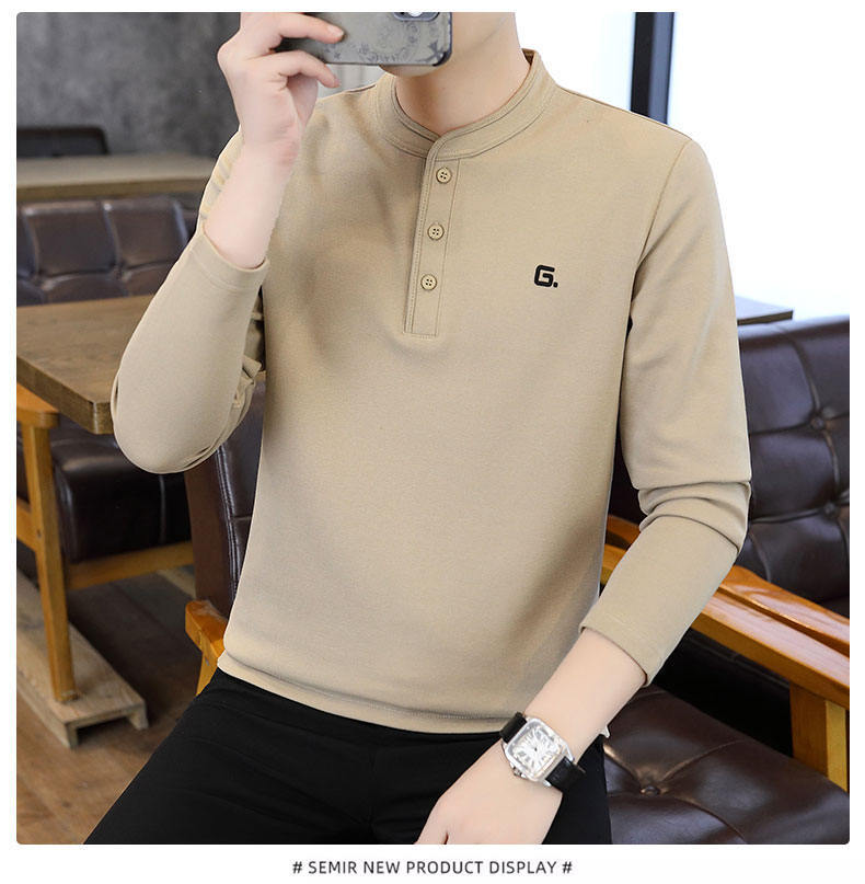 남자 쿠바 칼라 3 버튼 구슬 긴팔 티셔츠 가을 뉴 남성베이스 스웨트 셔츠 유행 탑