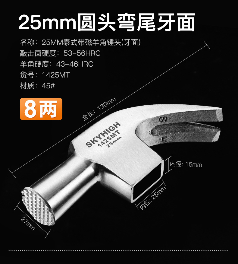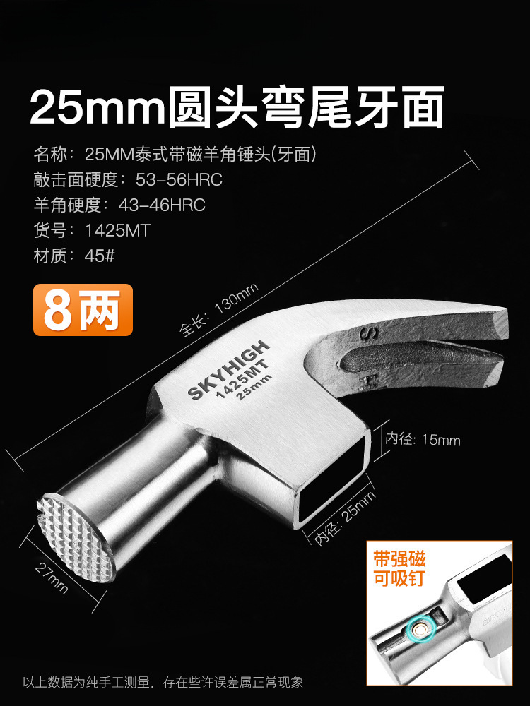 • 【 0.4kg 】별도의 해머 헤드(자석 톱니 표면이 있는 25MM 태국 스타일-1425MT)