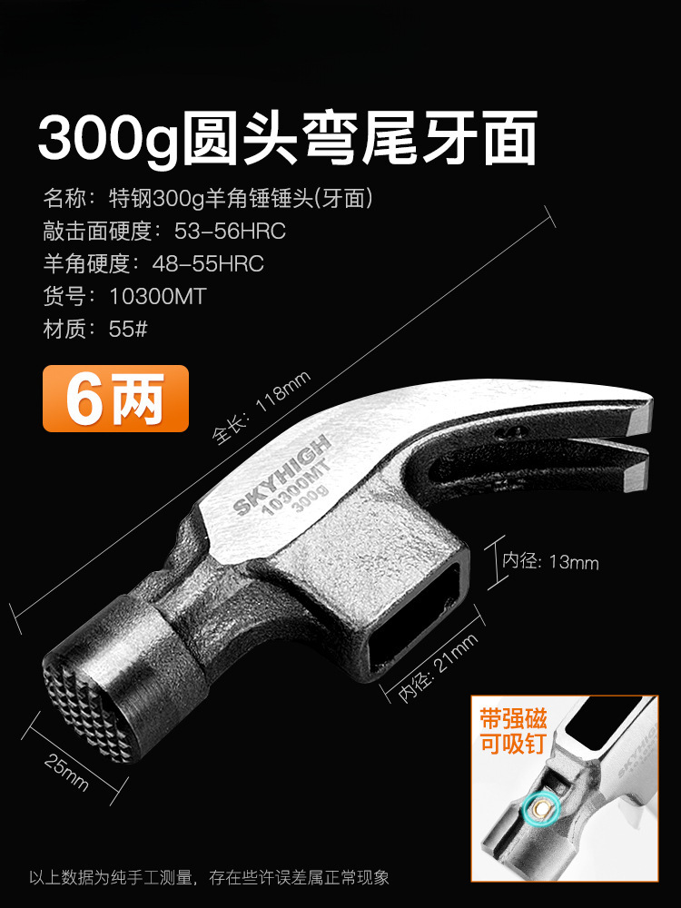 • 【 0.3kg 】별도의 해머 헤드(자기 톱니 표면이 있는 미국식 Y-J09M)