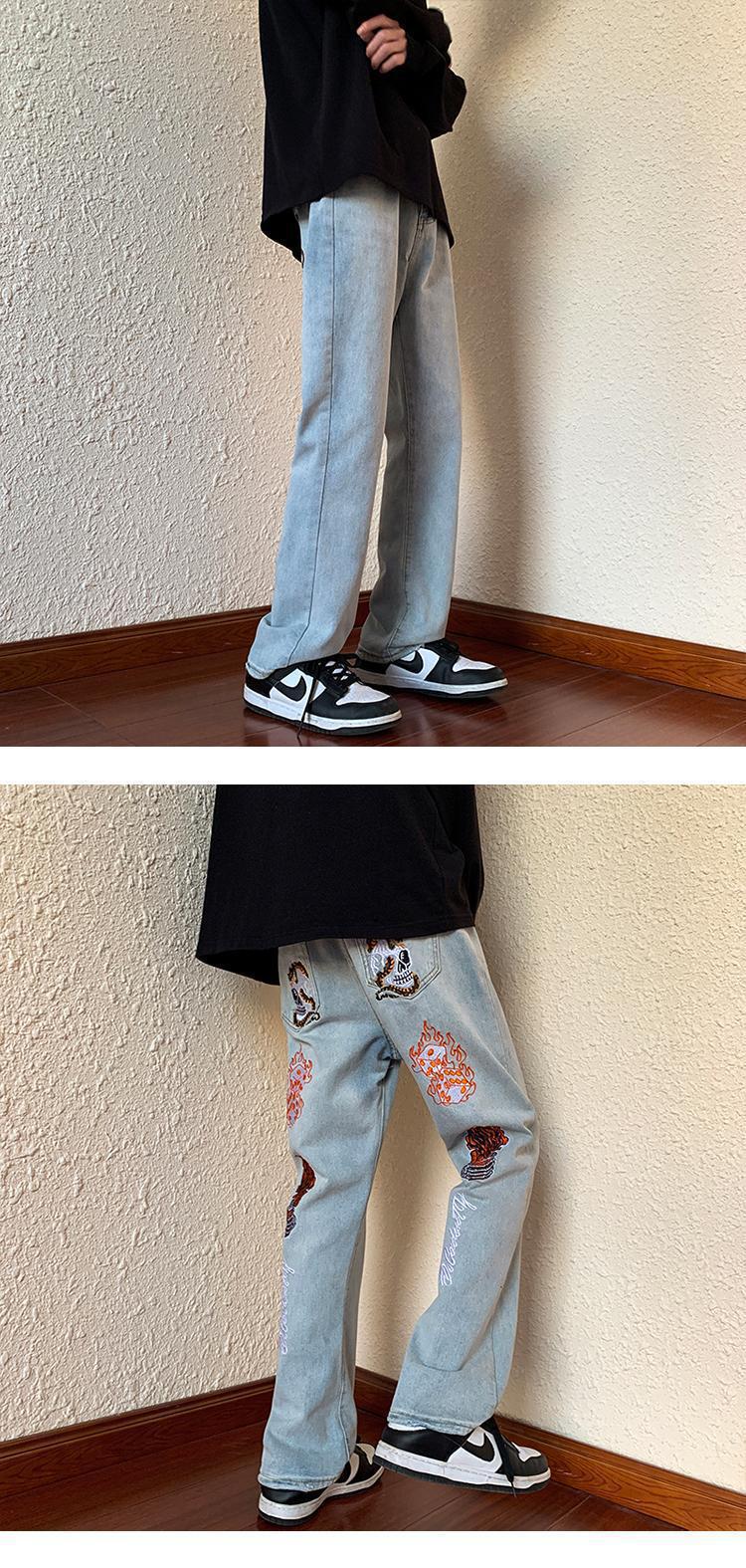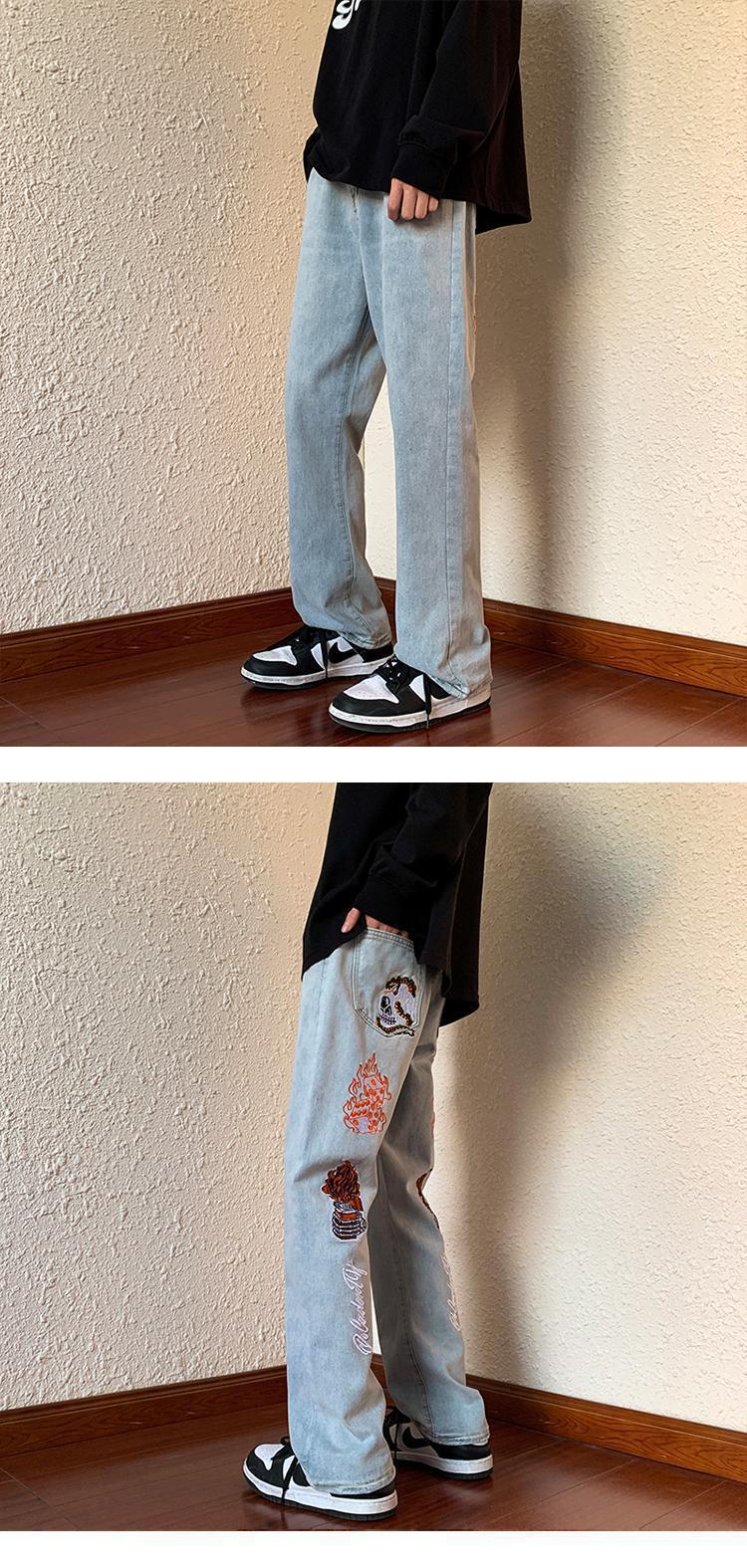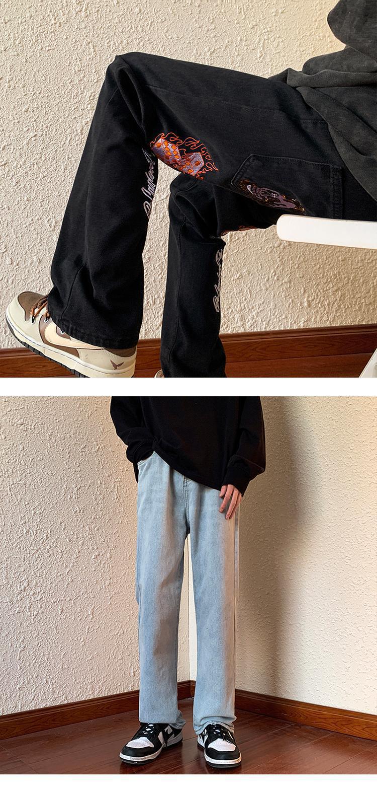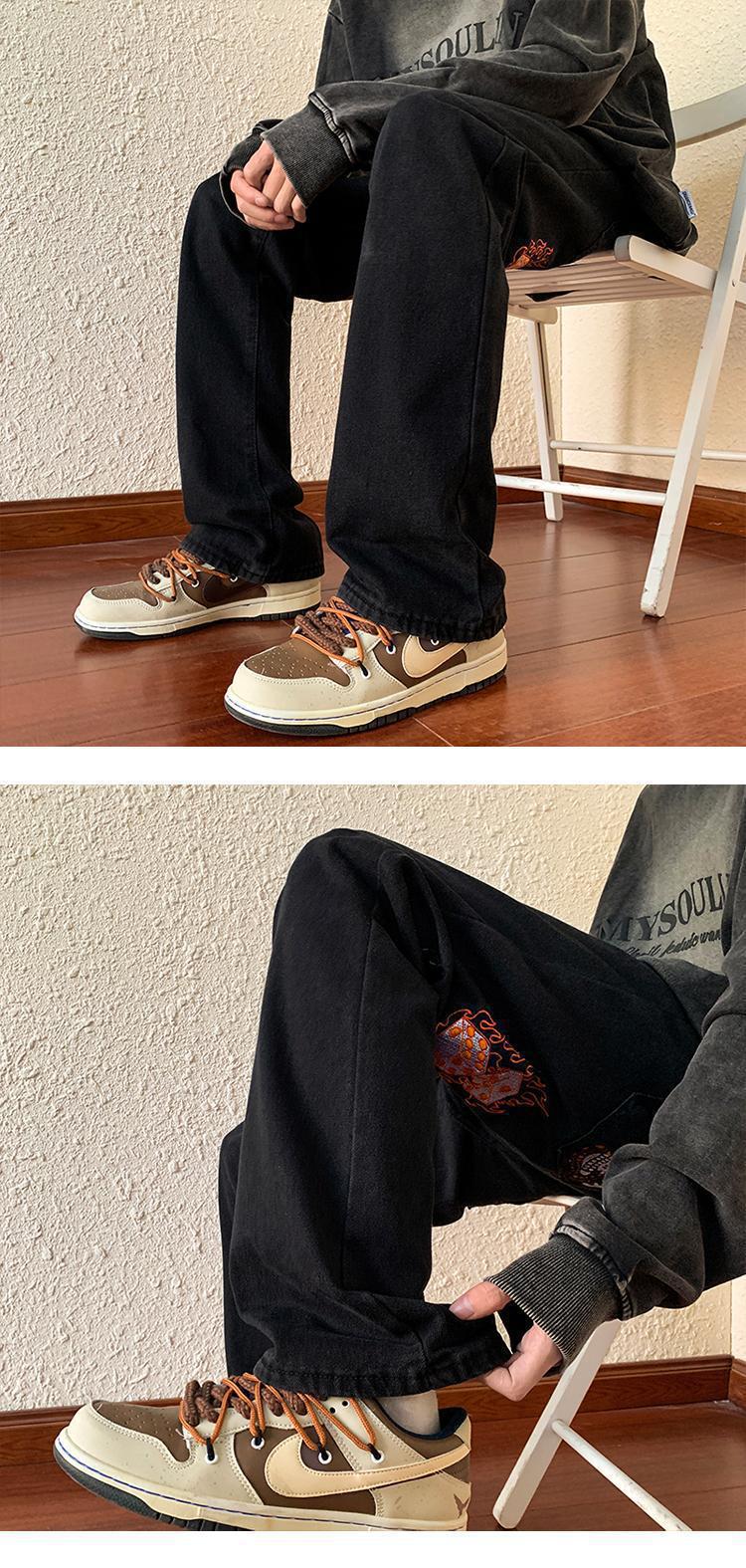 아메리칸 스타일 하이 스트리트 레트로 스타일 맞춤형 바이브 청바지 남성용 Ins 트렌디 루즈 올매치 캐주얼 스트레이트 롱 팬츠스토어 가기