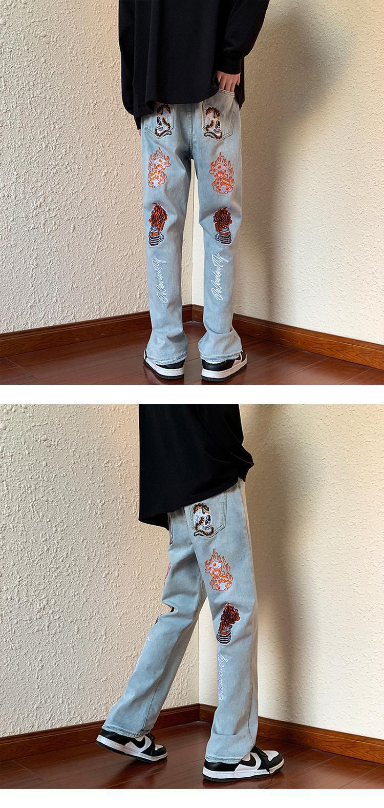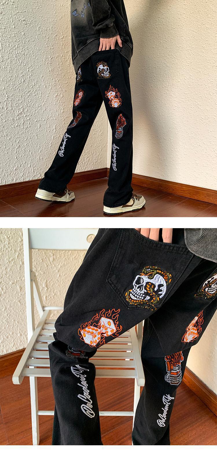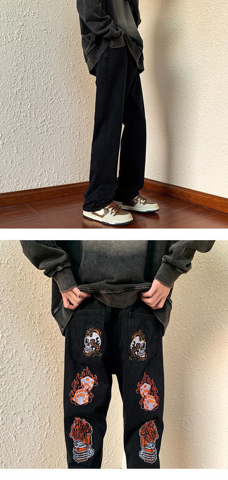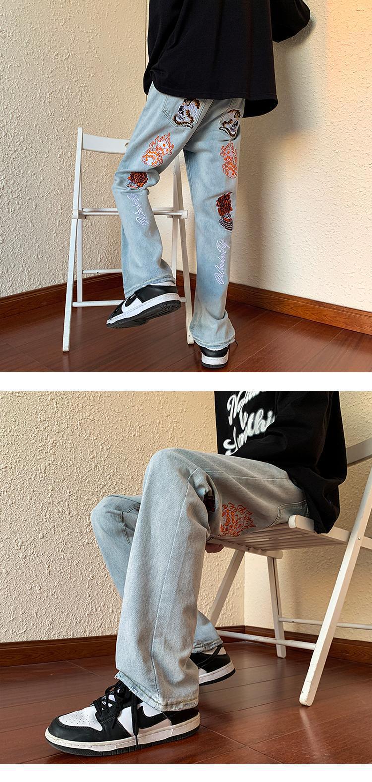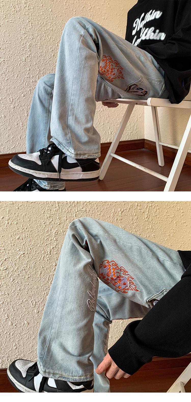 아메리칸 스타일 하이 스트리트 레트로 스타일 맞춤형 바이브 청바지 남성용 Ins 트렌디 루즈 올매치 캐주얼 스트레이트 롱 팬츠스토어 가기