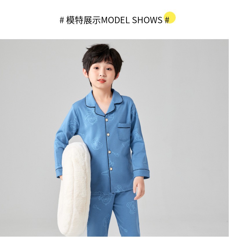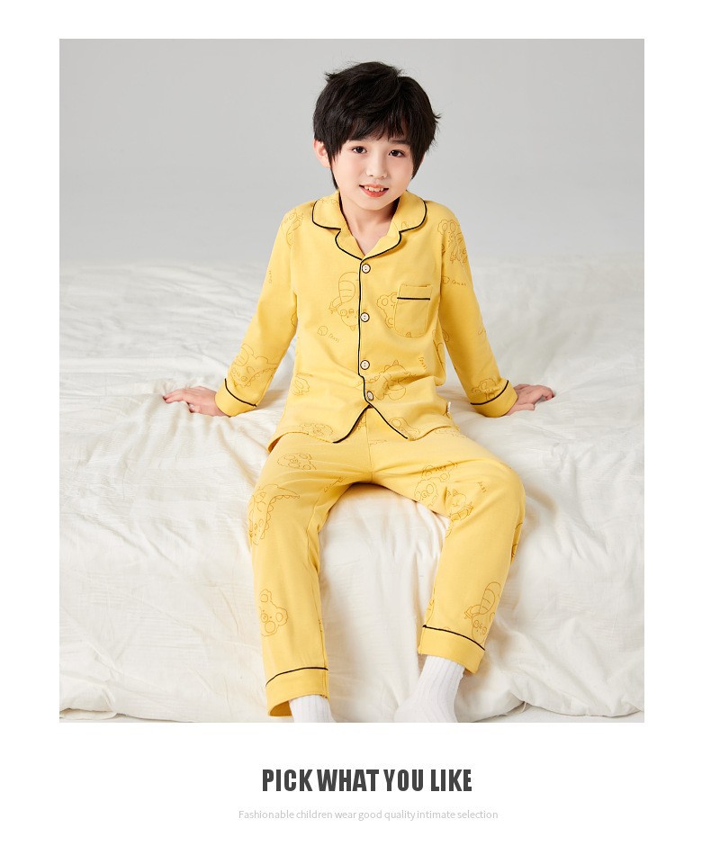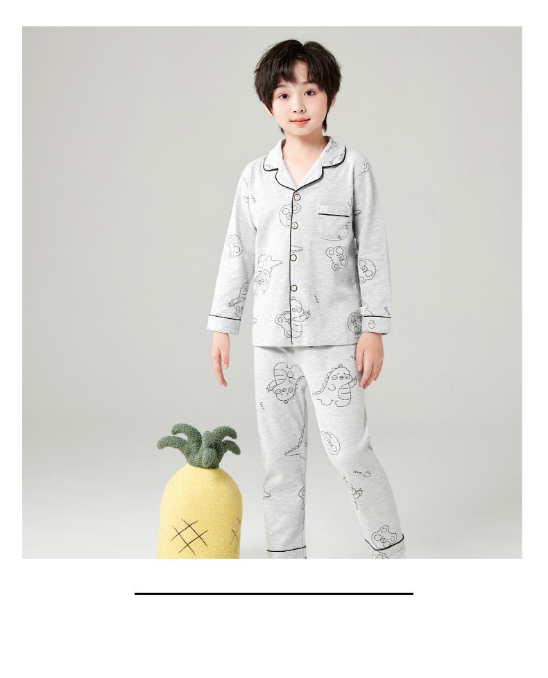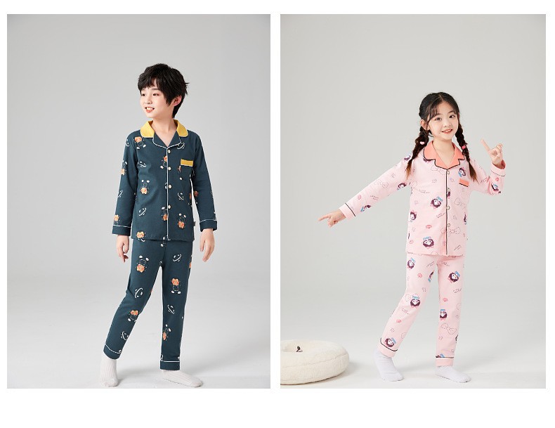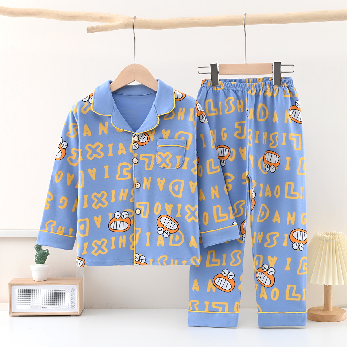 중대형 어린이 순면 잠옷 세트, 아동용 긴팔 홈웨어, 남아 여아 카툰 패턴 라펠 속옷스토어 가기