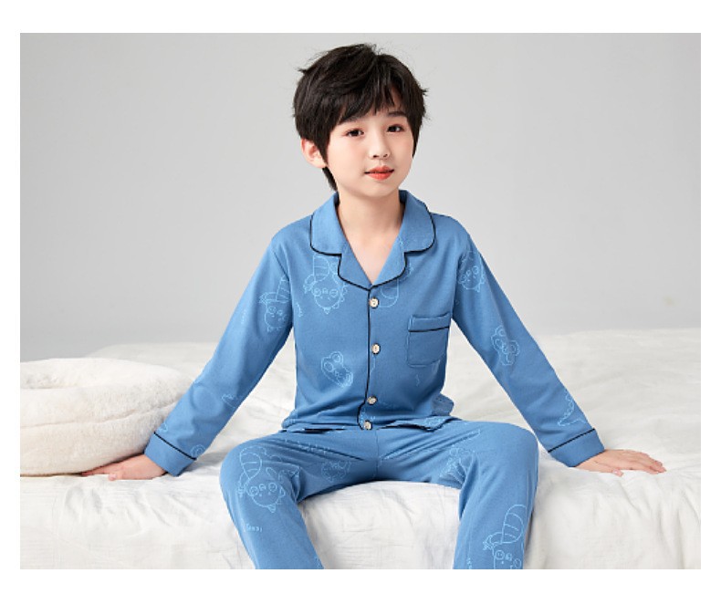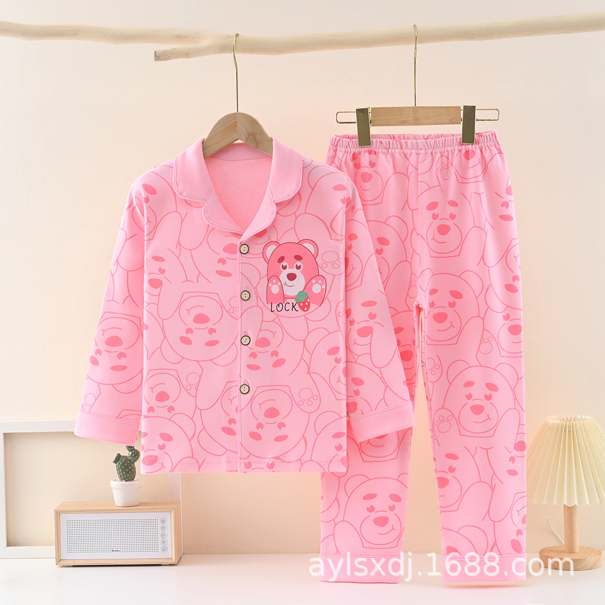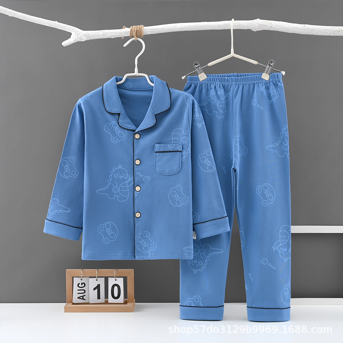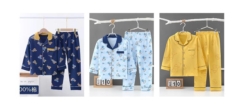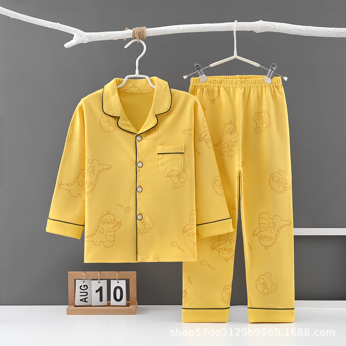 중대형 어린이 순면 잠옷 세트, 아동용 긴팔 홈웨어, 남아 여아 카툰 패턴 라펠 속옷스토어 가기