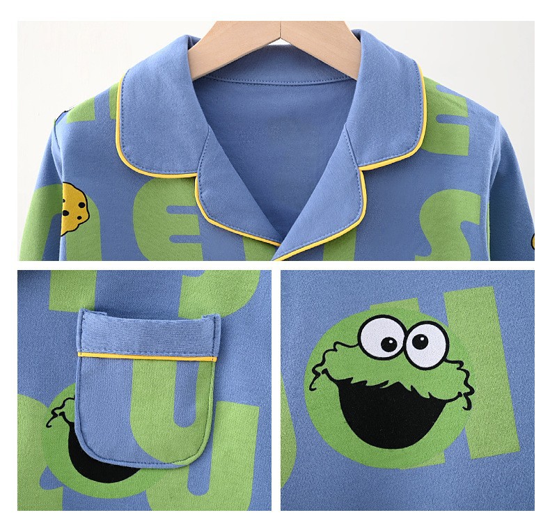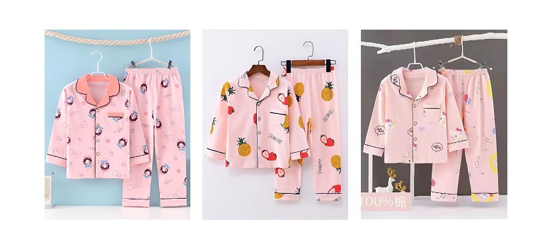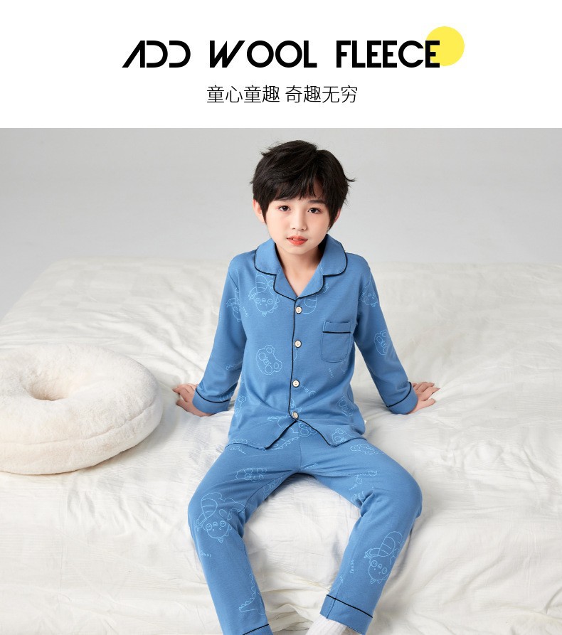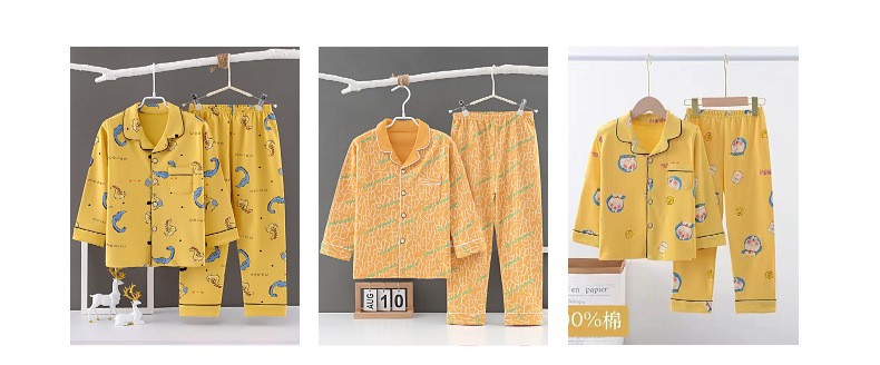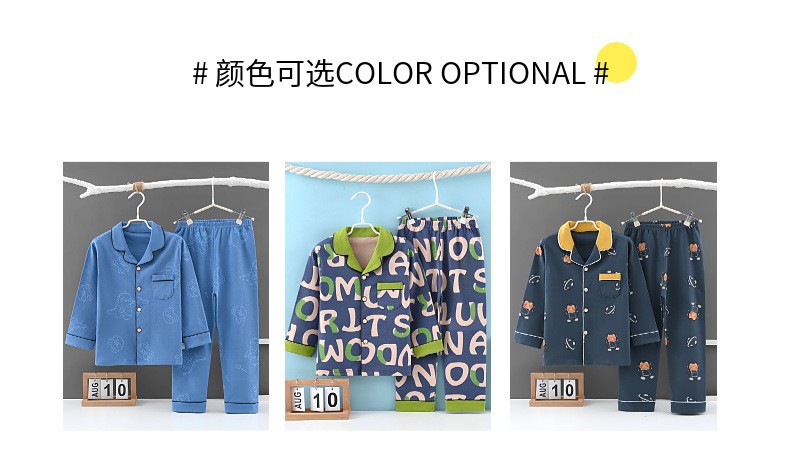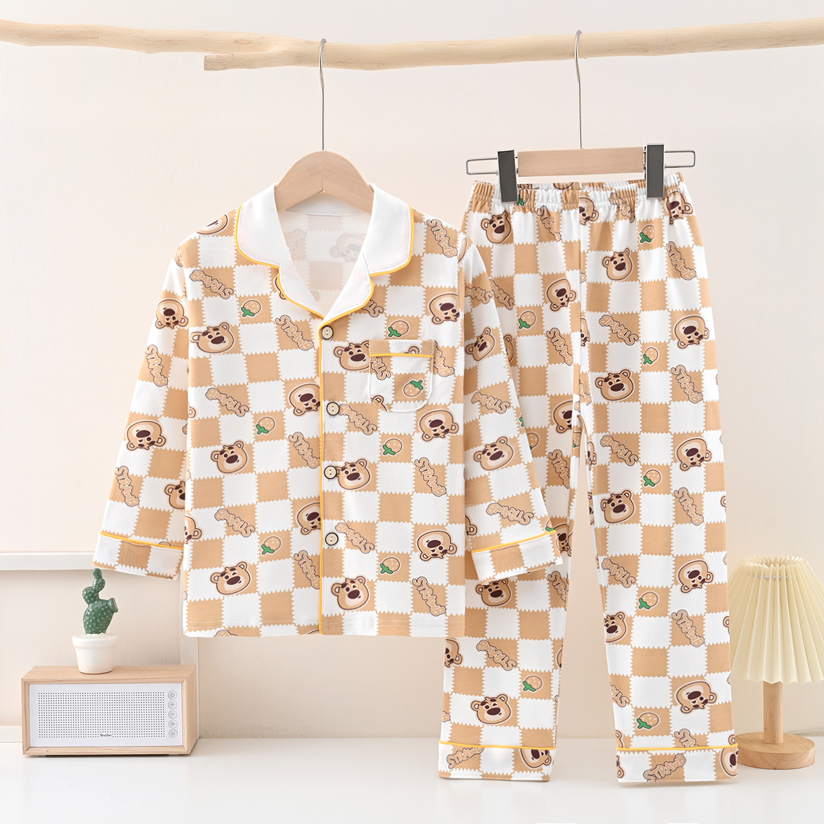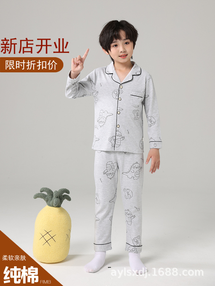 중대형 어린이 순면 잠옷 세트, 아동용 긴팔 홈웨어, 남아 여아 카툰 패턴 라펠 속옷스토어 가기
