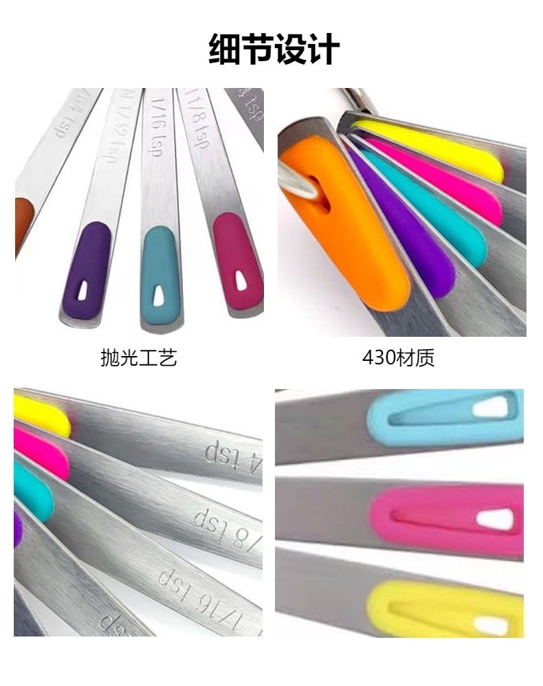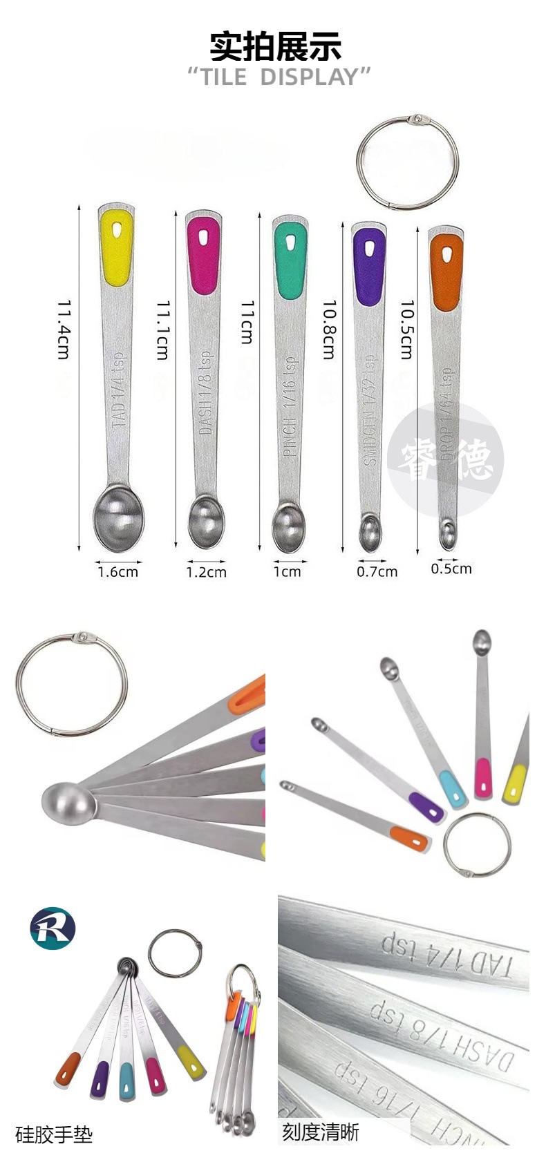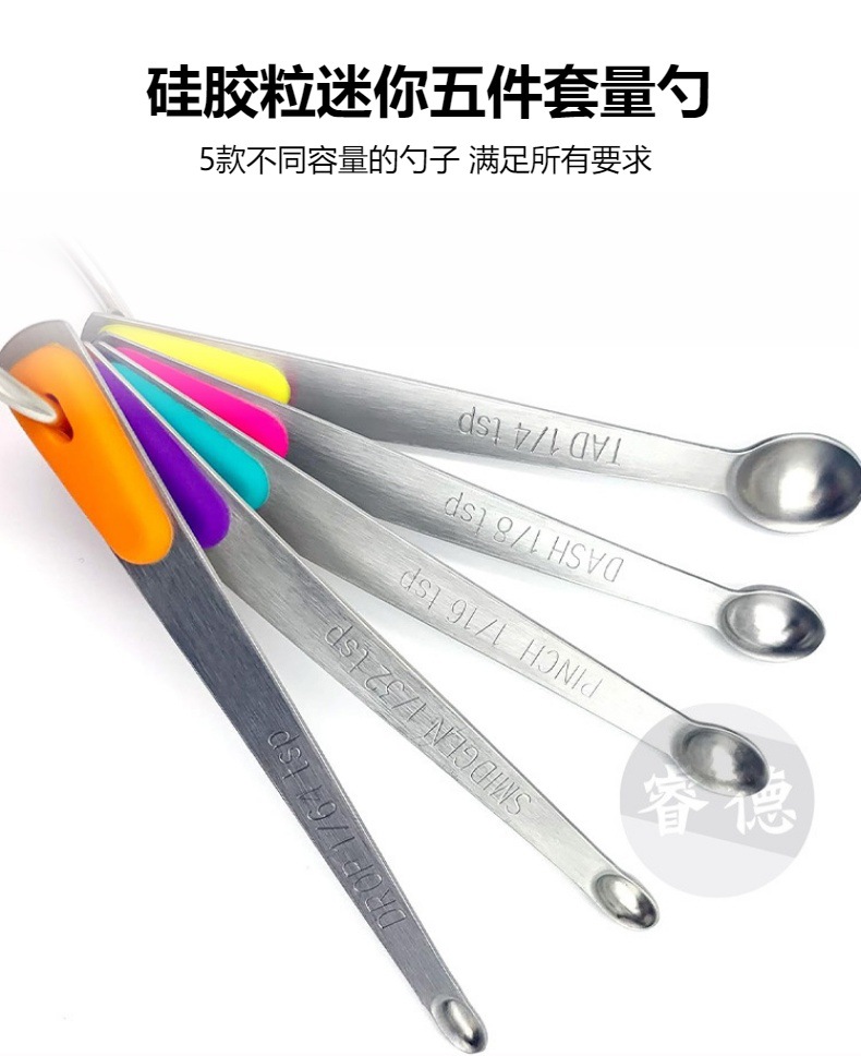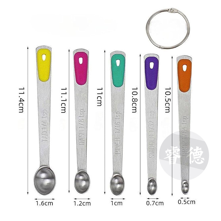 스테인레스 스틸 조미료 스푼 5 조각 세트 측정 숟가락 다채로운 실리콘 핸들 조미료 스푼 측정 스푼 세트 주방 조미료 스푼