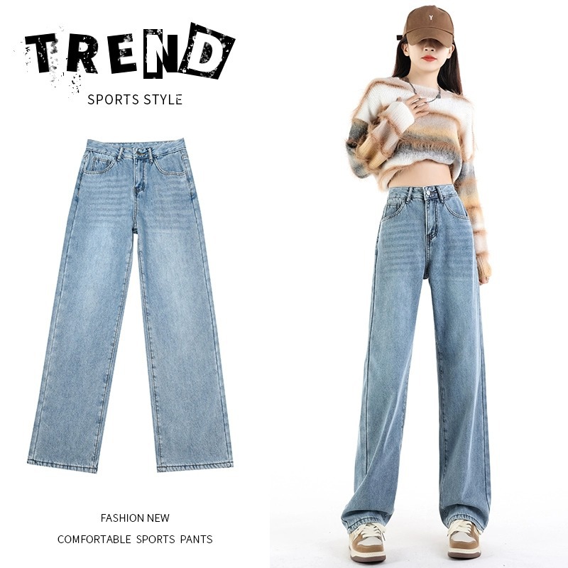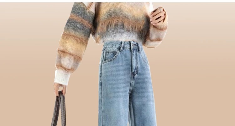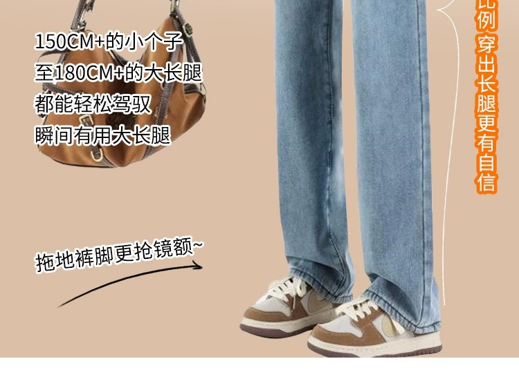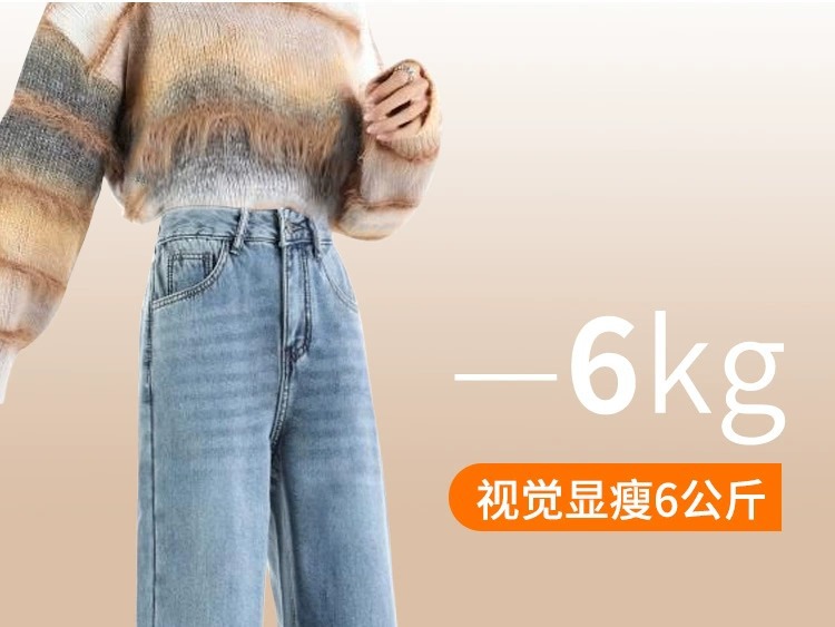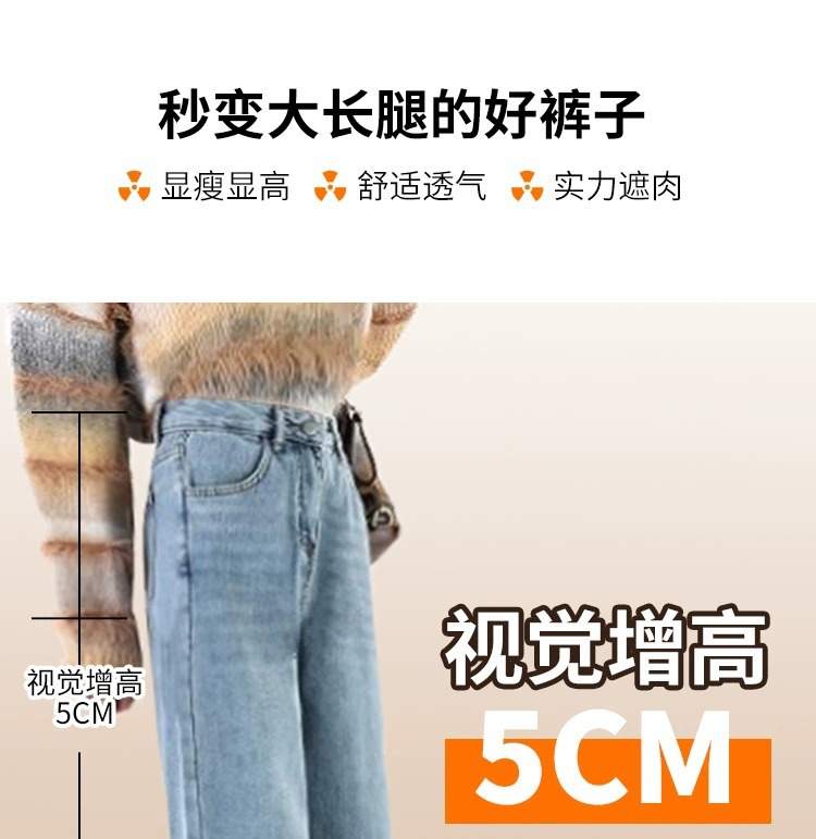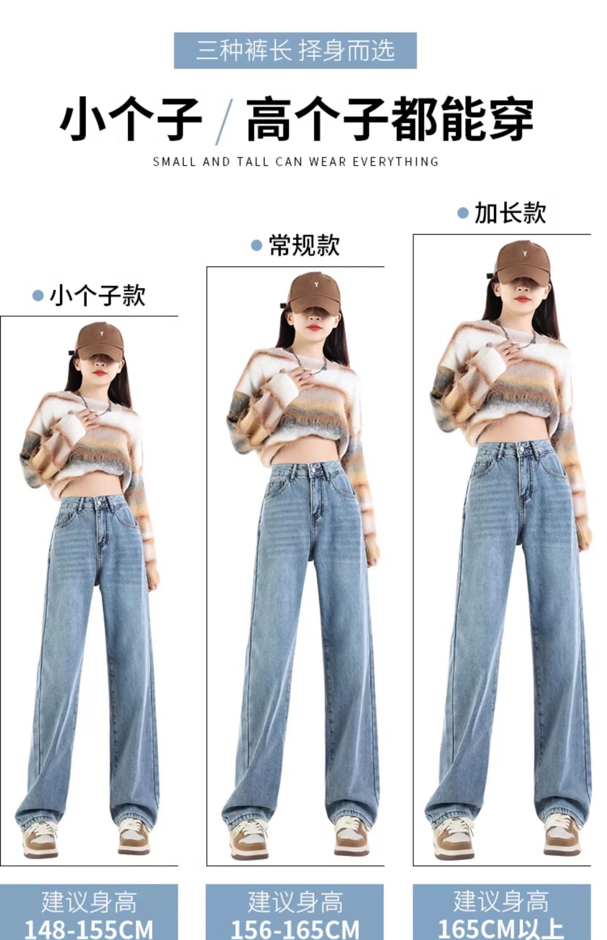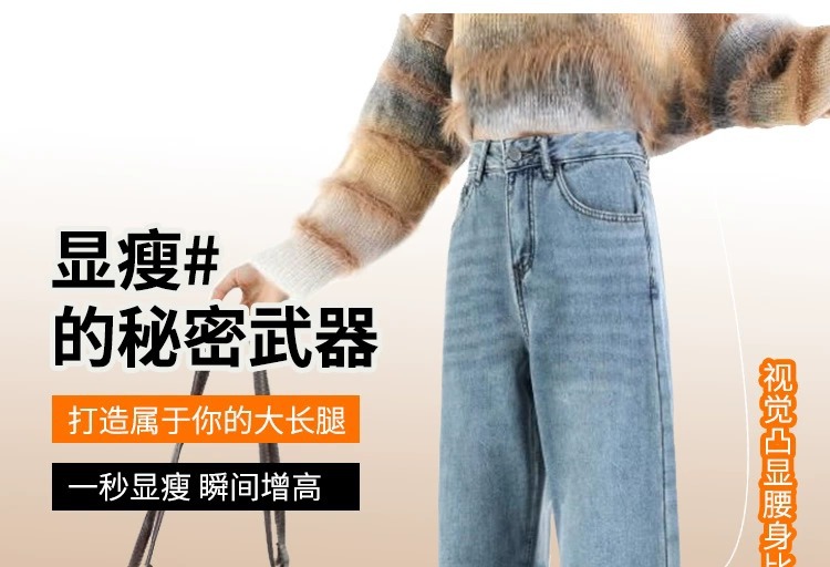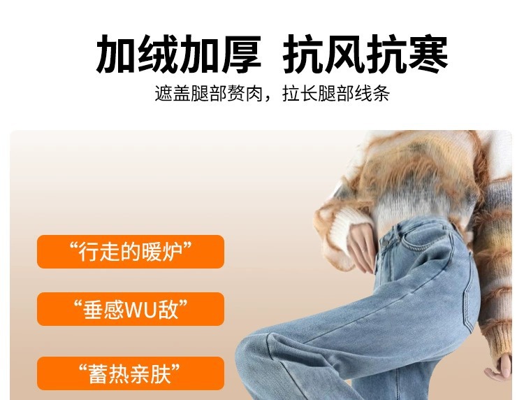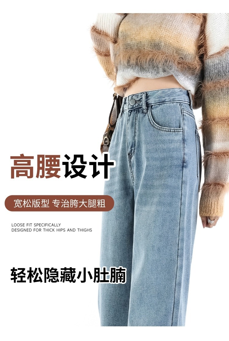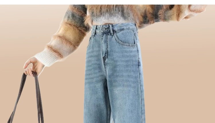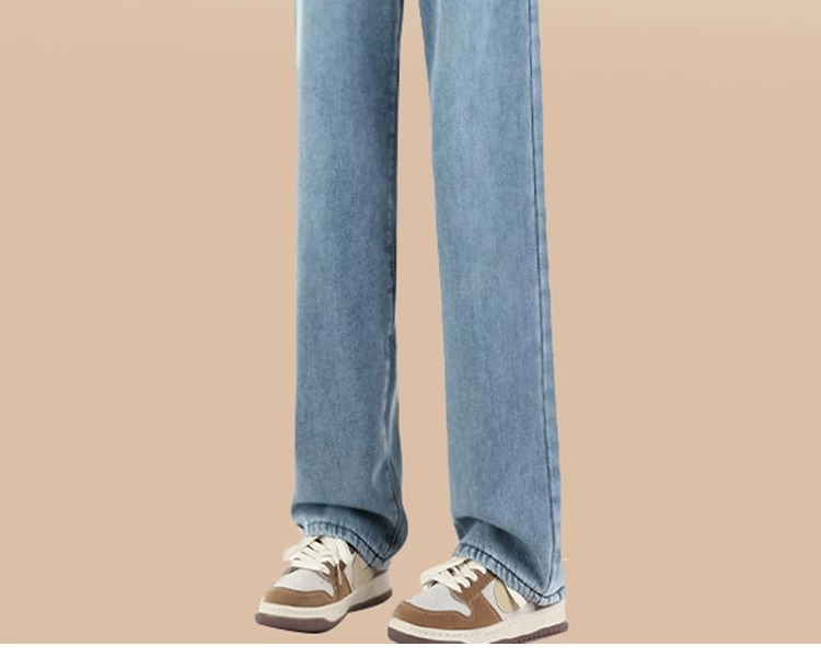 기모 두꺼운 와이드 레그 청바지 여성용 겨울 따뜻한 하이 웨이스트 루즈 핏 슬리밍 배 모양의 피겨 라이트 컬러 스트레이트 레그 청바지스토어 가기