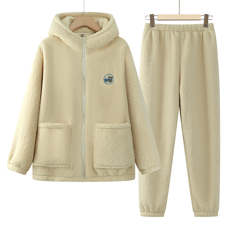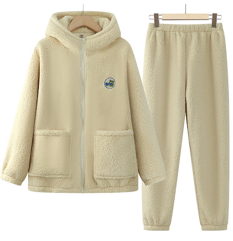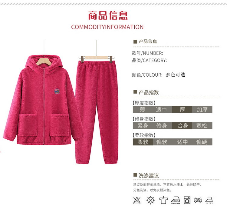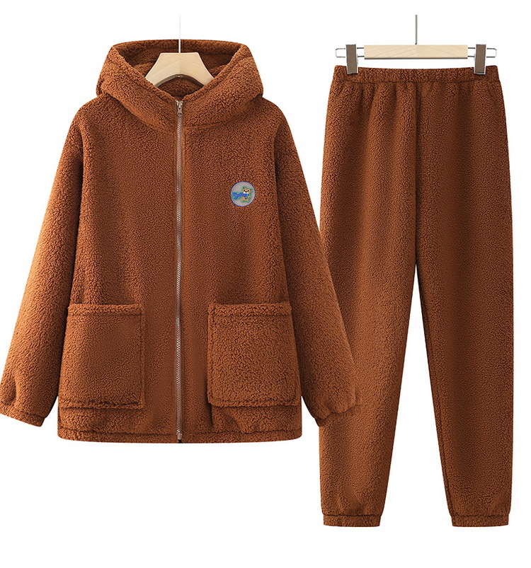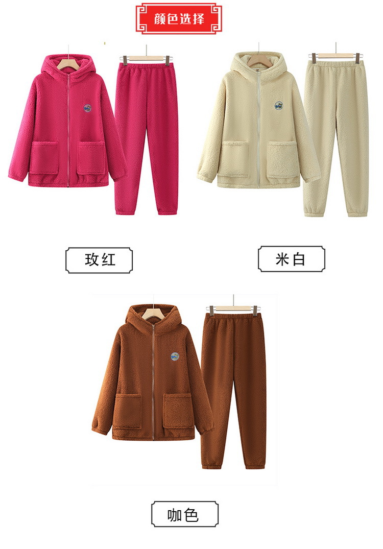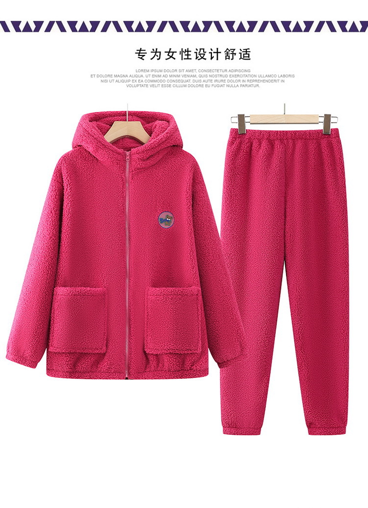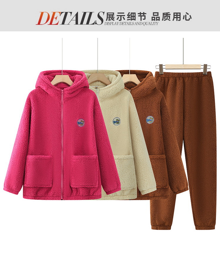 플란넬 파자마 겨울 중년 여성 기모 두꺼운 만화 학생 산호 양털 홈 의류 후드 세트스토어 가기