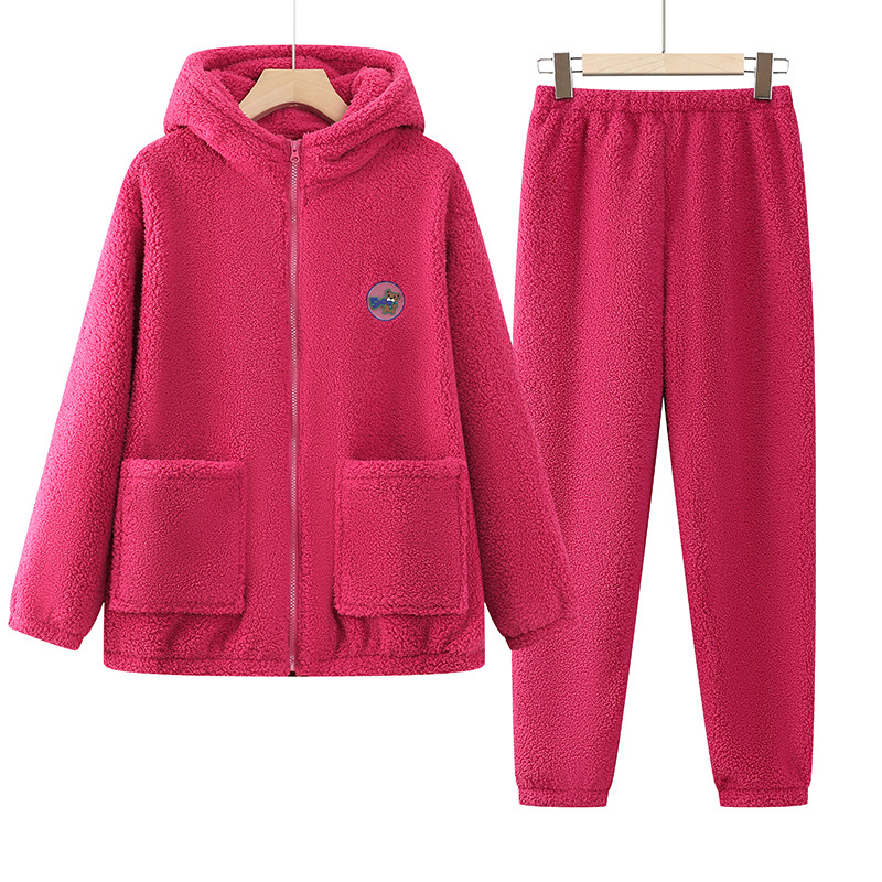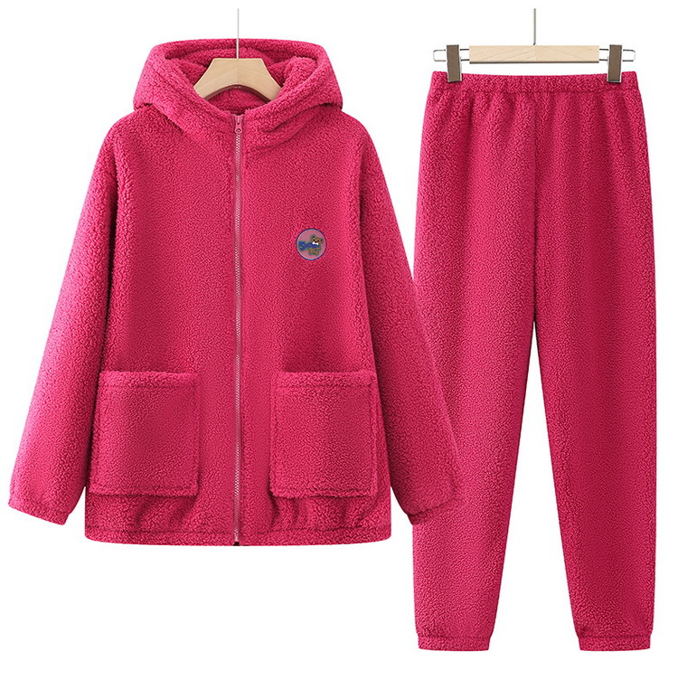 플란넬 파자마 겨울 중년 여성 기모 두꺼운 만화 학생 산호 양털 홈 의류 후드 세트